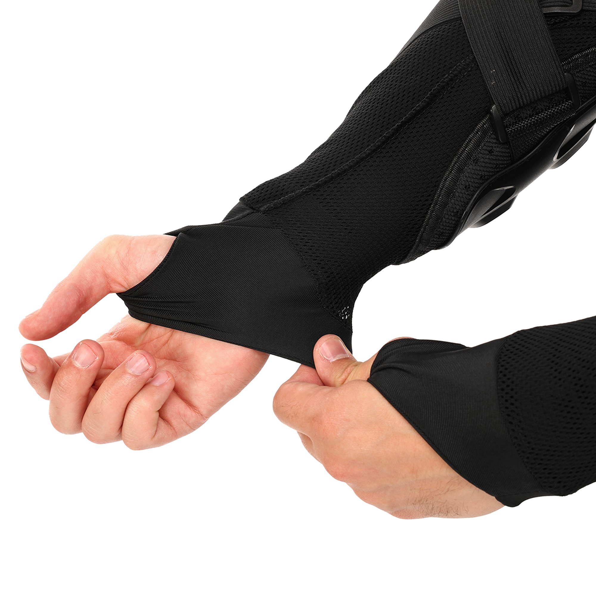 Надійний захист передбачений і для рук - він включає накладки на плечах, передпліччях і ліктях. Протектори для захисту рук розділені на сегменти, що забезпечує свободу рухів під час їзди.