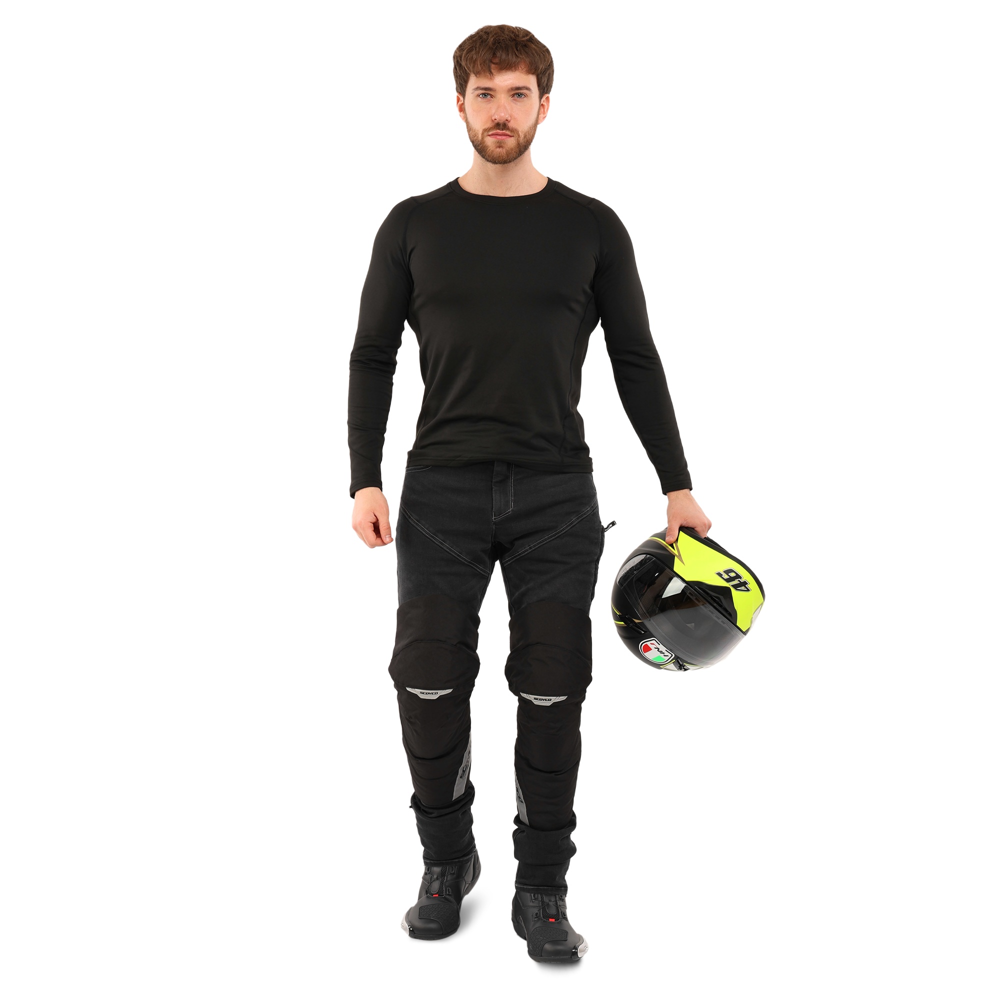 Покращена модель мотонаколінників з товстим захисним протектором з ABS-пластику та набивкою, що амортизує. Екіпірування міцне і довговічне, при ударі протектор не ламається, а стирається, гарантуючи надійний захист колінного суглоба. Використання тканини, що дихає та має вологовідвідні властивості, забезпечує постійну циркуляцію повітря, завдяки чому мотоцикліст відчуває сухість та прохолоду. Надійно зафіксувати наколінники дозволяють регульовані ремені, виріб закриває коліно та гомілку. Спеціальна конструкція забезпечує користувачам максимальний комфорт при згинанні колін і не заважає керуванню мотоциклом.