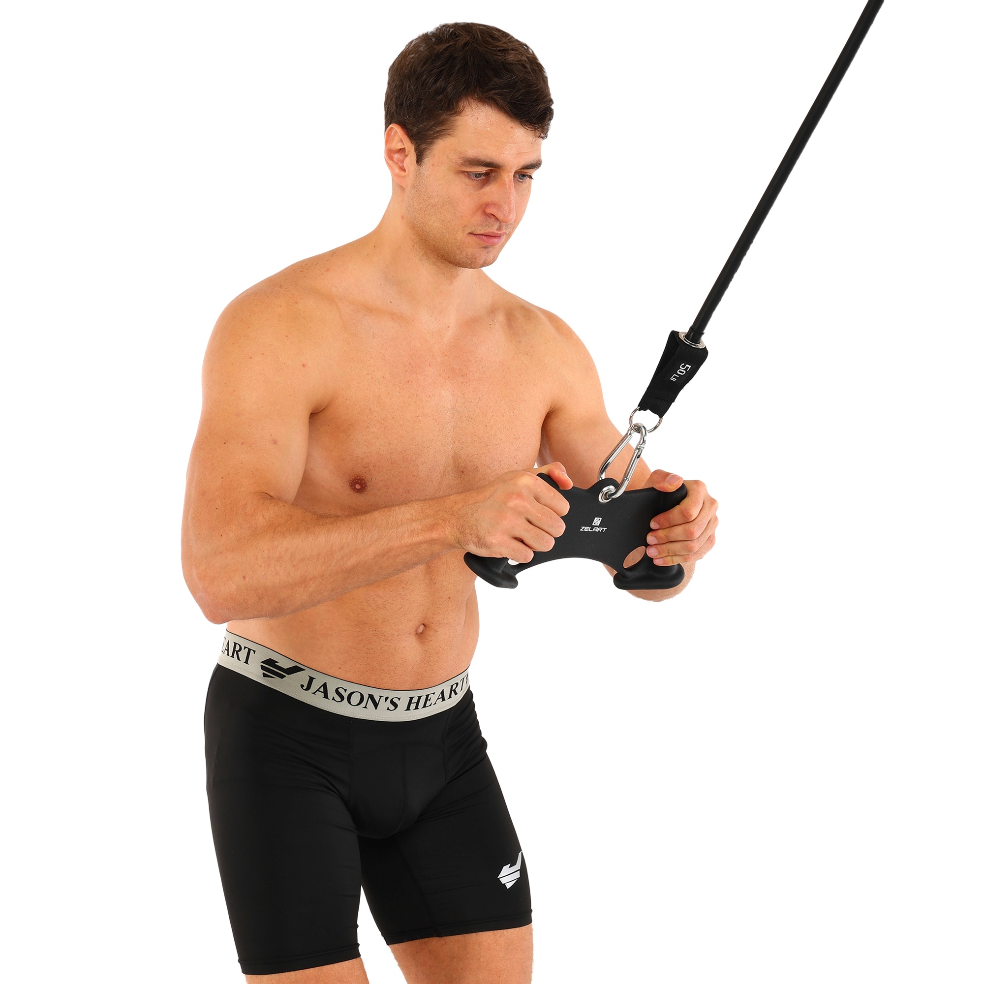 Для облаштування комерційного або домашнього тренажерного залу за умови наявності блочного тренажера обов'язково варто використовувати ручки, за допомогою яких можна виконувати тягу. Набір ручок Zelart TA-4831 MULTI-HANDLES SETS містить 8 різних елементів, які дозволяють навантажувати різні м'язи і виконувати тягу верхнього або нижнього блоку. Для виготовлення ручок використовується сталь, яка надає їм особливу міцність і довговічність. Покриття з фарби захищає метал від появи корозії. Порошкова фарба нанесена товстим шаром і стійка до подряпин і механічних пошкоджень. Кожну з ручок можна зафіксувати на тросі тренажера за допомогою карабіна. Для цього в ручках є отвори.