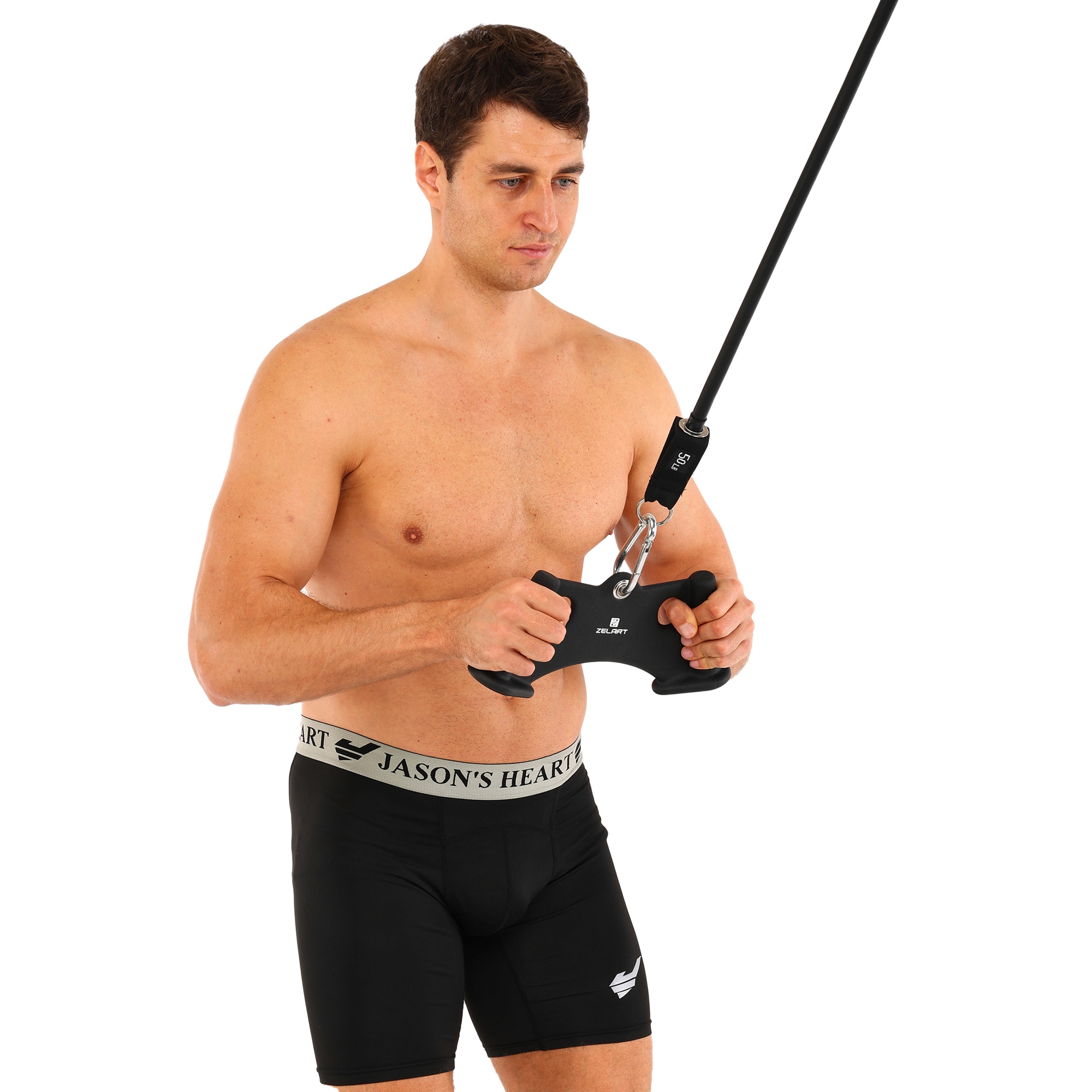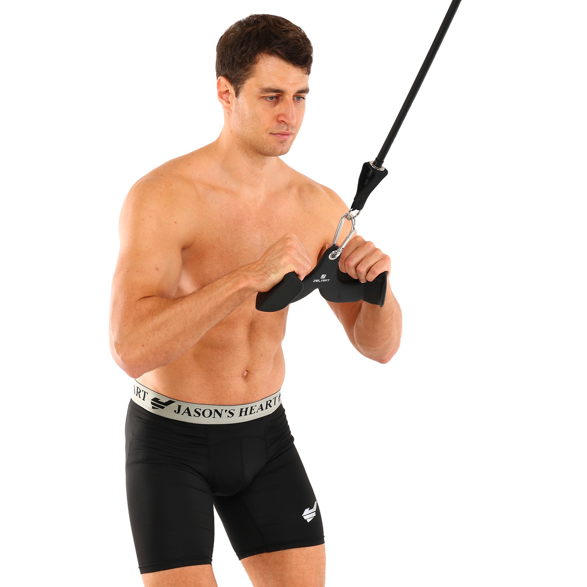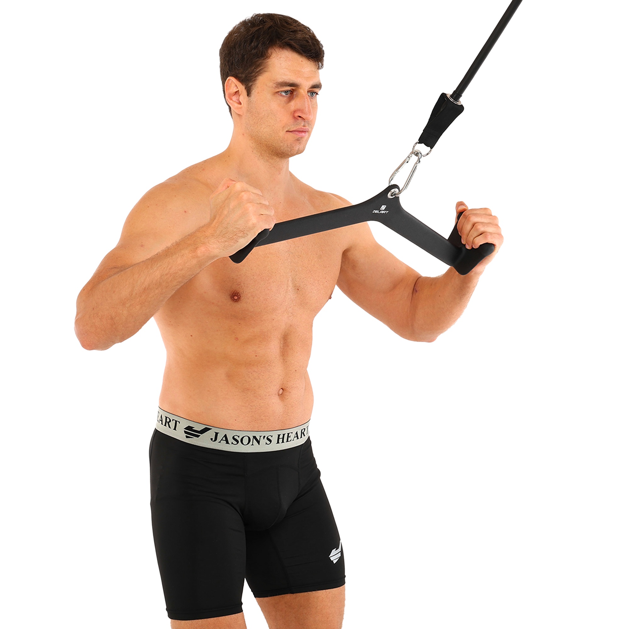 Набір ручок призначений для виконання тягових вправ на блокових тренажерах. Використання такого інвентарю дозволить тренувати м'язи плечей, спини, грудей, біцепса і трицепса. У комплекті є ручки, які дозволяють виконувати вправи вузьким і широким хватом. Це ефективний інструмент для силової роботи.