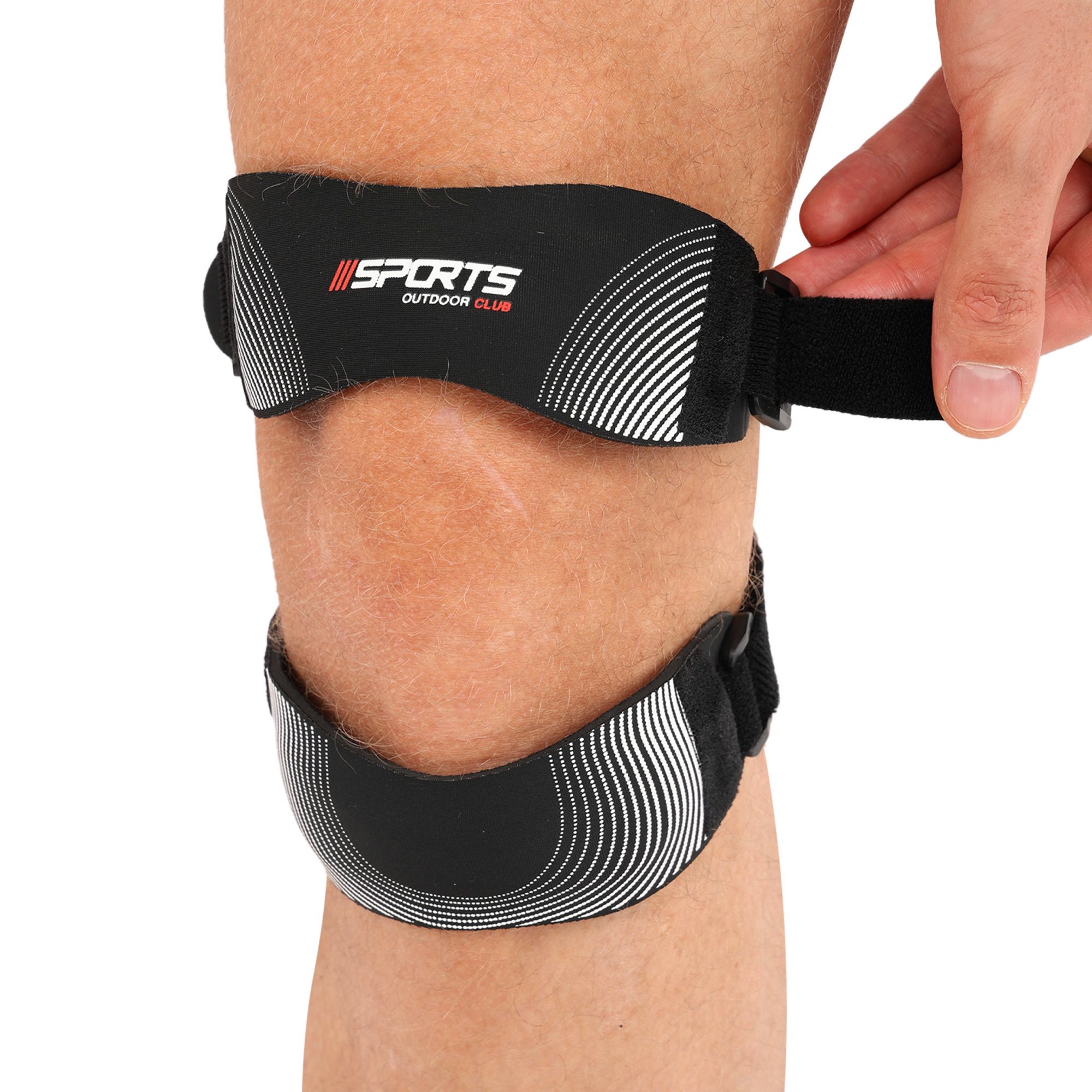 Щоб зменшити біль під колінною чашечкою під час занять спортом або повсякденної роботи, варто використовувати спеціальний пателлярний бандаж. Цей пристрій являє собою невеликий відрізок тканини з фіксувальним ременем. Бандаж виготовлений з неопрену та нейлону, він еластичний і міцний. Внутрішня поверхня бандажа оброблена таким чином, що він не викликає подразнень і не натирає. Бандаж щільно прилягає до області під колінною чашечкою, забезпечує фіксацію зв'язок чотириголового м'яза стегна. Це дозволяє зменшити біль при виконанні вибухових рухів ногами та присідань.