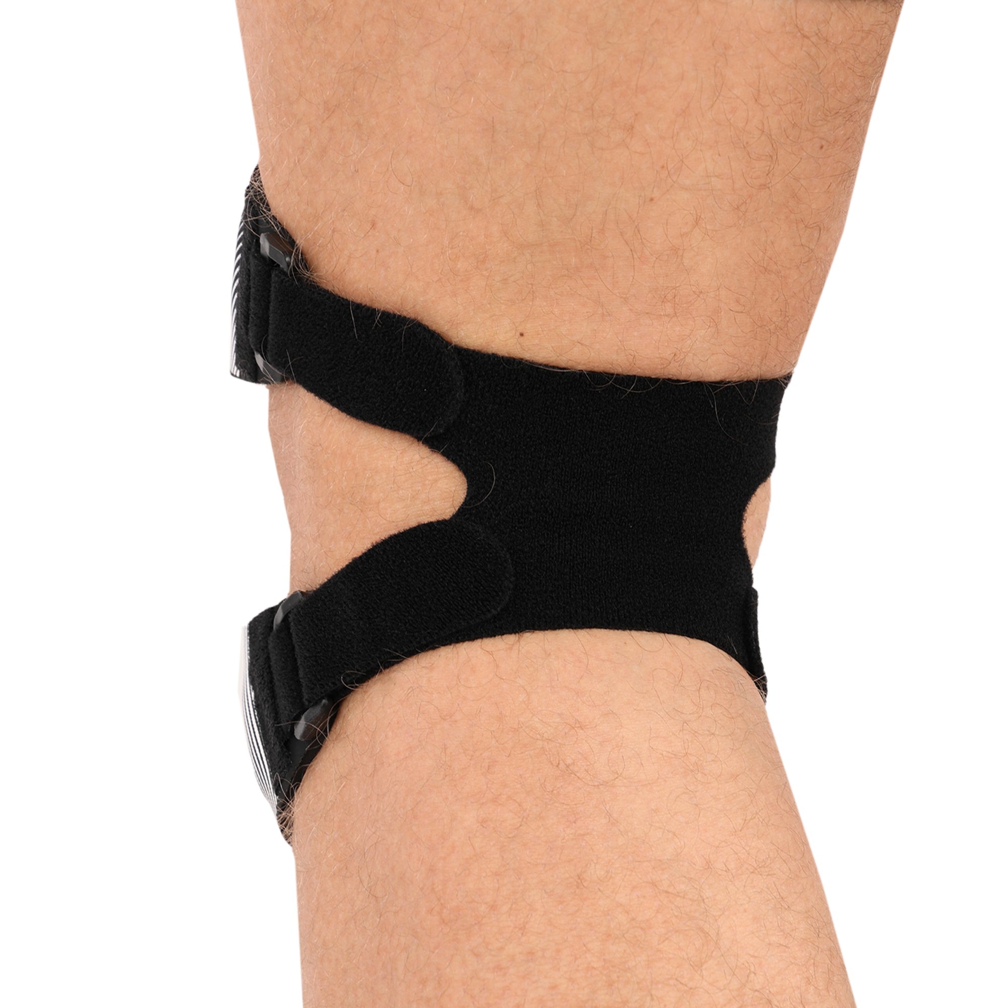- Допомагає усунути больовий синдром у разі проблем із зв’язками надколінка.