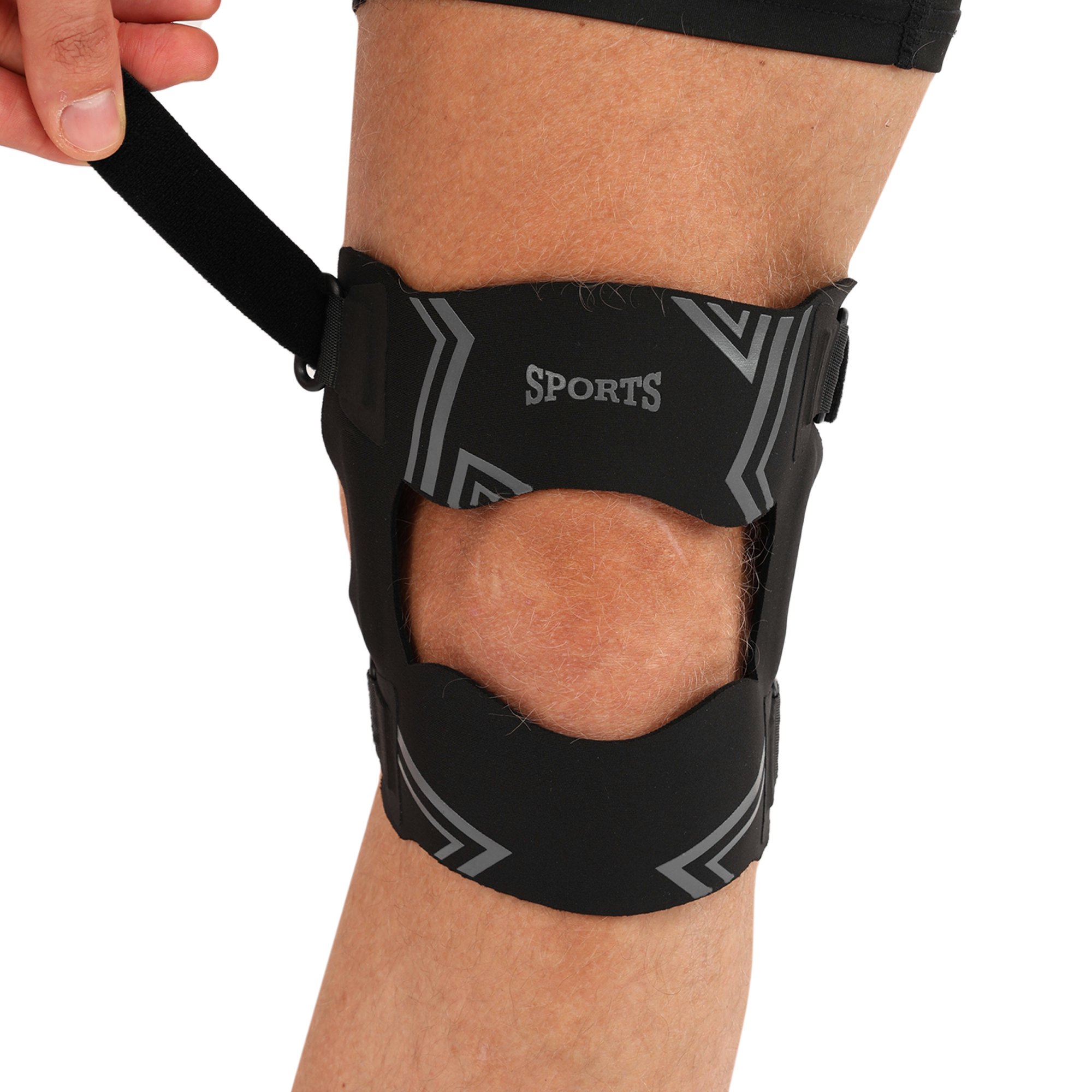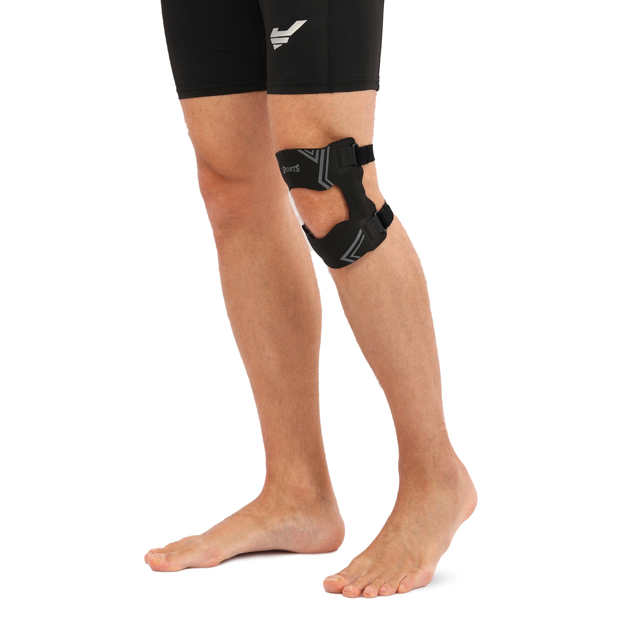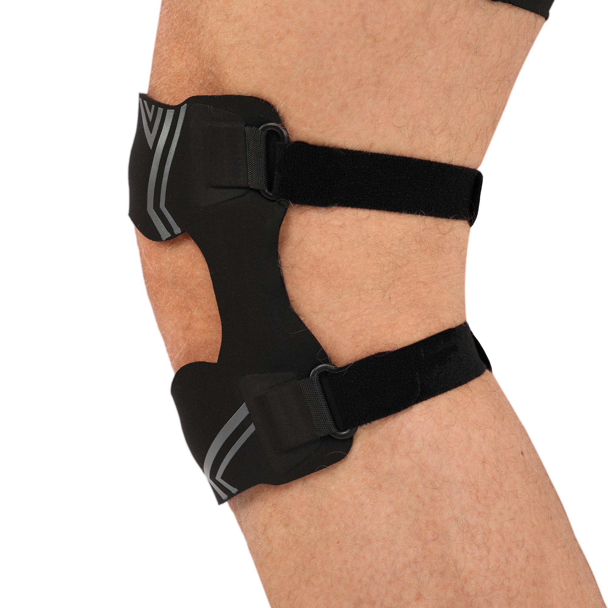 - Допомагає усунути больовий синдром у разі проблем із зв’язками надколінка.