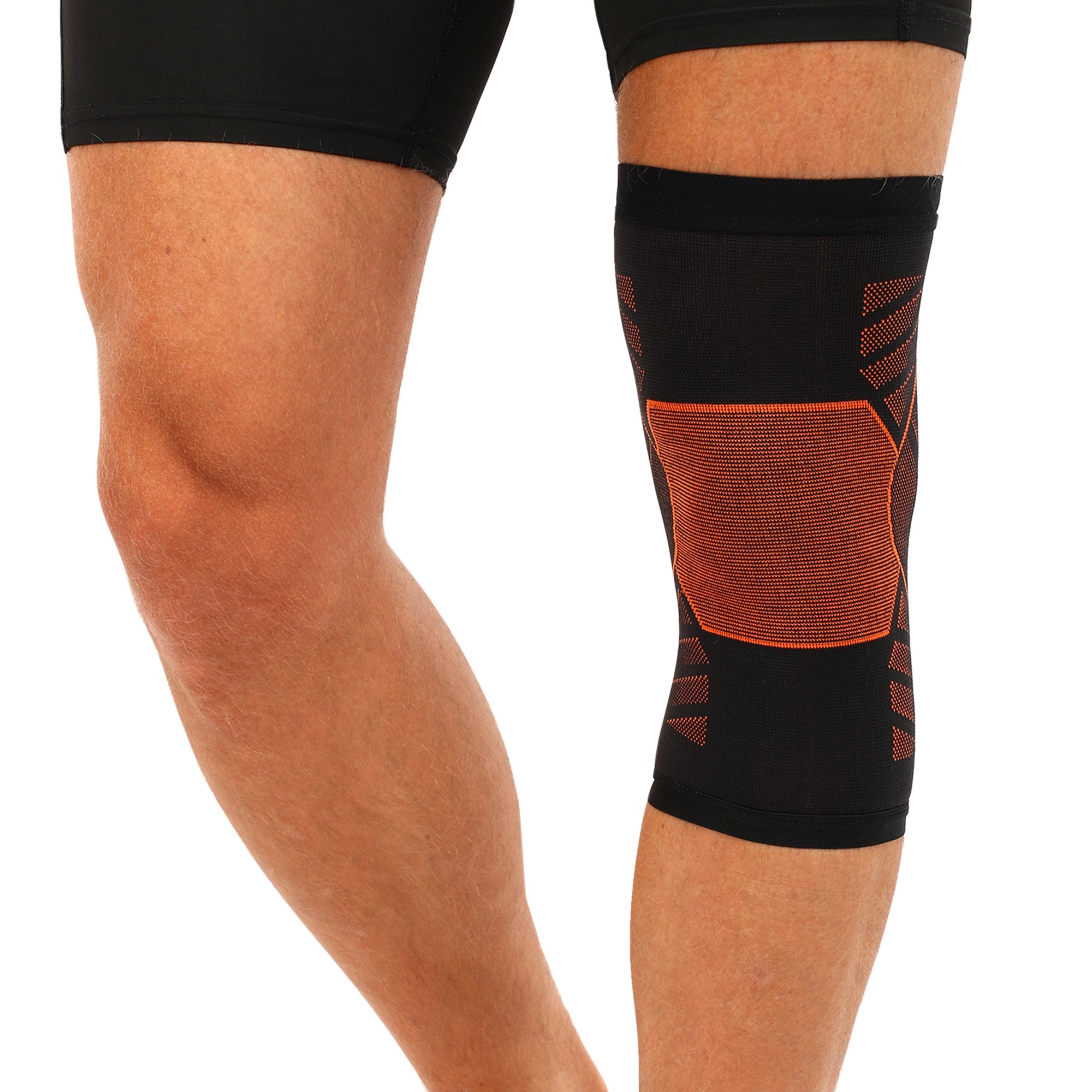 - Компресійна дія зменшує біль, набряк, запалення та покращує кровообіг у ділянці коліна.