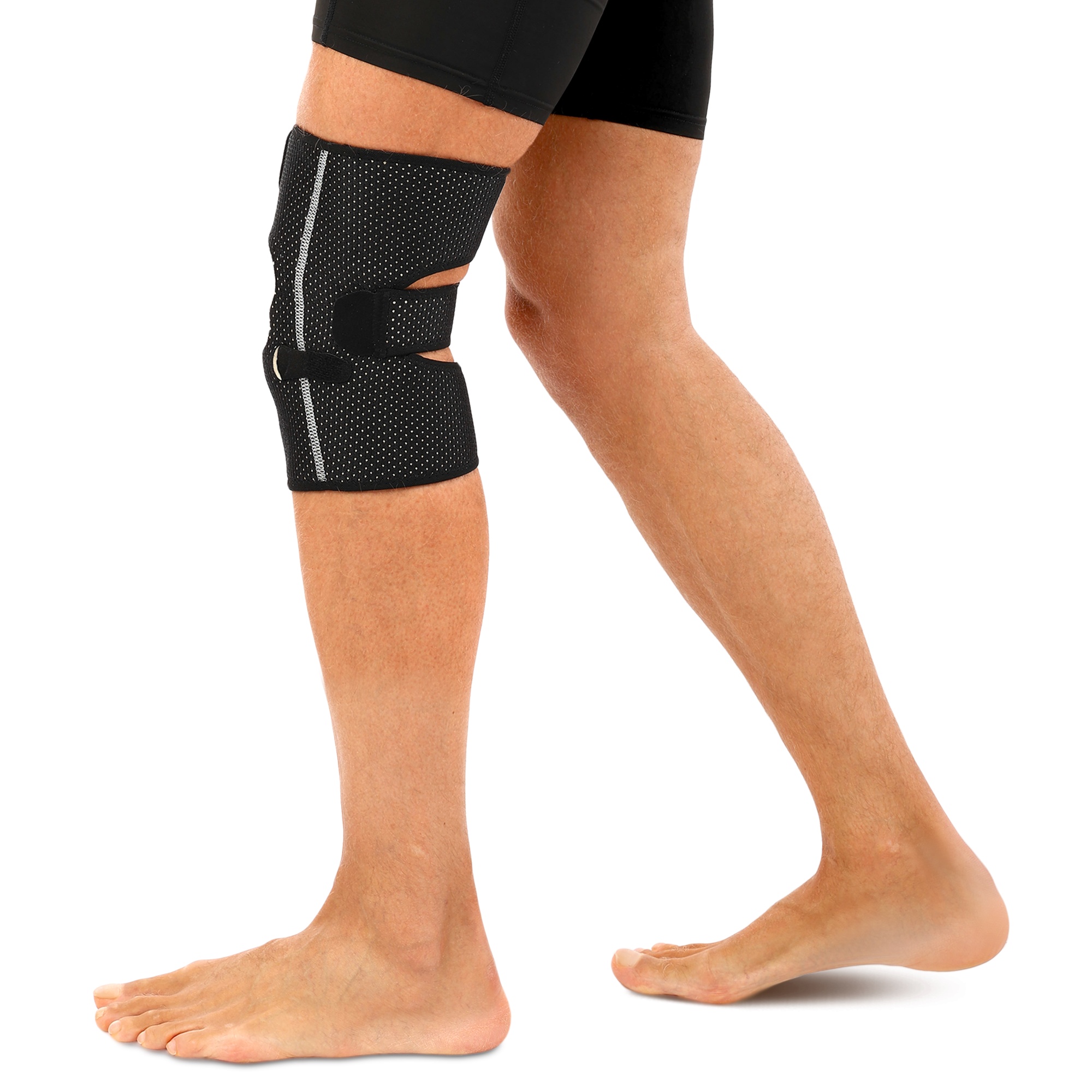 Наколінник-ортез - це особлива регульована пов'язка на коліно, яка знімає навантаження з колінного суглоба і забезпечує помірну підтримку зв'язок і колінної чашечки. Його основне призначення - звести до мінімуму ризик травми, якщо спортсмен відчуває дискомфорт у колінному суглобі, і прискорити реабілітацію, якщо травма все ж таки сталася. Також завдяки компресійному впливу наколінника знижується ризик набряку під час (або після) інтенсивних тренувань. Може застосовуватися в різних видах спорту (в приміщенні і на вулиці) атлетами з різним рівнем фізичної підготовки.