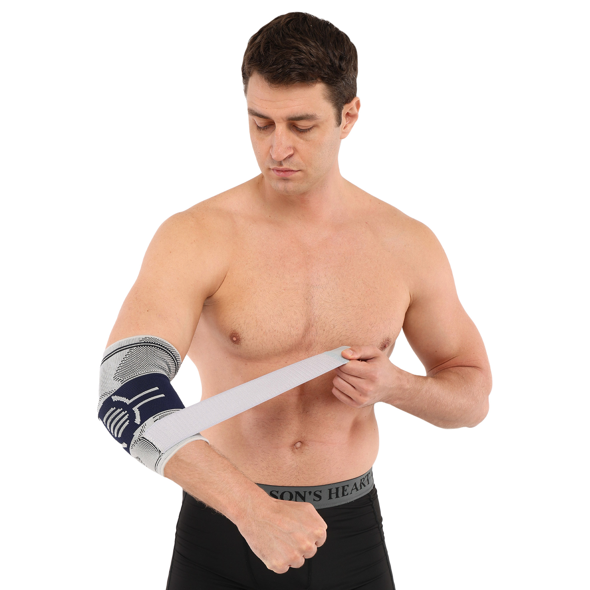 Налокотник спортивний еластичний з фіксуючим ременем STOLL LL-1008 M-XL 1шт сірий Код LL-1008