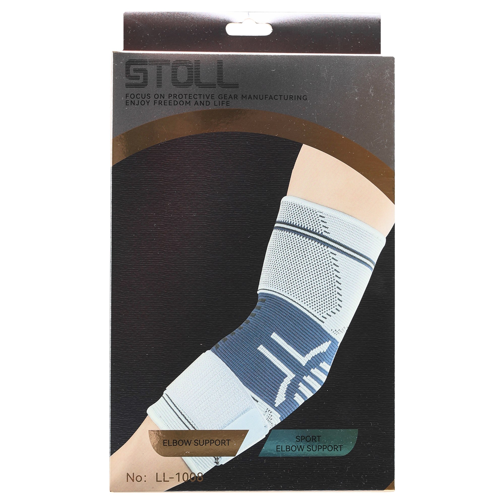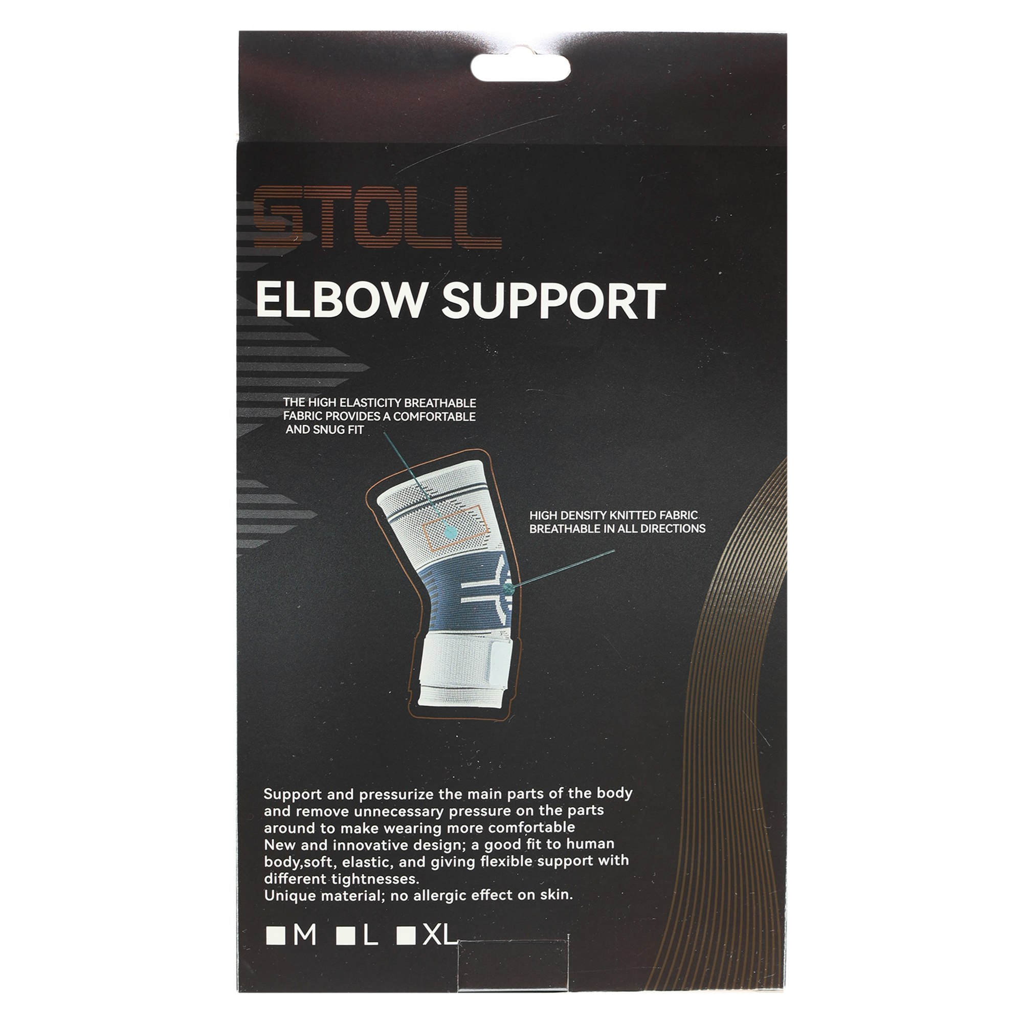 Еластичний налокітник із фіксувальним ременем STOLL LL-1008 підійде як для лівої, так і для правої руки. Це ефективний засіб для захисту ліктьового суглоба від травм, а також для реабілітації після них. У комплекті один налокітник, виготовлений з тканини, що містить нейлон, поліестер і гуму. Таке поєднання матеріалів забезпечує високу міцність і довговічність виробу, а також гарантує компресійний ефект.