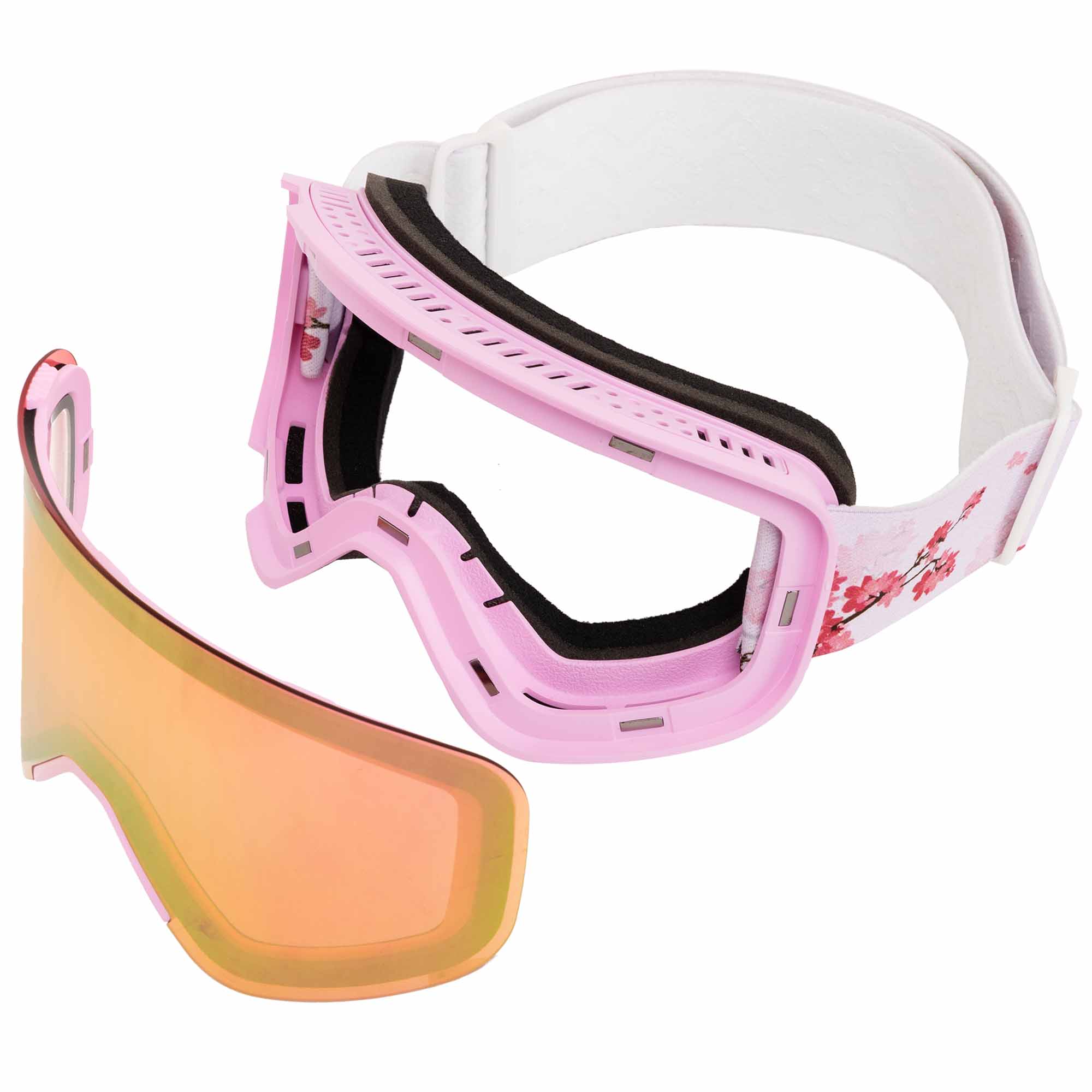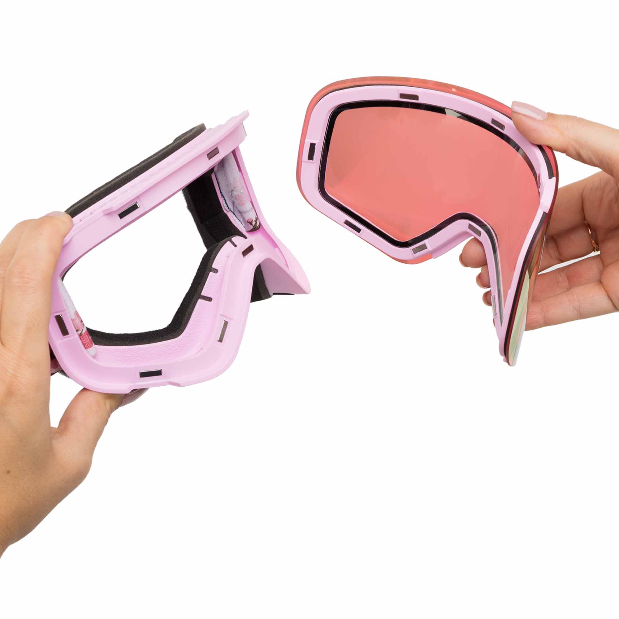 Гірськолижні окуляри призначені для жінок і виконані в привабливому рожевому кольорі. Їх використання дозволяє уникнути відблисків, отримати відмінну видимість перед собою і досить широкий кут огляду з боків. Окуляри сумісні з шоломом і дозволяють надійно захиститися не тільки від яскравого сонячного світла, але і від бризок води, шматочків льоду і снігу.