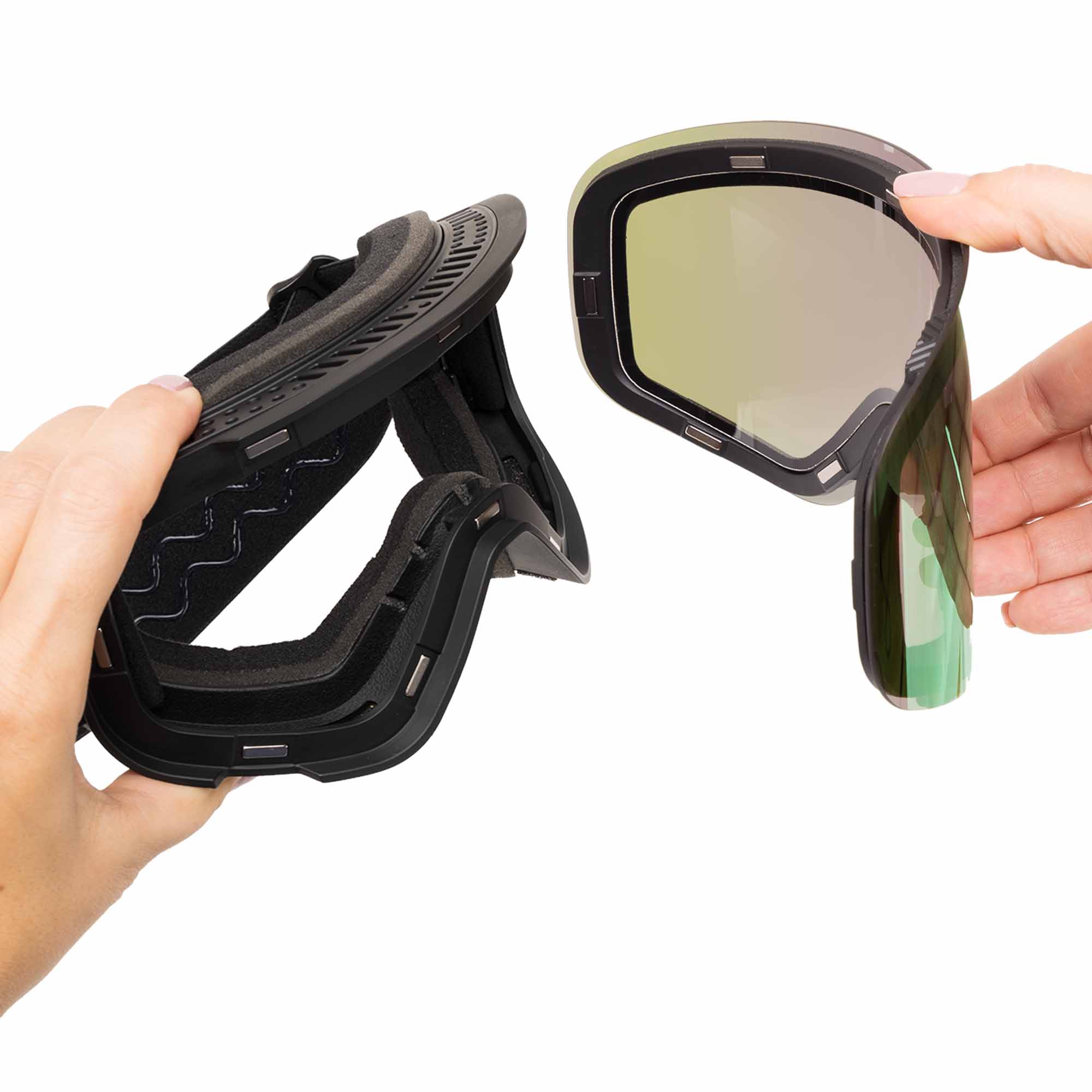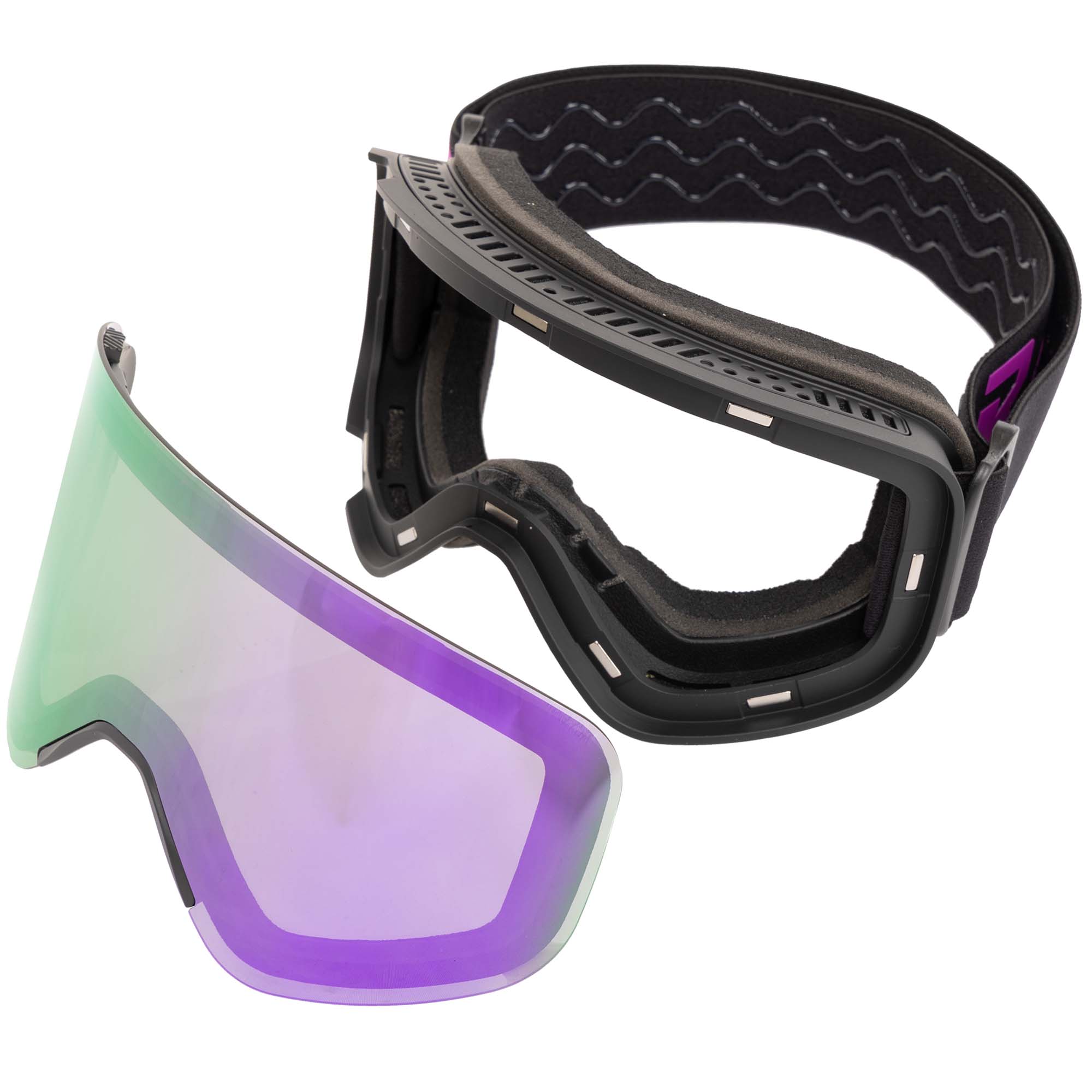 Гірськолижні окуляри призначені для використання під час катання на сноуборді або лижах. В першу чергу вони забезпечують відмінний захист від ультрафіолету, але також вони сприяють захисту від вітру, холоду і снігу. При необхідності ви можете замінити лінзу на іншу. Магнітне кріплення в окулярах дозволяє зробити це максимально легко. Окуляри можна поєднувати з гірськолижним шоломом і регулювати по посадці за допомогою еластичного ремінця і кліпси.