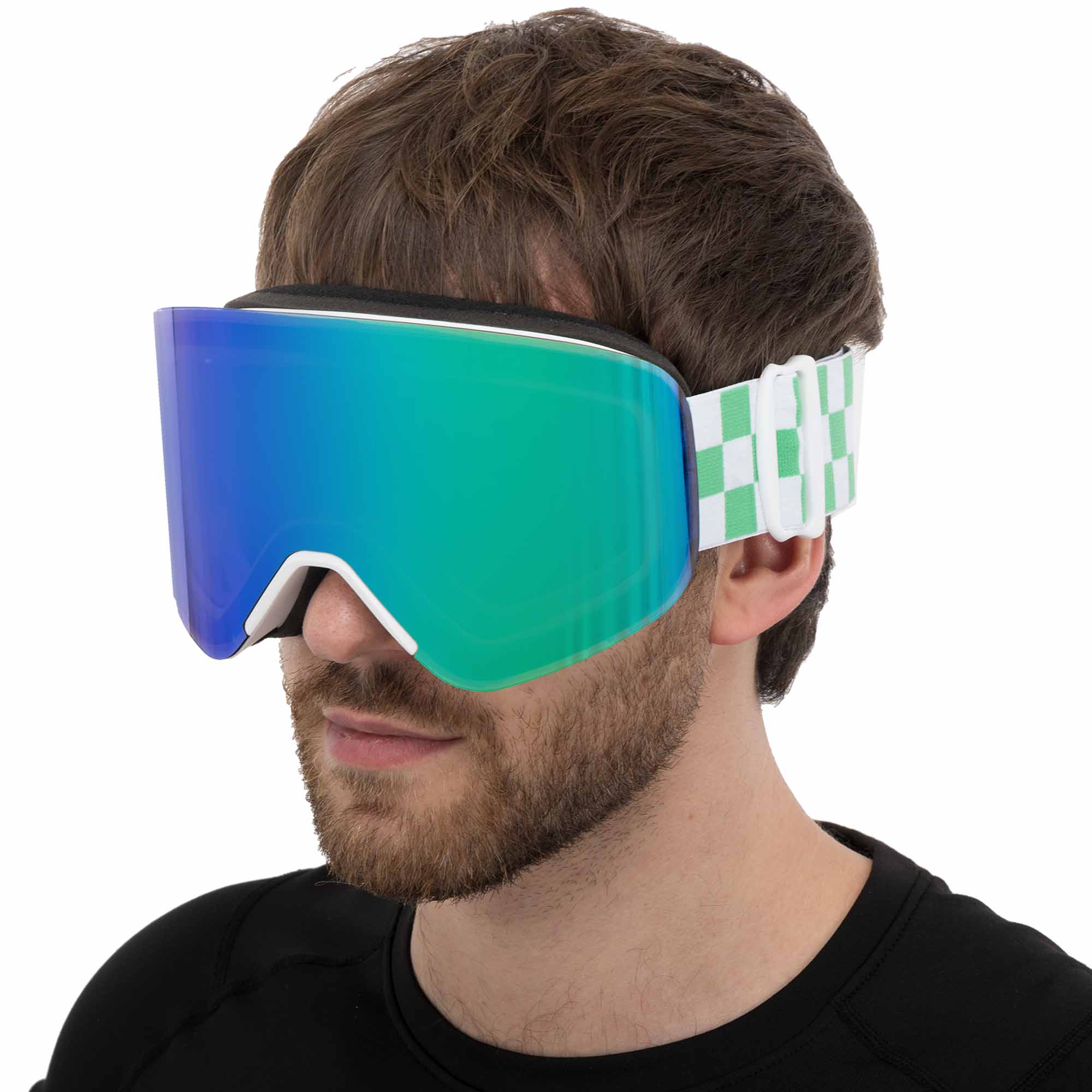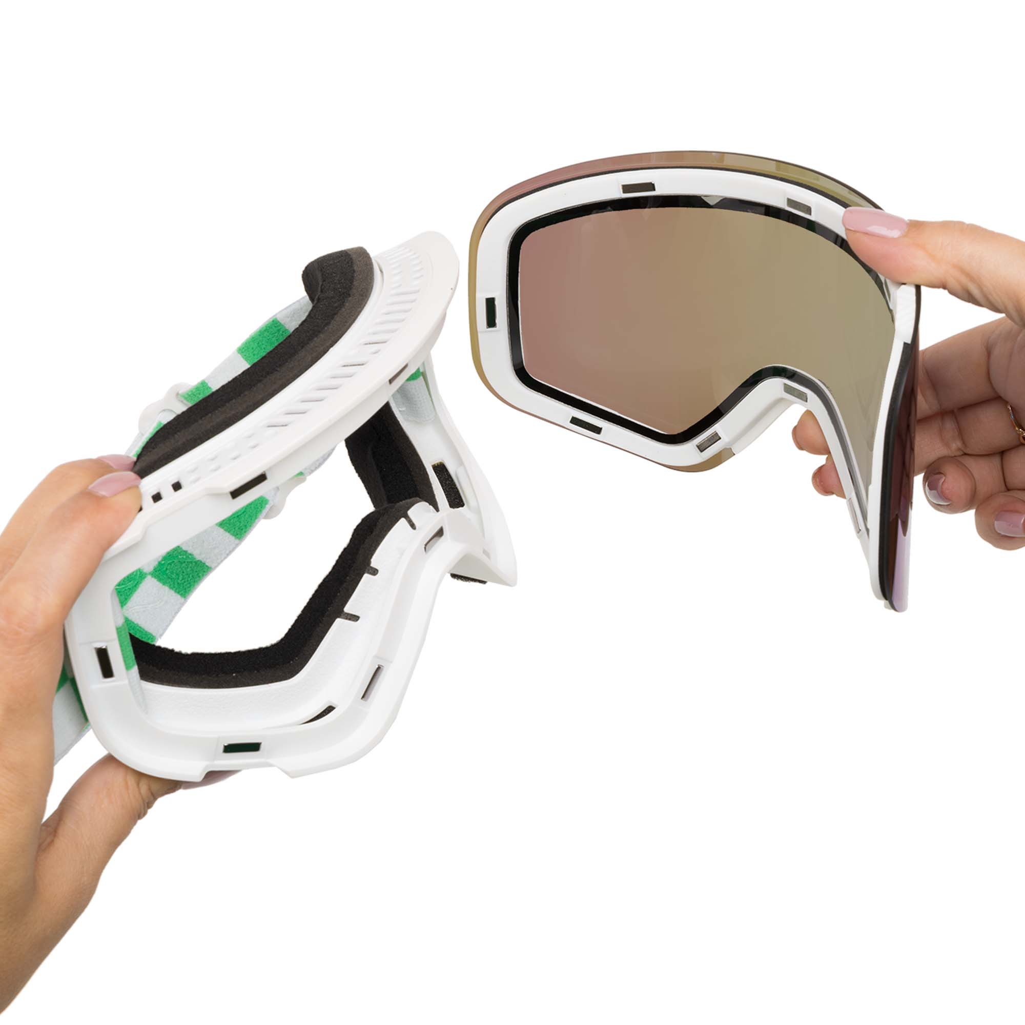 Гірськолижні окуляри SP-Sport BC-5844 мають оправу білого кольору і міцні зелені лінзи з полікарбонату та ацетату целюлози. Окуляри забезпечують відмінний захист від ультрафіолету, призначені для дорослих і можуть використовуватися під час катання на лижах або сноуборді. І лінза, і оправа мають високу стійкість до ударів і низьких температур. Щільне прилягання окулярів до обличчя забезпечує ущільнювач з тришарової піни. Для захисту від запотівання використовується антифог-покриття. Лінза з поляризацією гарантує захист від відблисків і хороший огляд. Лінза має циліндричну форму. Вона фіксується на оправі за допомогою магнітного кріплення і може бути замінена в разі необхідності максимально швидко, буквально одним рухом.