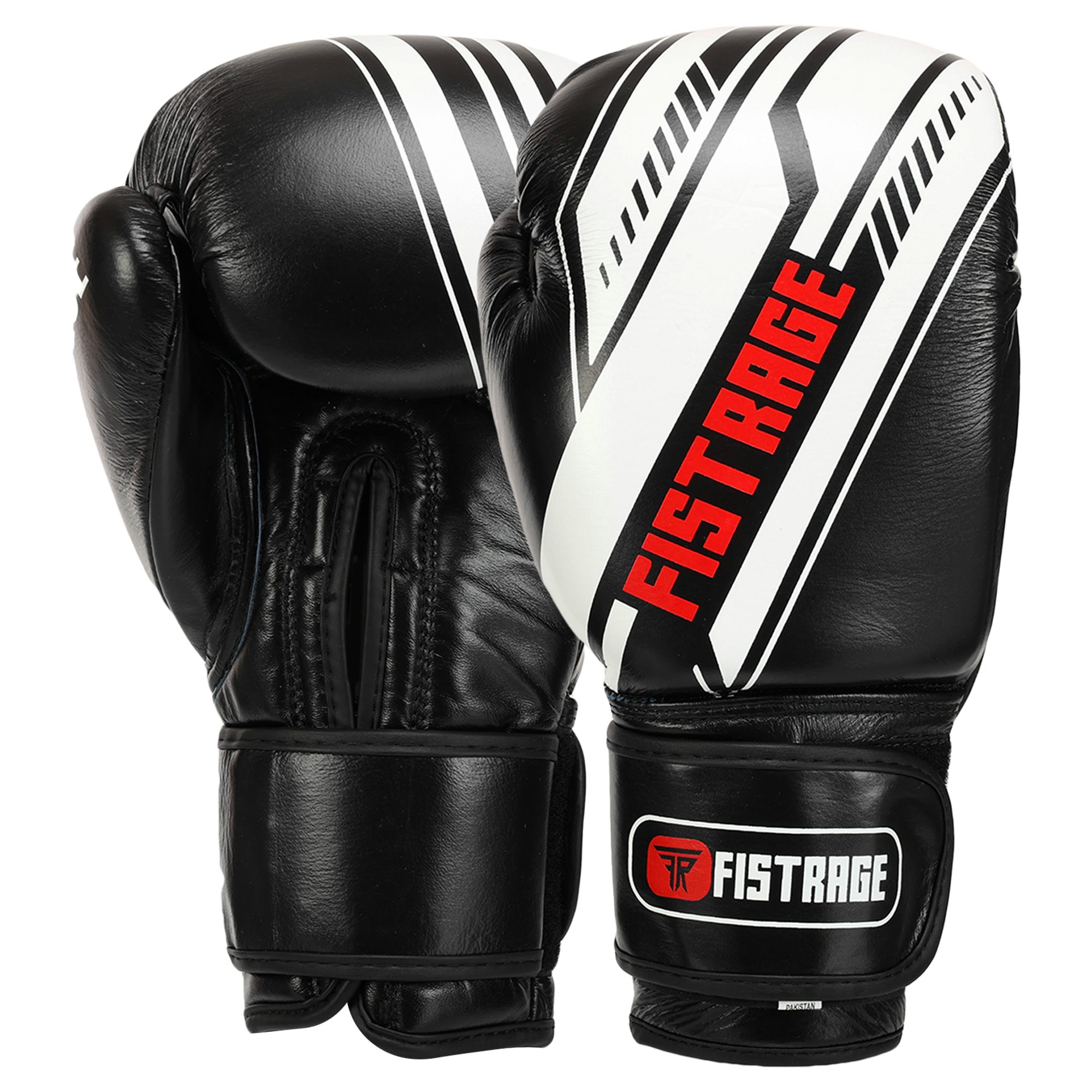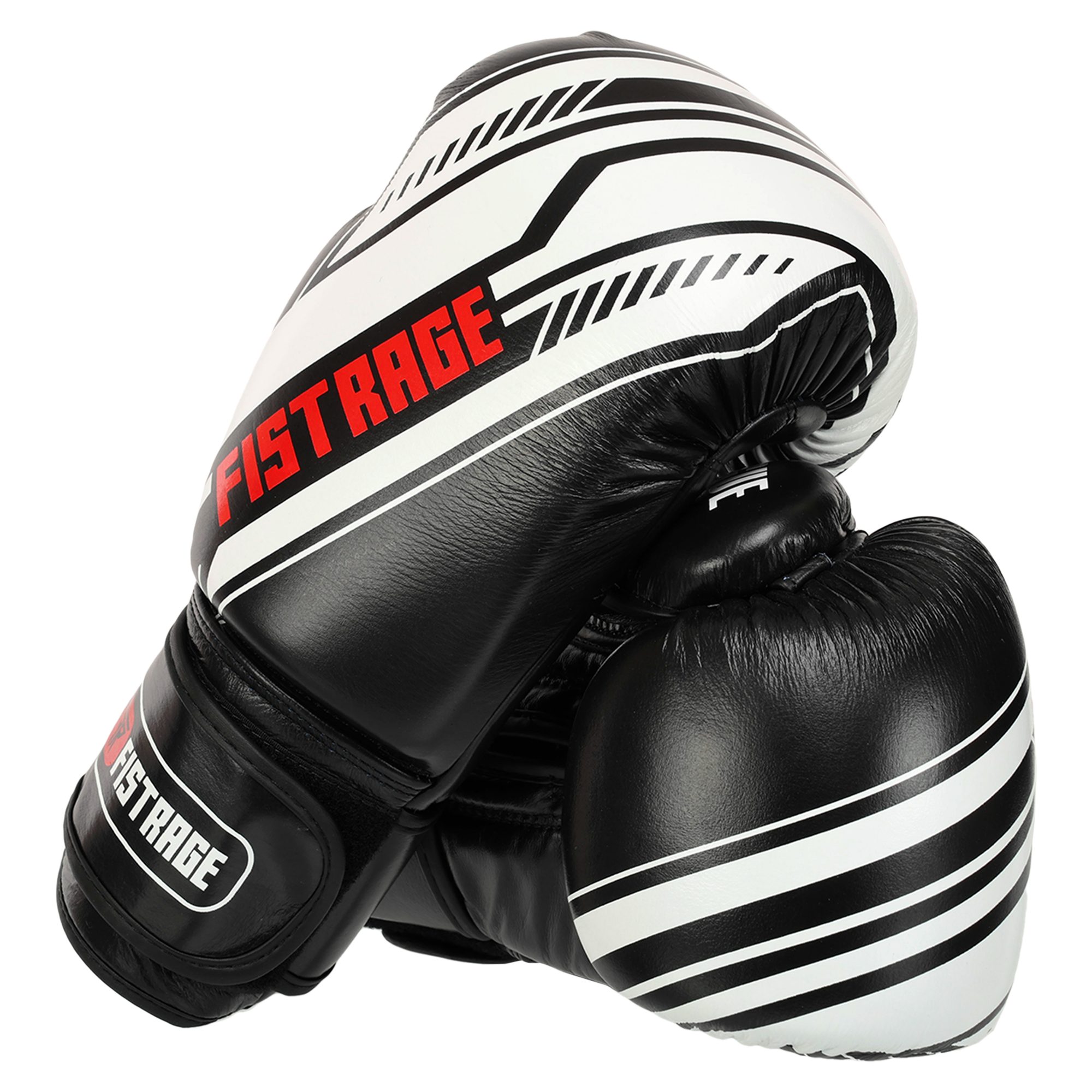 Рукавиці боксерські на липучці шкіряні FISTRAGE VL-7862 10-14унцій чорний-білий