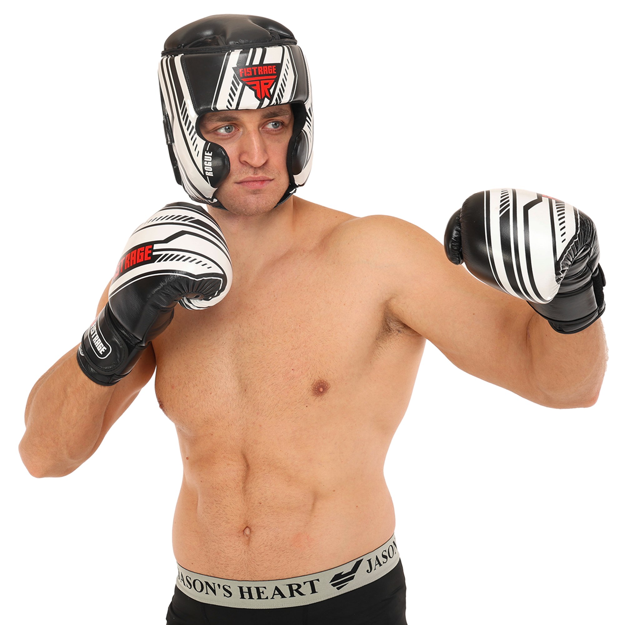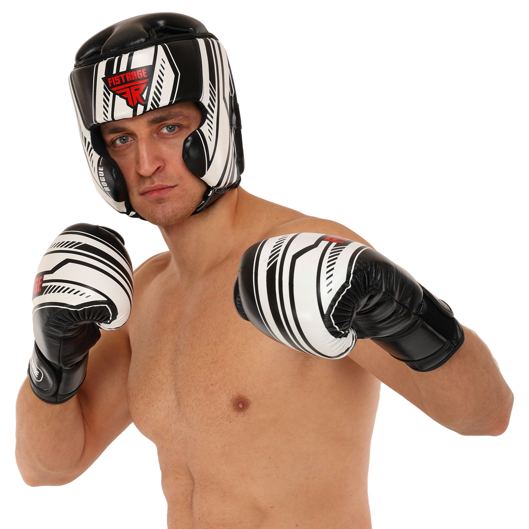 Рукавиці боксерські на липучці шкіряні FISTRAGE VL-7862 10-14унцій чорний-білий Код VL-7862