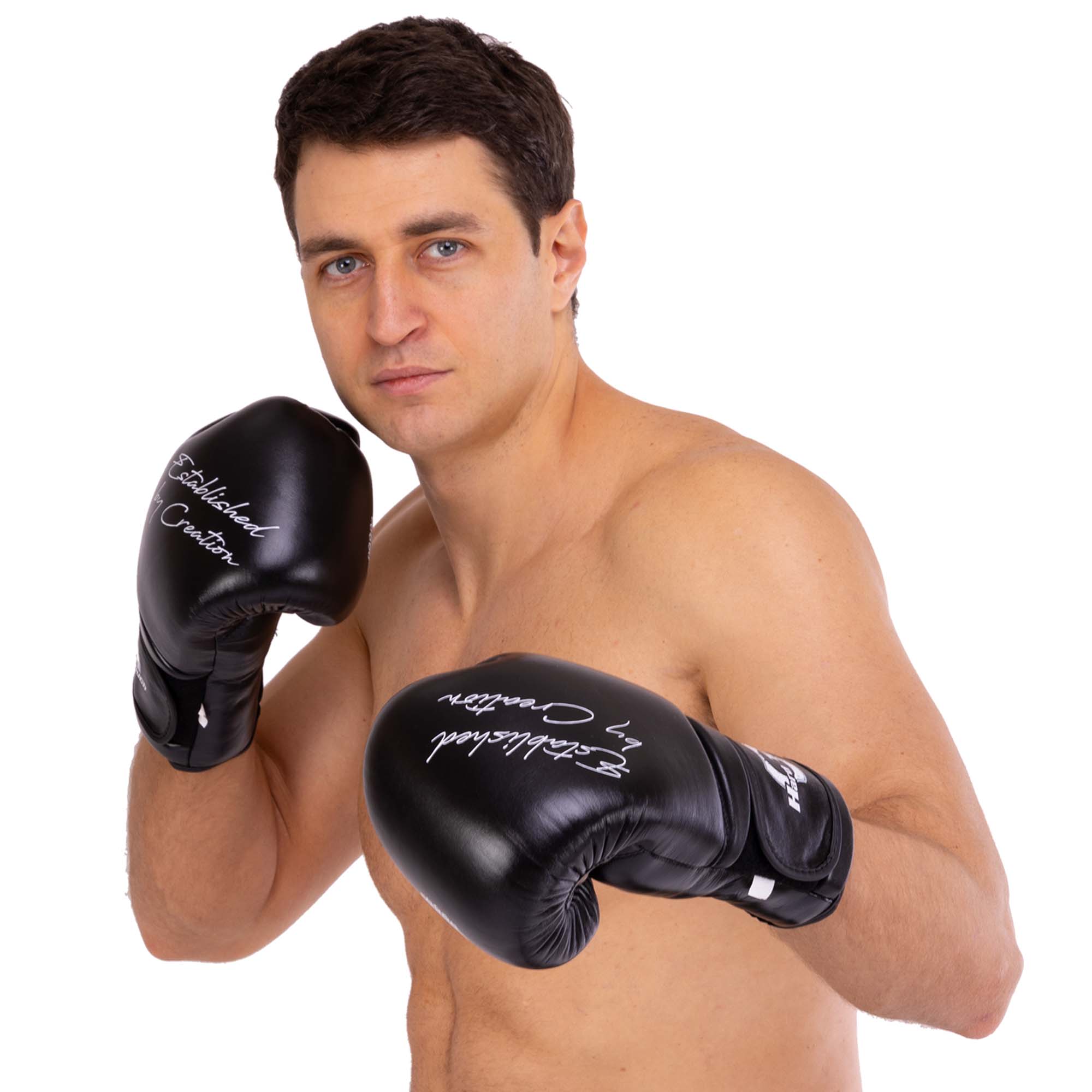 Рукавиці боксерські на липучці шкіряні HARD TOUCH BO-5232 10-14унцій чорний Код BO-5232