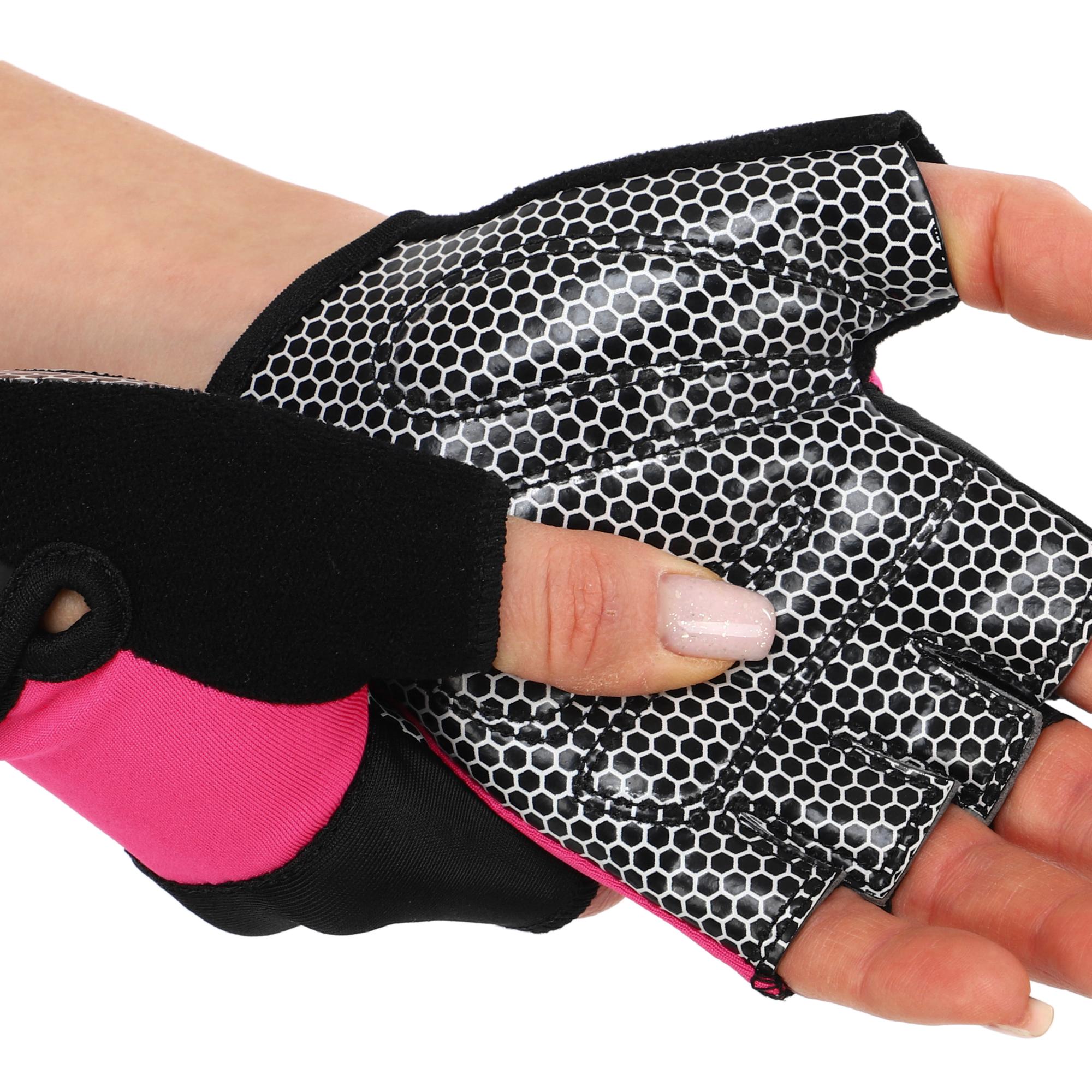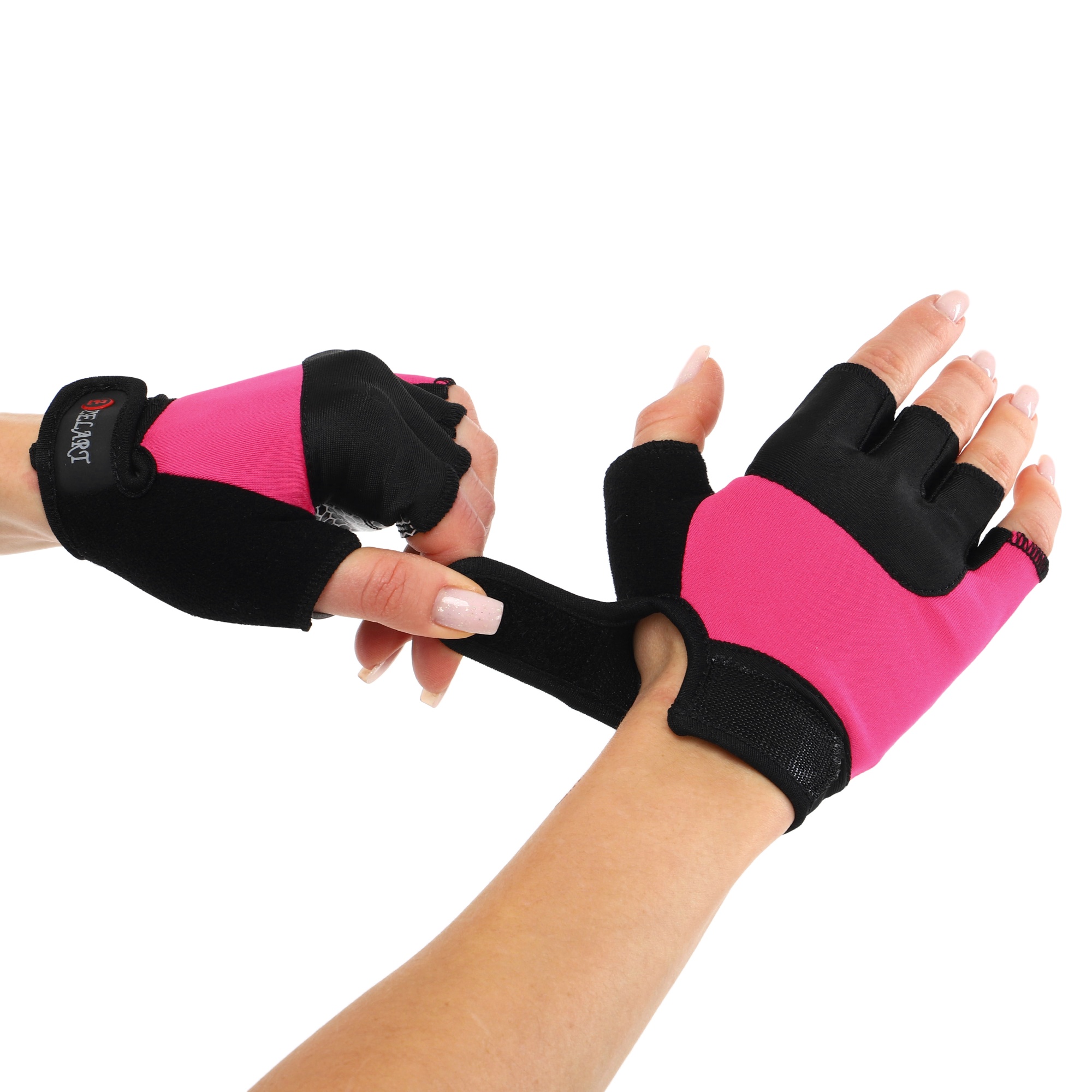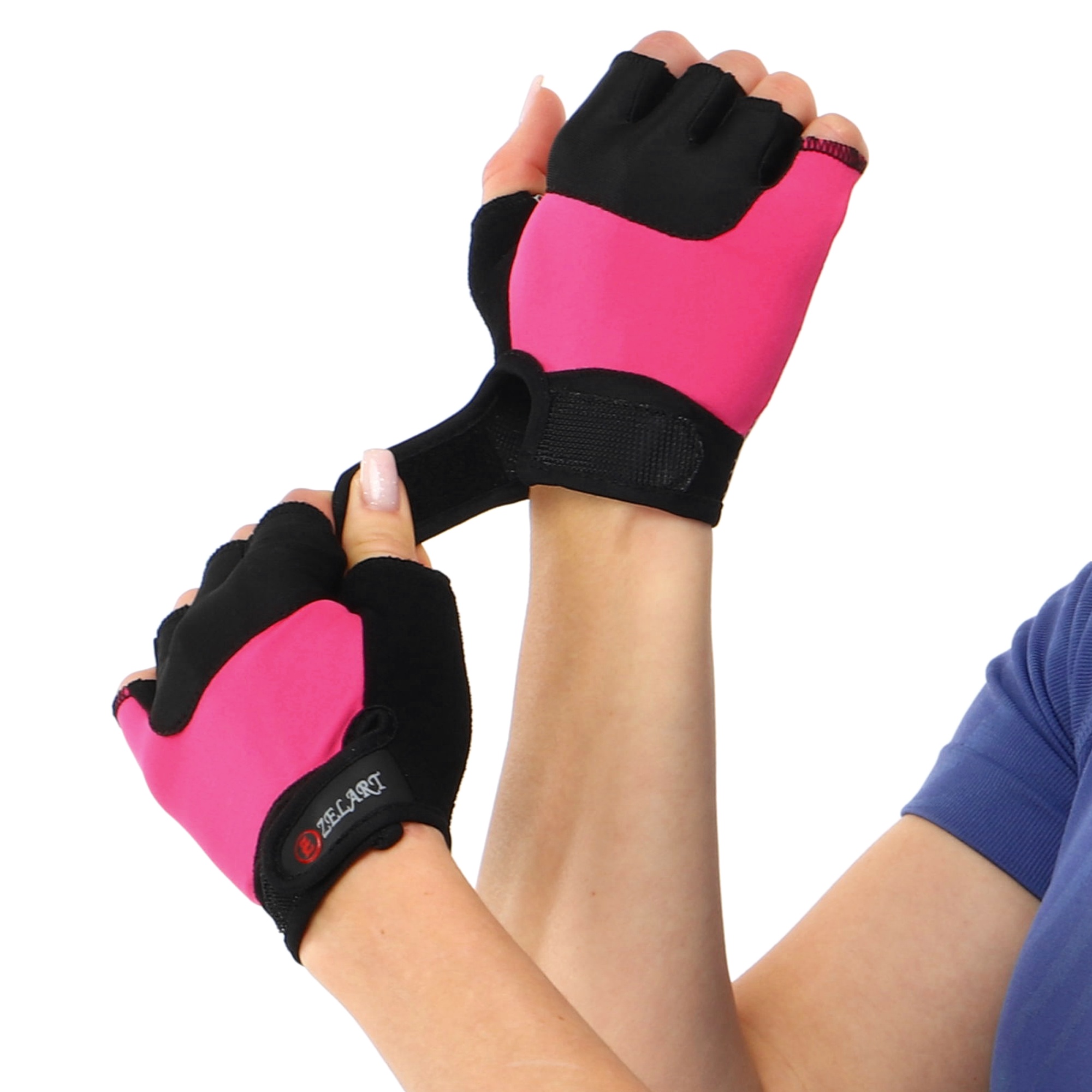 Жіночі фітнес рукавички Zelart BC-3788 - стильний і функціональний аксесуар, що забезпечує комфорт і безпеку кожного тренування. М'які рукавички з відкритими пальцями мають відмінну повітропроникність і допомагають знизити тиск на руки під час виконання силових вправ. Вони зшиті в класичному дизайні та вирізняються високою міцністю. Еластичний матеріал на тильній стороні долоні дає змогу зберегти гнучкість рухів, а нековзне захисне покриття на долонях значно покращує зчеплення та захищає руки від пошкоджень і травм. У місцях найбільшого тиску рукавички обладнані наповнювачем, який запобігає ударам під час підйому та жиму снарядів. Фіксується виріб на зап'ясті за допомогою міцної липучки.