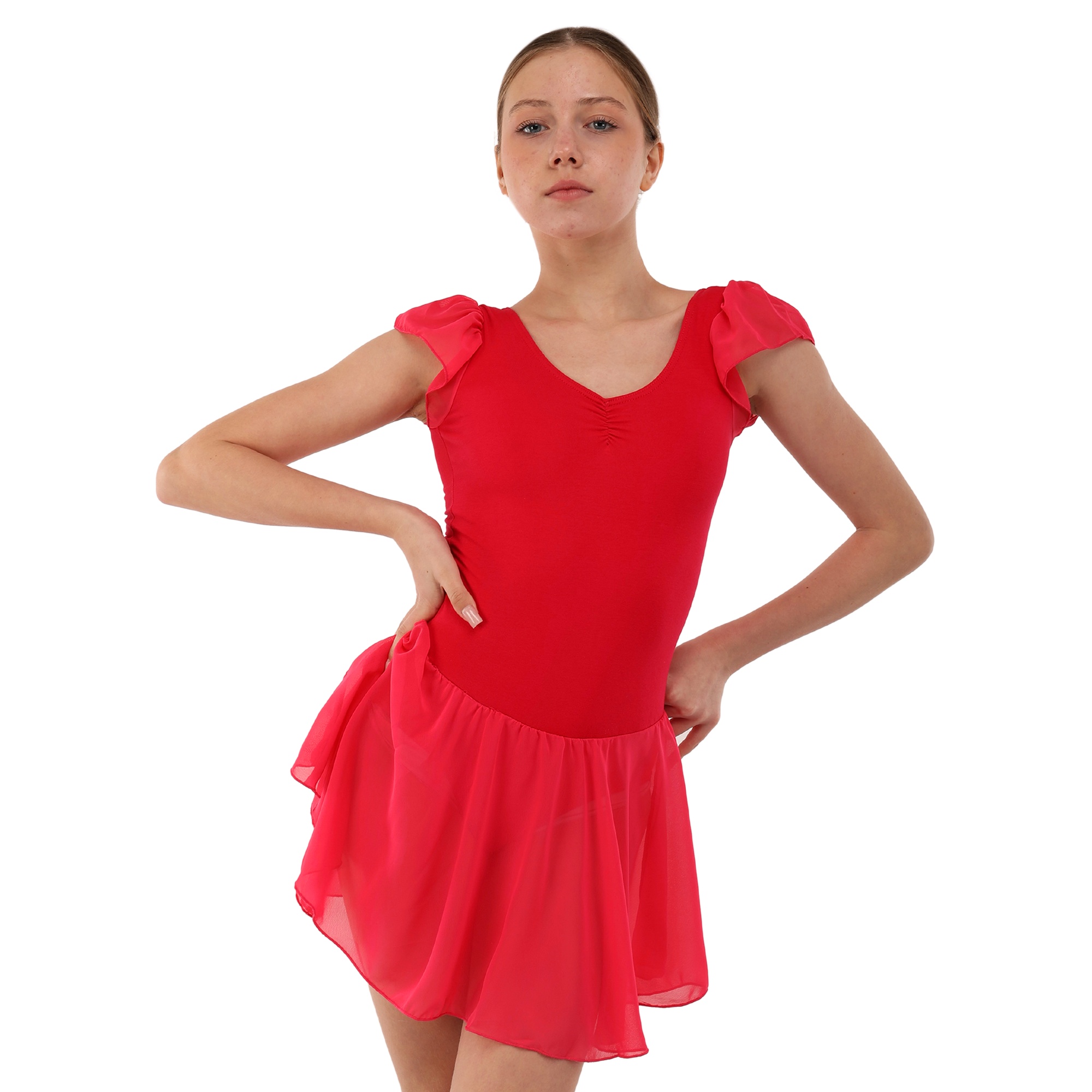 Рейтингова сукня Бейсік Lingo CHD01 має короткі рукави та V-подібний виріз. Сукня виготовлена з непрозорої тканини. Для пошиття сукні використовуються натуральна бавовна та шифон, які надають вбранню витонченості та роблять його максимально комфортним для занять танцями.