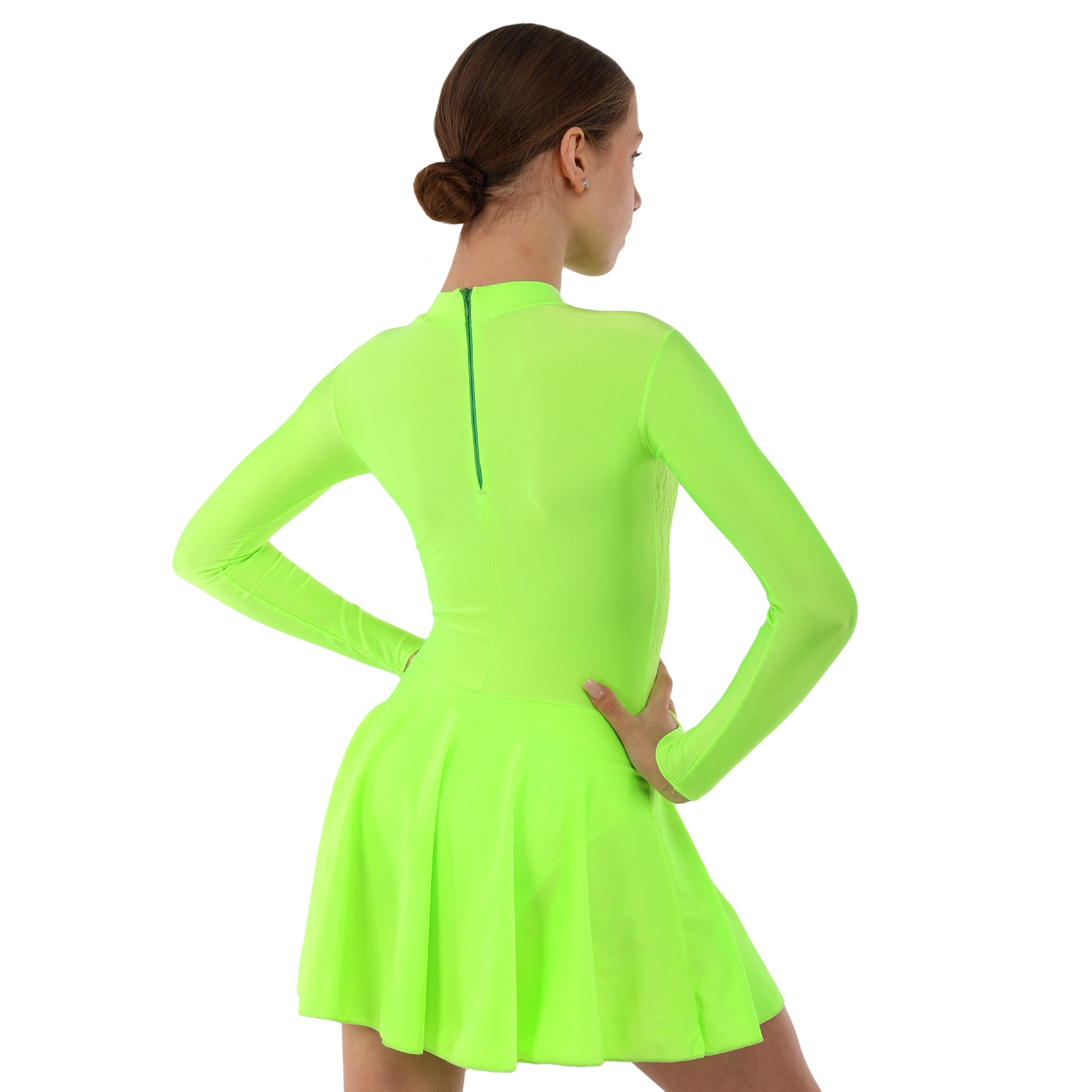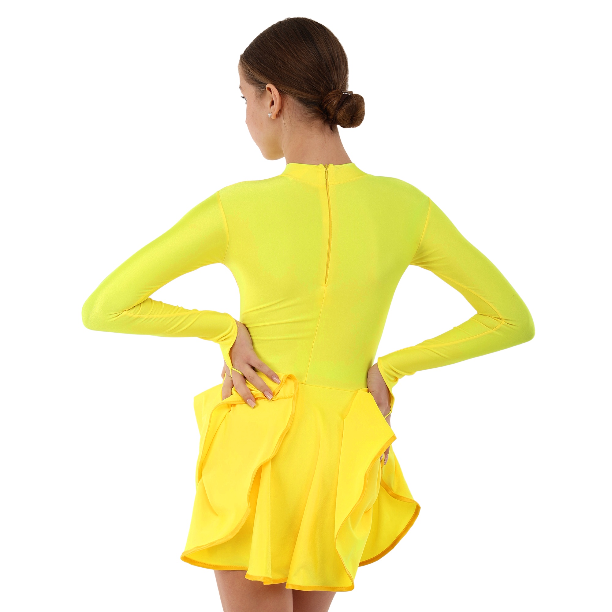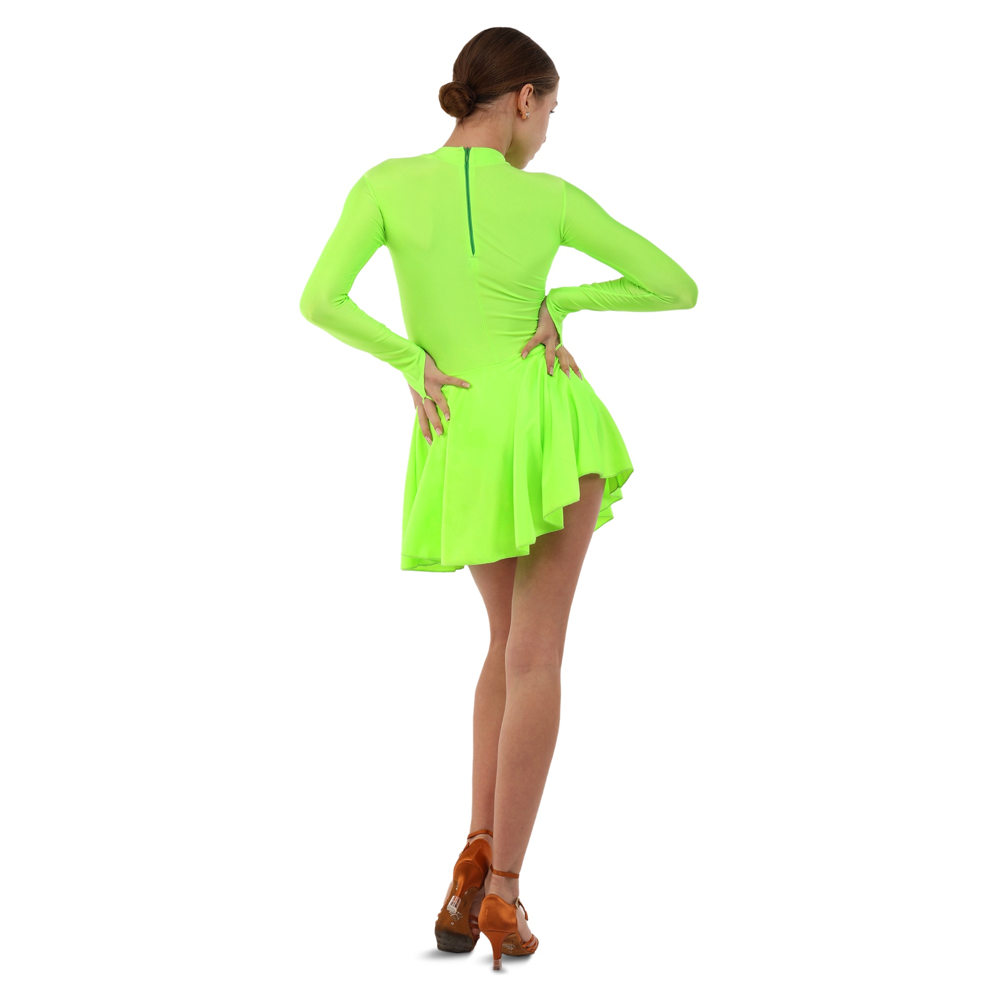 Традиційний крій рейтингової сукні забезпечує максимальну свободу рухів. Спідниця пришита до талії і ніяк не заважає виконанню танцювальних елементів, вона не закриває коліна.