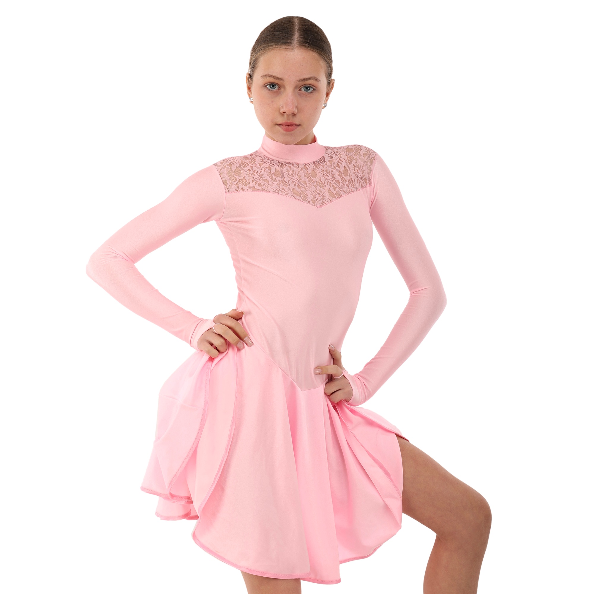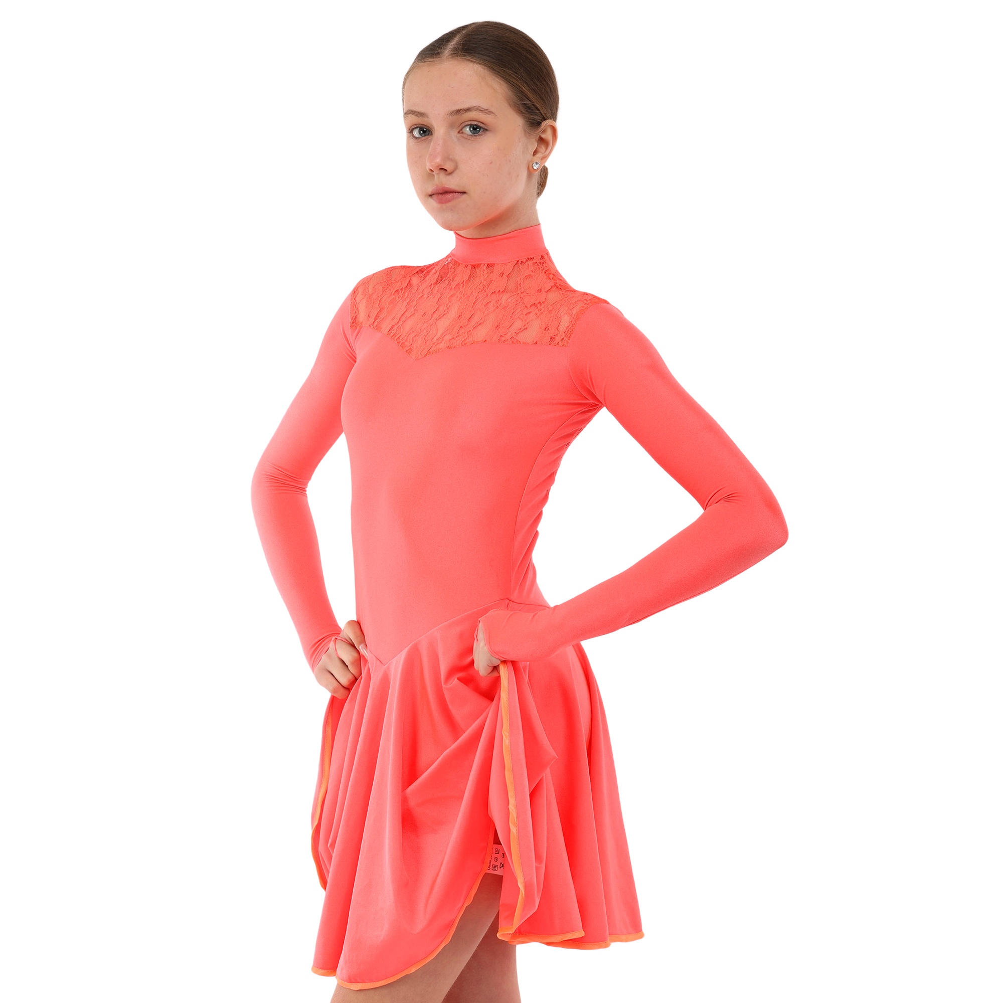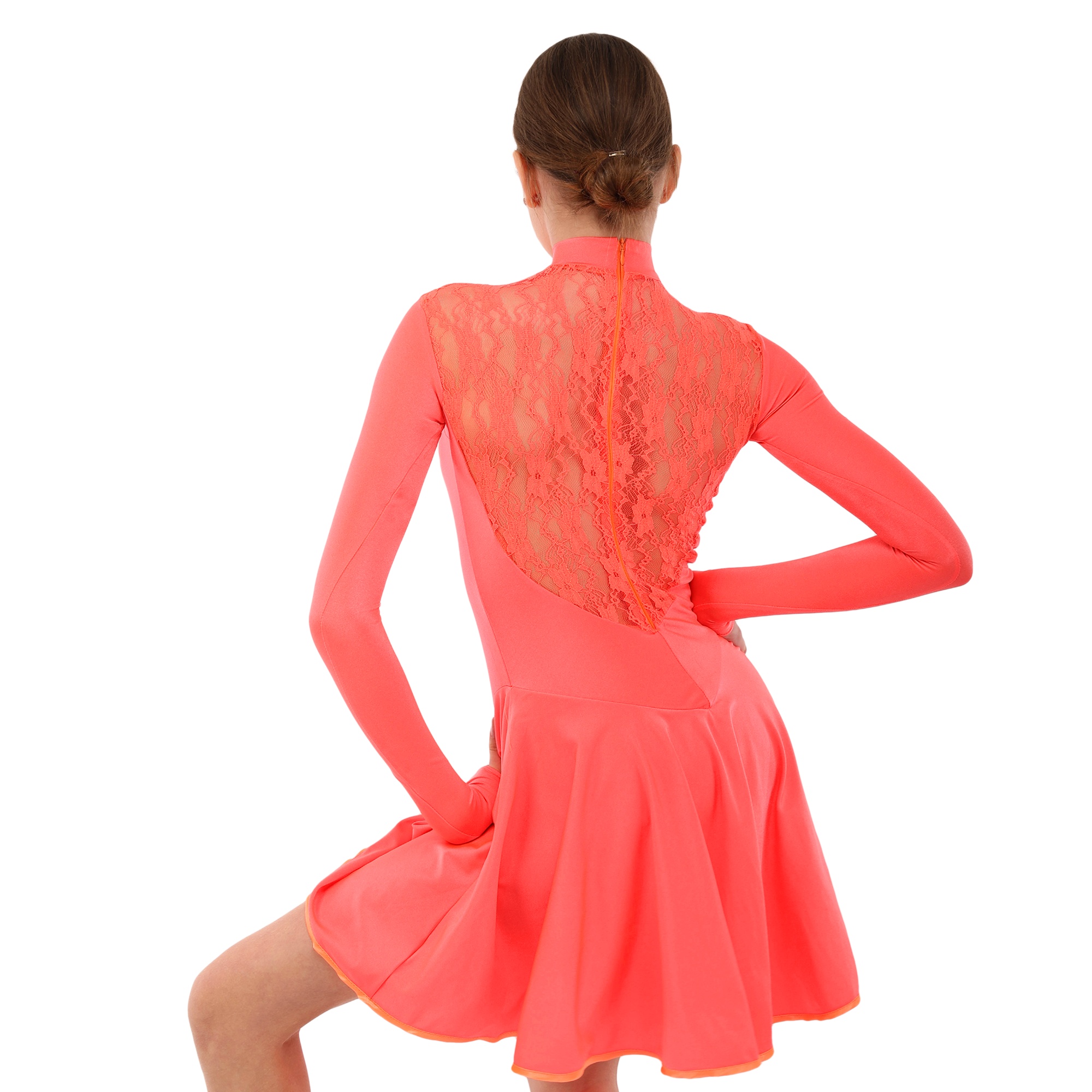 Традиційний крій рейтингової сукні забезпечує максимальну свободу рухів. Спідниця пришита до талії і ніяк не заважає виконанню танцювальних елементів, вона не закриває коліна.