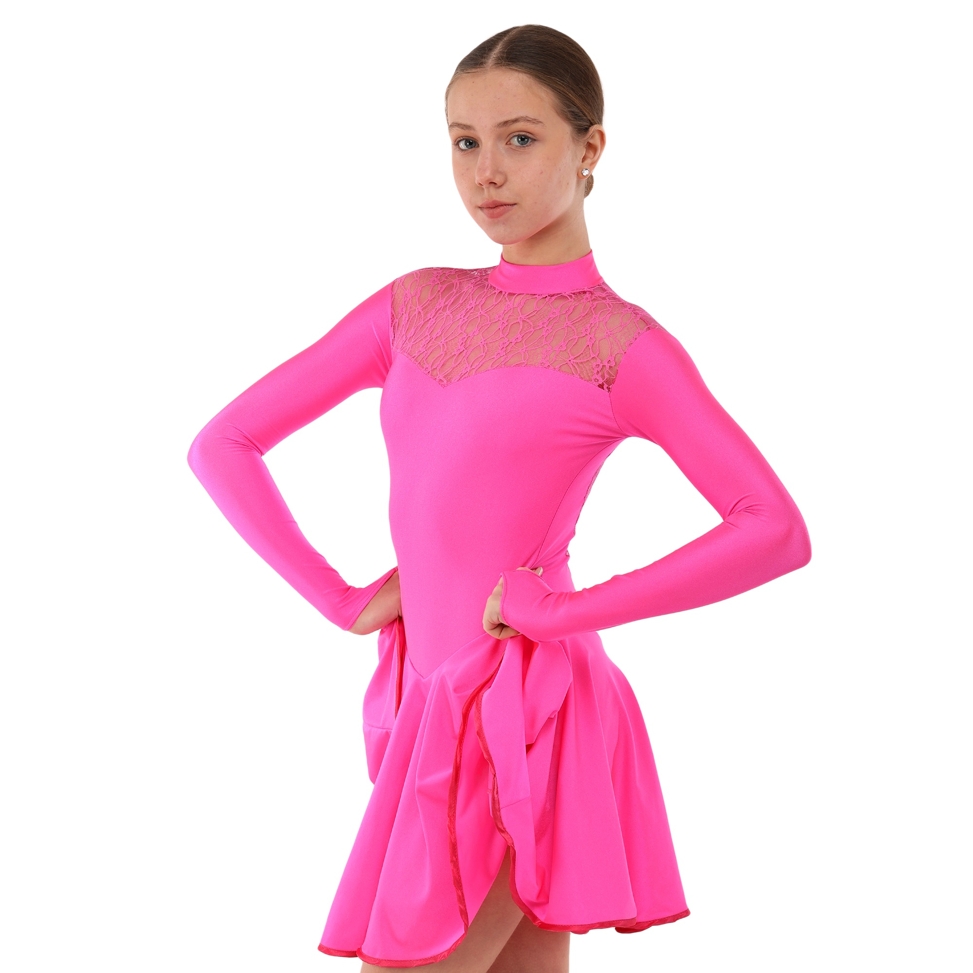 Сукня рейтингова Бейсік для бальних танців з довгим рукавом SP-Planeta DR-1494 розмір 32-42 кольори в асортименті