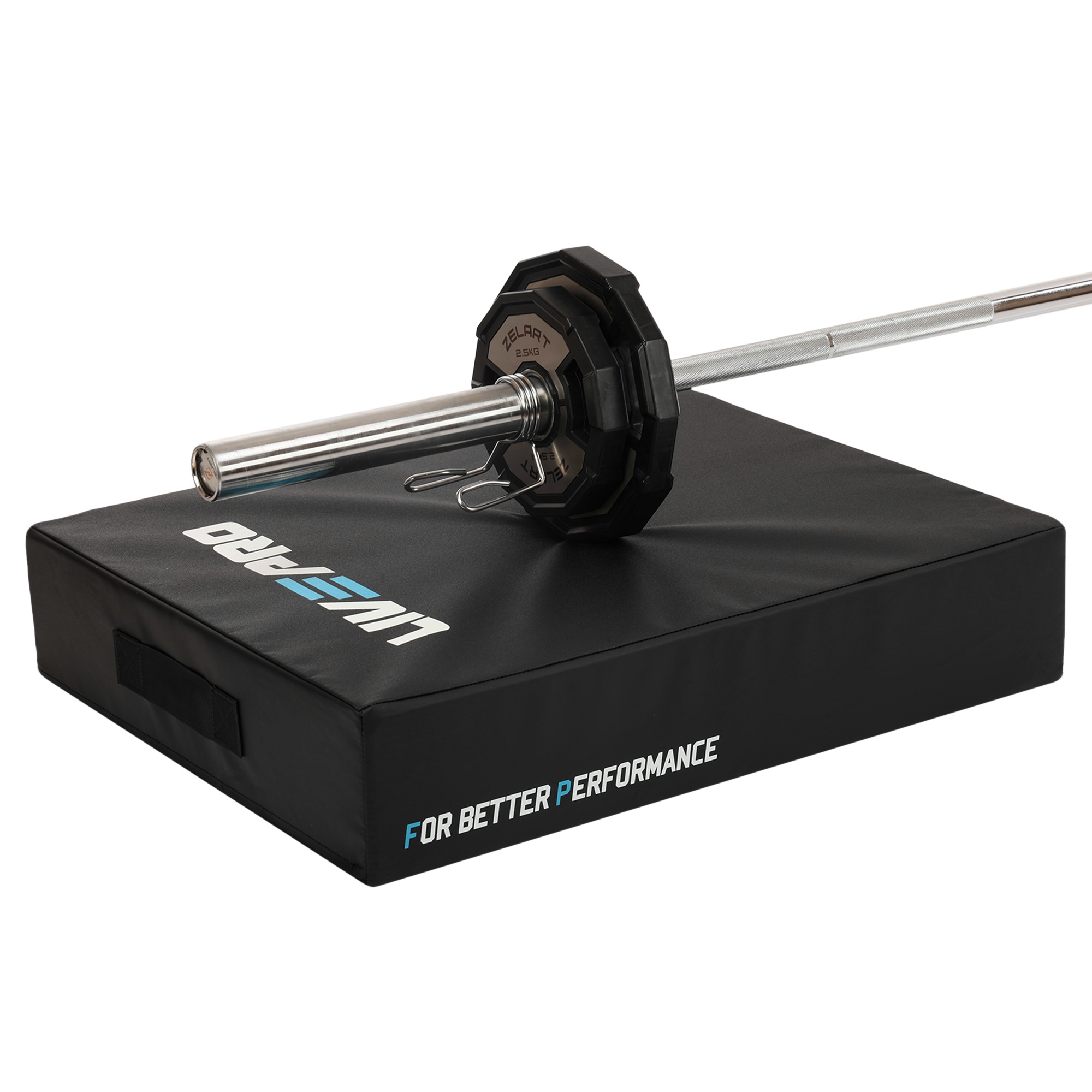 Під час виконання вправ зі штангою дуже важливо використовувати якісний інвентар, який дозволить зменшити шум в залі і запобігти травмам. Плінтуси LiveUp LP8320 - це рішення для комерційних залів. Верх плінтуса виготовлений з полівінілхлориду. Наповнювач з регенеративної бавовни забезпечує амортизацію при падінні штанги, а також повністю прибирає шум від її використання. Плінтус має розміри 76 × 60 × 15 см. Це оптимальний розмір, який відповідає розміру дисків для штанги. Плінтус важить 11 кг.
