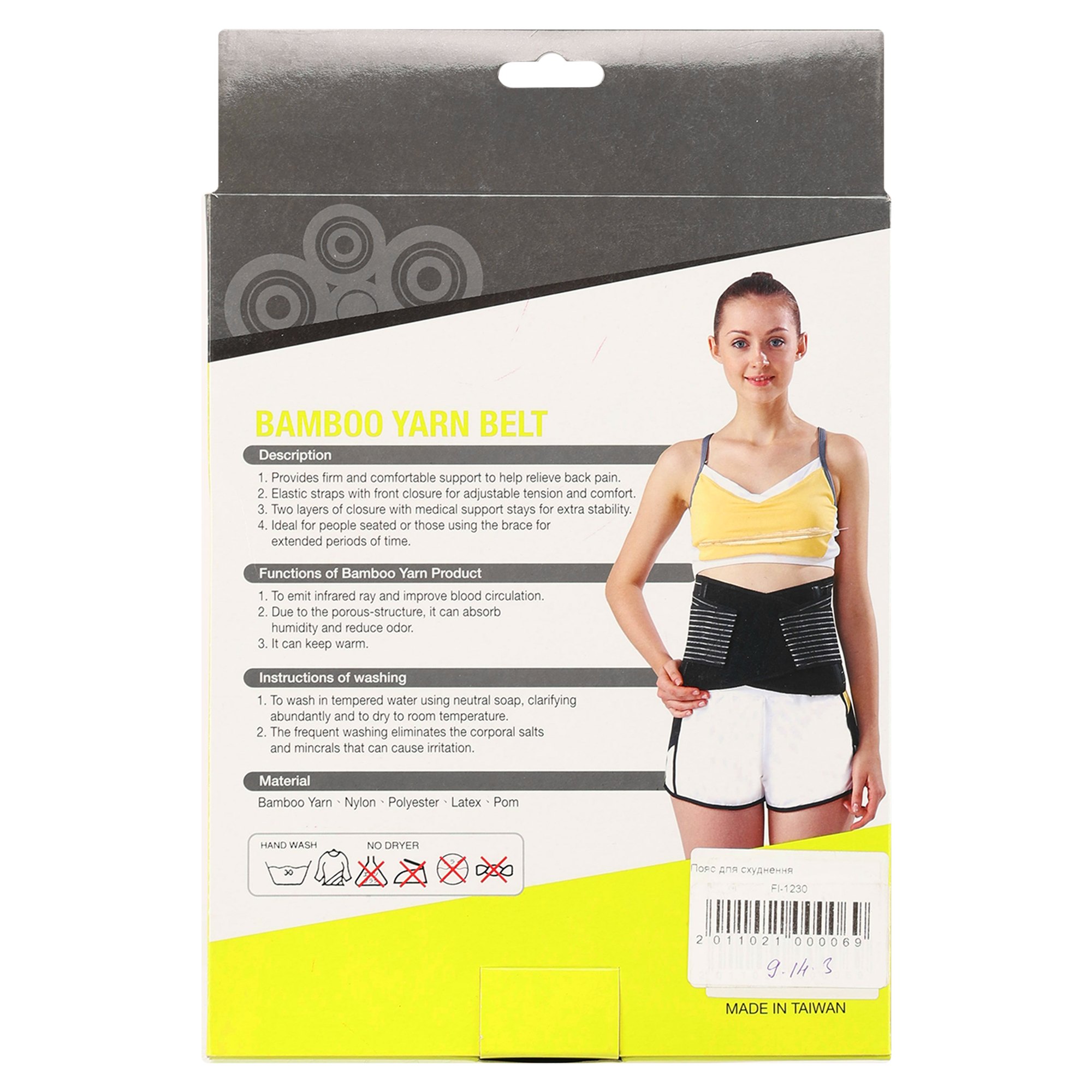 Пояс акуратно стягує талію, створюючи ефект тоншої лінії корпусу і допомагаючи зберігати правильну поставу навіть наприкінці напруженого дня. Особливо цінний пояс під час тренувань – чи то біг, заняття в залі чи домашні вправи. Він бере на себе частину навантаження від верхнього відділу тіла та знижує компресійну дію на хребет, що робить спорт комфортнішим та безпечнішим.Завдяки регульованій застібці-липучці пояс легко підганяється по фігурі – його можна носити як у більш щільному варіанті для максимального ефекту, що стягує, так і в розслабленому режимі, коли потрібна лише легка підтримка. Тканини з бамбуковою пряжею, нейлоном, поліестером і латексом забезпечують ідеальний баланс: вони міцні, зносостійкі, еластичні і добре пропускають повітря. Навіть при тривалому використанні тіло під поясом не перегрівається і не відчуває дискомфорту.