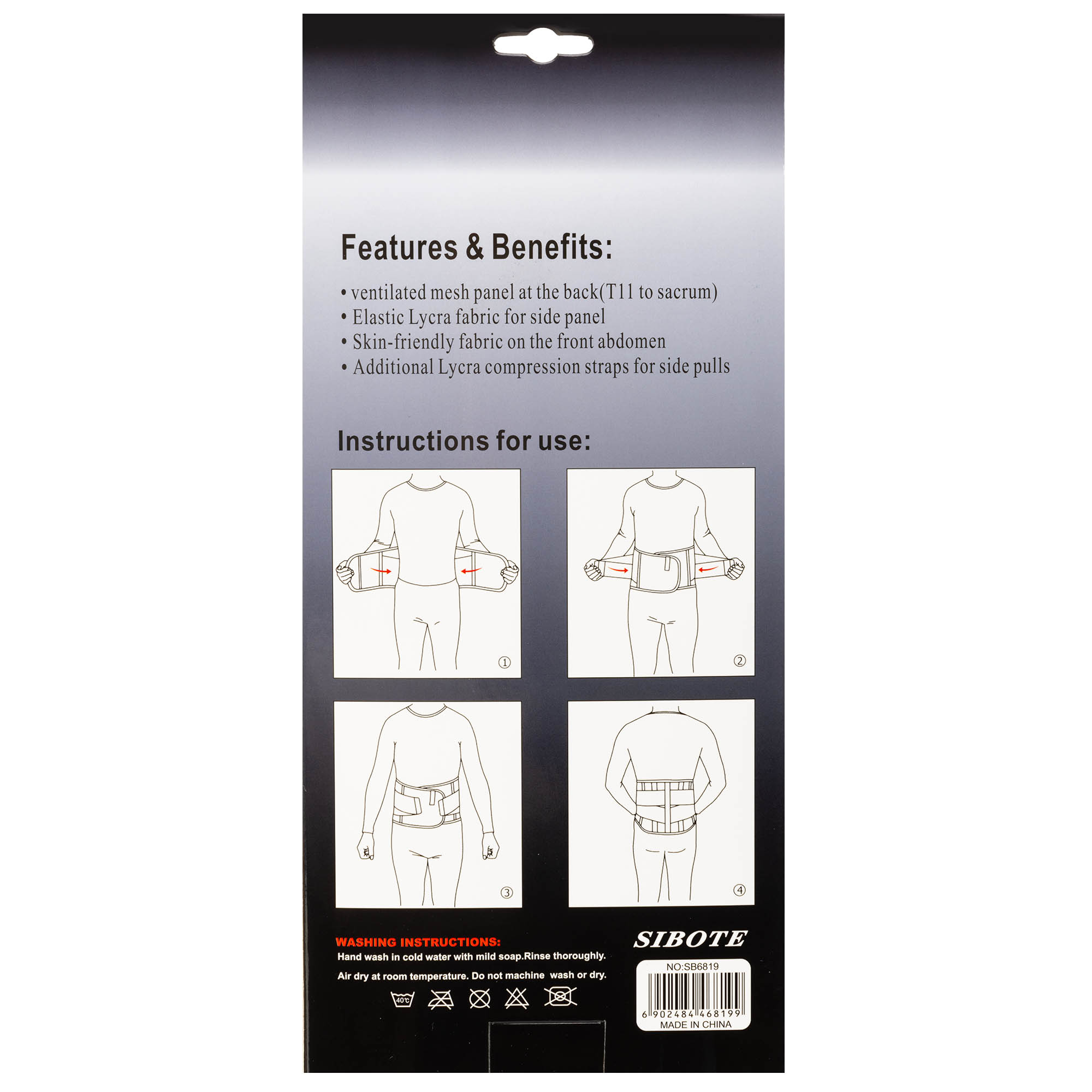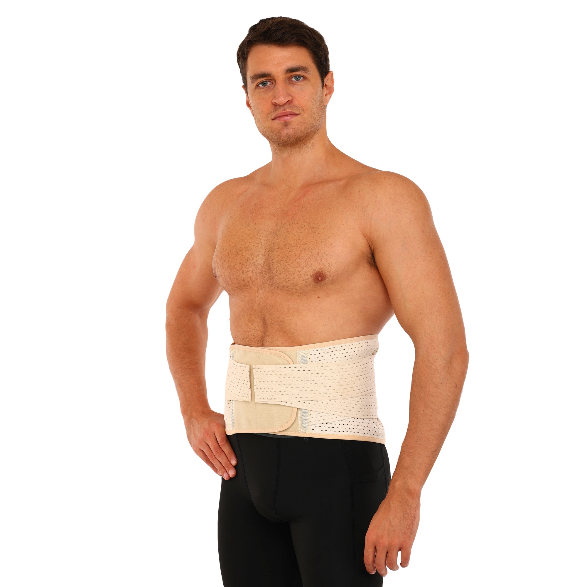 Пояс забезпечує компресійний ефект. Його ширина становить 26 см, що достатньо для фіксації поперекового відділу хребта або підтримки органів черевної порожнини. Довжина пояса - 103 см. Завдяки зручній застібці на липучці його можна регулювати за обхватом, і він підійде людям різної комплекції. Застібка розташовується спереду, що дає змогу самостійно надягати та знімати пристосування. Матеріал має перфорацію, необхідну для ефективного охолодження тіла, тому в поясі не буде жарко.