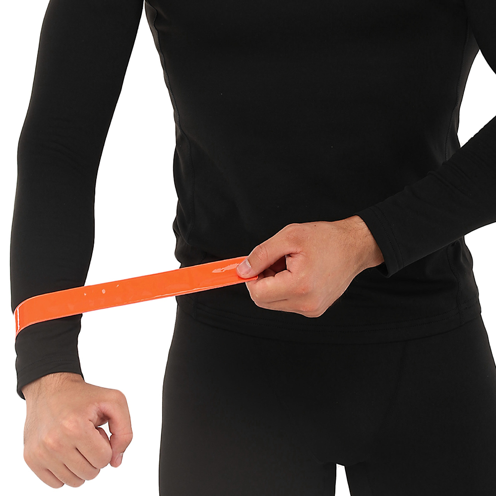 У дизайні використано смугу розширеного світловідбивного матеріалу, що проходить по всій довжині браслета. Це підсилює ефект видимості при попаданні світла, дозволяючи водіям та іншим учасникам дорожнього руху побачити вас з відстані. Важливо, що ця технологія натхненна тими ж принципами, що й дорожні знаки — фокусуватись на світлі та відбивати його назад до джерела.
