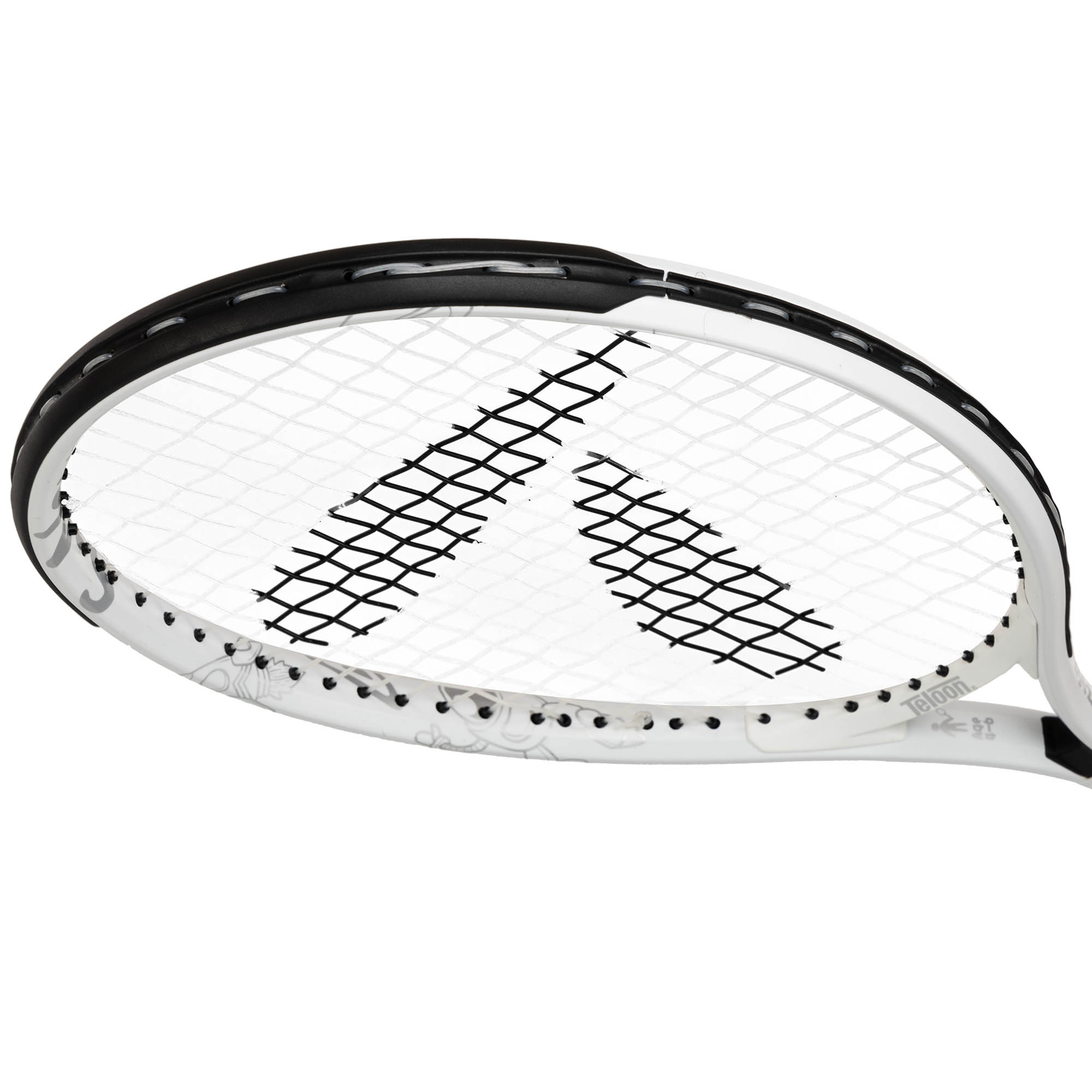 Якщо ваша дитина займається великим тенісом або тільки планує почати тренування з цього виду спорту, то в першу чергу їй необхідно придбати якісну ракетку. Ракетка від бренду TELOON дозволить завдавати точні удари, прослужить довго і буде радувати юного гравця на кожному тренуванні. Для виготовлення ракетки виробник використовував алюміній, який має мінімальну вагу, але при цьому велику міцність. Цей матеріал є найпопулярнішим для виробництва ракеток для початківців. Довжина ракетки становить 533 мм, що дорівнює 21 дюйму. Такий розмір рекомендується використовувати дітям із зростом від 110 до 122 см. Ручка ракетки покрита спеціальною намоткою, яка перешкоджає ковзанню рук і дозволяє гравцеві зробити захват максимально зручним і надійним.