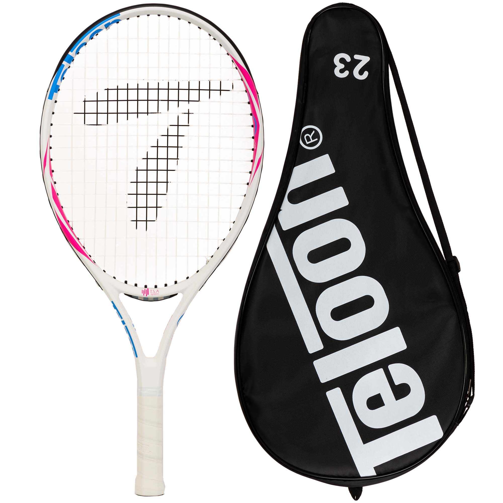 Ракетки для великого тенісу від бренду TELOON - це якісний інвентар, який можна використовувати для навчання техніки гри в теніс на професійному рівні, а також для аматорських ігор. Ракетка виготовляється з легкого і міцного металу - алюмінію. Це дозволяє, з одного боку, забезпечити маневреність інвентарю і не перевантажувати руки дитини, а з іншого боку, зробити його максимально міцним і зносостійким. Такі ракетки мають тривалий термін служби, попри те, що найчастіше їх використовують новачки, які ще не до кінця володіють технікою ударів і нерідко промахуються по м'ячу. Голова ракетки має велику зону для ефективного удару, що дозволяє зробити удари максимально точними. На ручці присутня намотка, яка перешкоджає ковзанню рук.