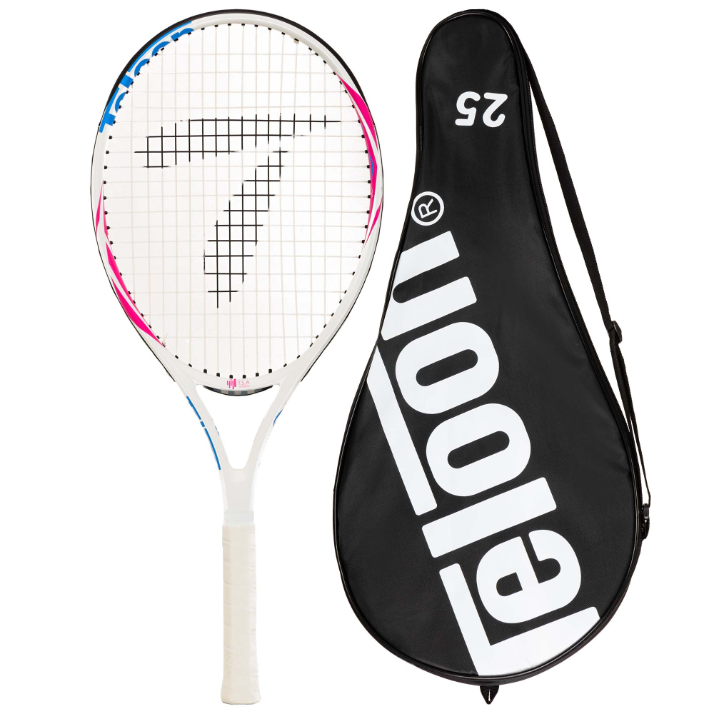 Ракетки для великого тенісу від бренду TELOON - це якісний інвентар, який можна використовувати для навчання техніки гри в теніс на професійному рівні, а також для аматорських ігор. Ракетка виготовляється з легкого і міцного металу - алюмінію. Це дозволяє, з одного боку, забезпечити маневреність інвентарю і не перевантажувати руки дитини, а з іншого боку, зробити його максимально міцним і зносостійким. Такі ракетки мають тривалий термін служби, попри те, що найчастіше їх використовують новачки, які ще не до кінця володіють технікою ударів і нерідко промахуються по м'ячу. Голова ракетки має велику зону для ефективного удару, що дозволяє зробити удари максимально точними. На ручці присутня намотка, яка перешкоджає ковзанню рук.
