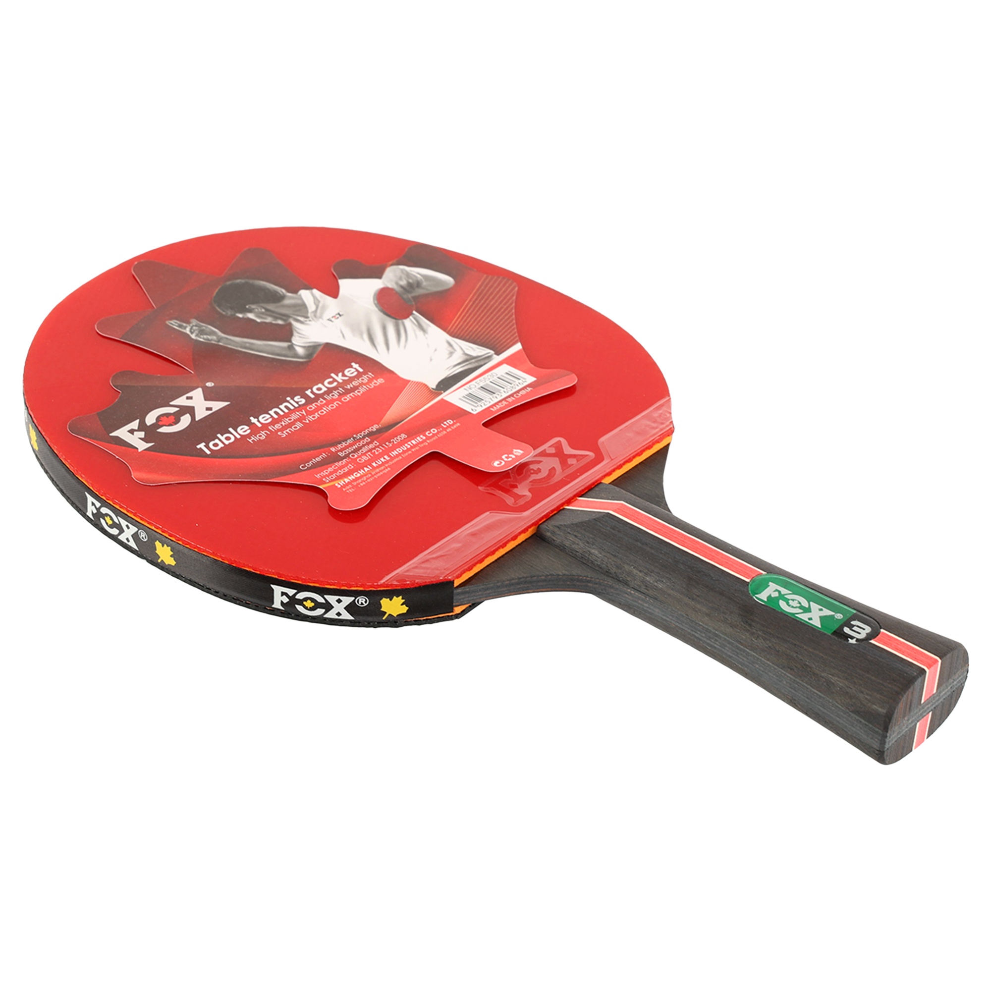 Ракетка для настільного тенісу від бренду FOX виготовлена з багатошарової деревини, яка забезпечує стабільний відскок по всій площі лопаті. Це дозволяє з максимальним комфортом працювати як в обороні, так і в нападі. Накладка виконана з гуми і має гладку поверхню, що дозволяє наносити максимально точні удари.