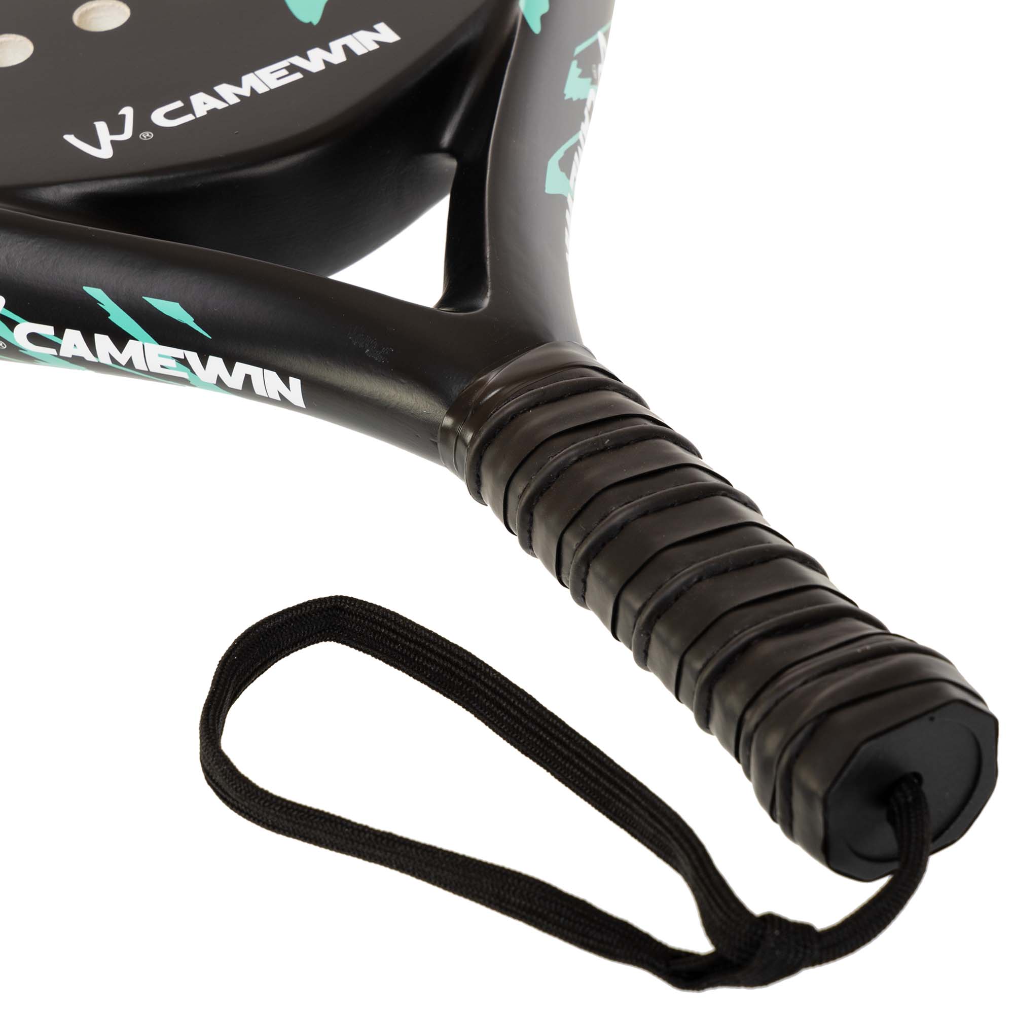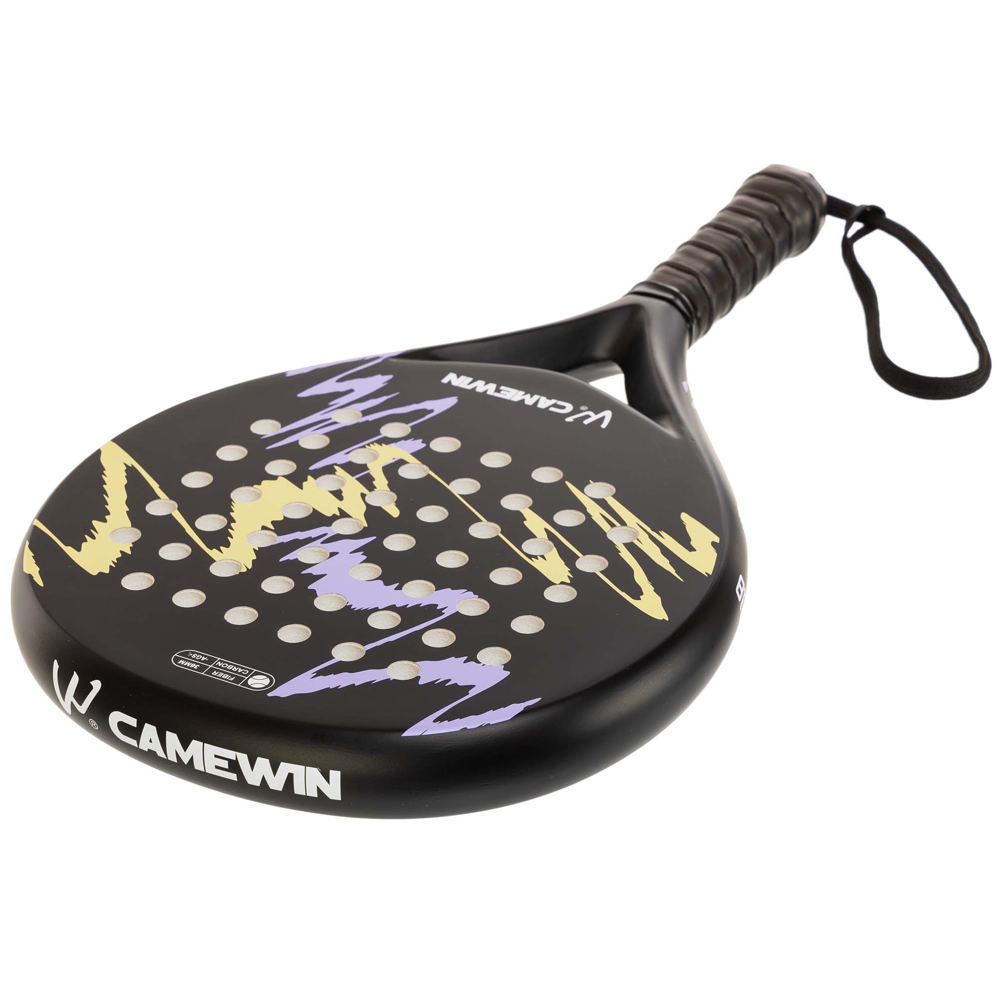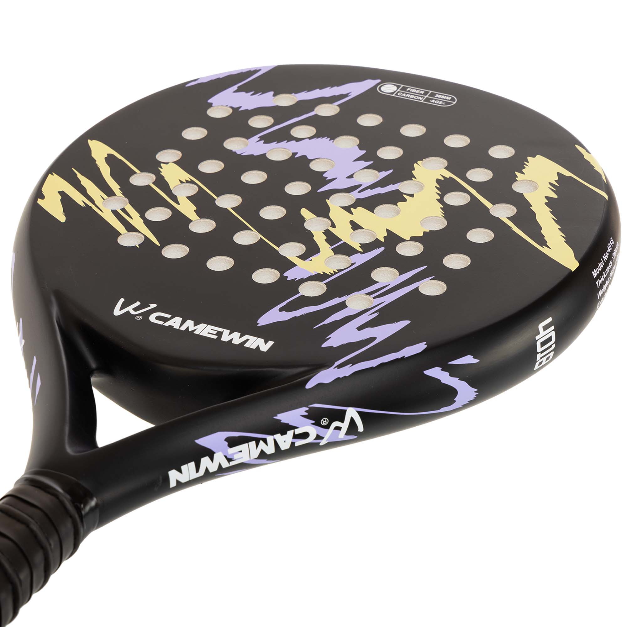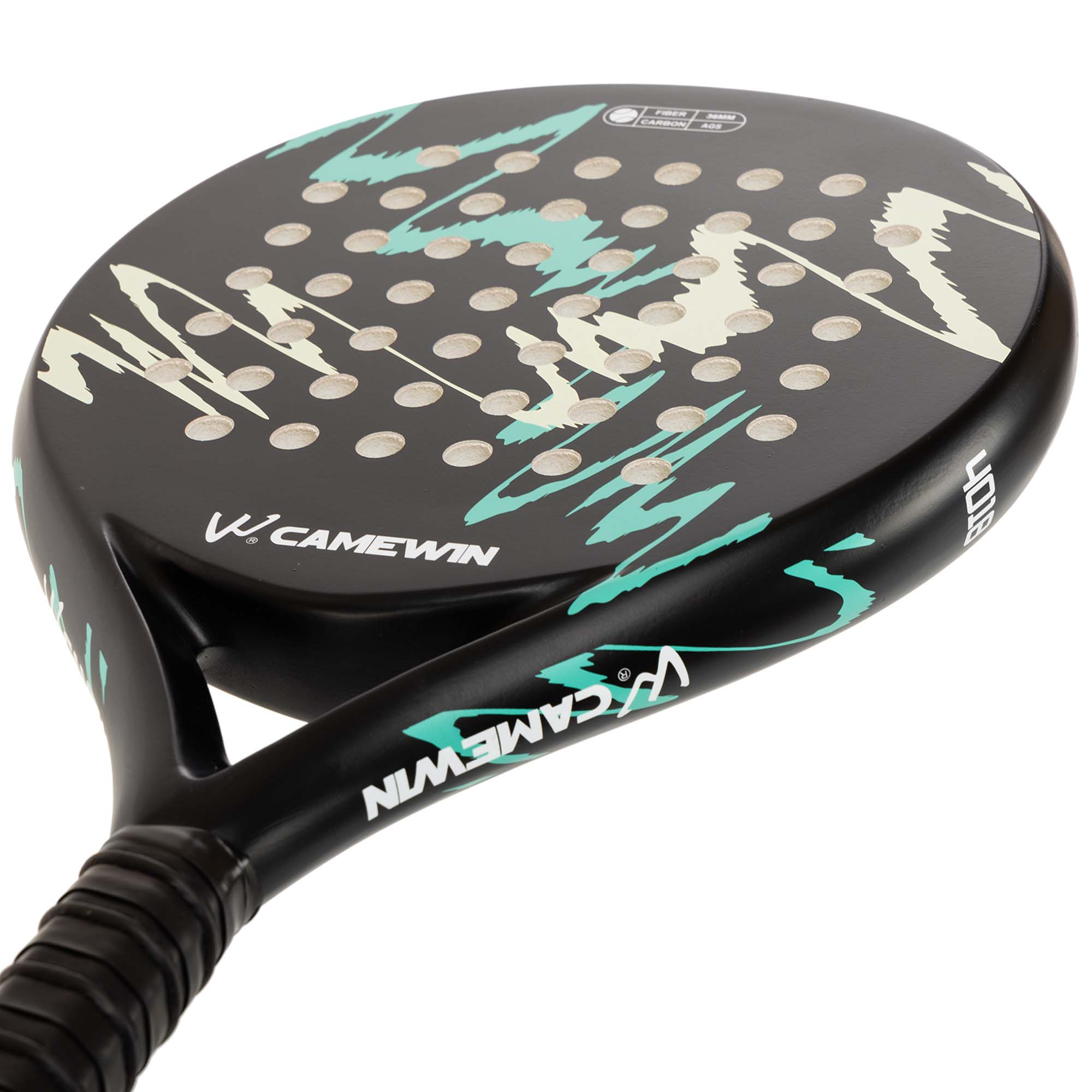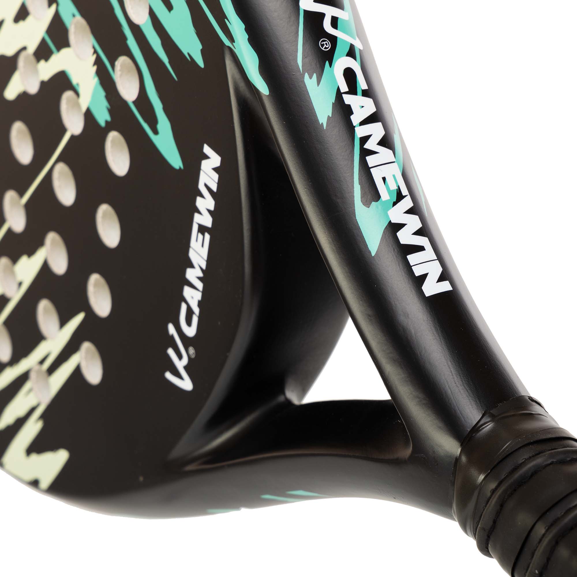 Padel CAMEWIN BT-6525 - це ракетка для падел-тенісу, яка укомплектована спеціальним чохлом для зберігання і транспортування. Рама ракетки виконана з карбону і скловолокна в рівних частках. Таке поєднання матеріалів гарантує оптимальну гнучкість і міцність спортивного снаряда. Ракетка має краплеподібну форму голови, що дозволяє використовувати її для різних стилів гри. В якості матеріалу виготовлення серцевини використовується EVA. Серцевина має середню жорсткість, амортизує удари і покращує контроль. Ракетка має невелику вагу, яка становить 360 г. Мінімальна вага ракетки, а також спеціальна технологія зниження вібрацій за рахунок якісного сердечника дозволяють істотно зменшити навантаження на руку спортсмена. Ручка має неслизьке покриття, яке дозволяє надійно і зручно утримувати ракетку.