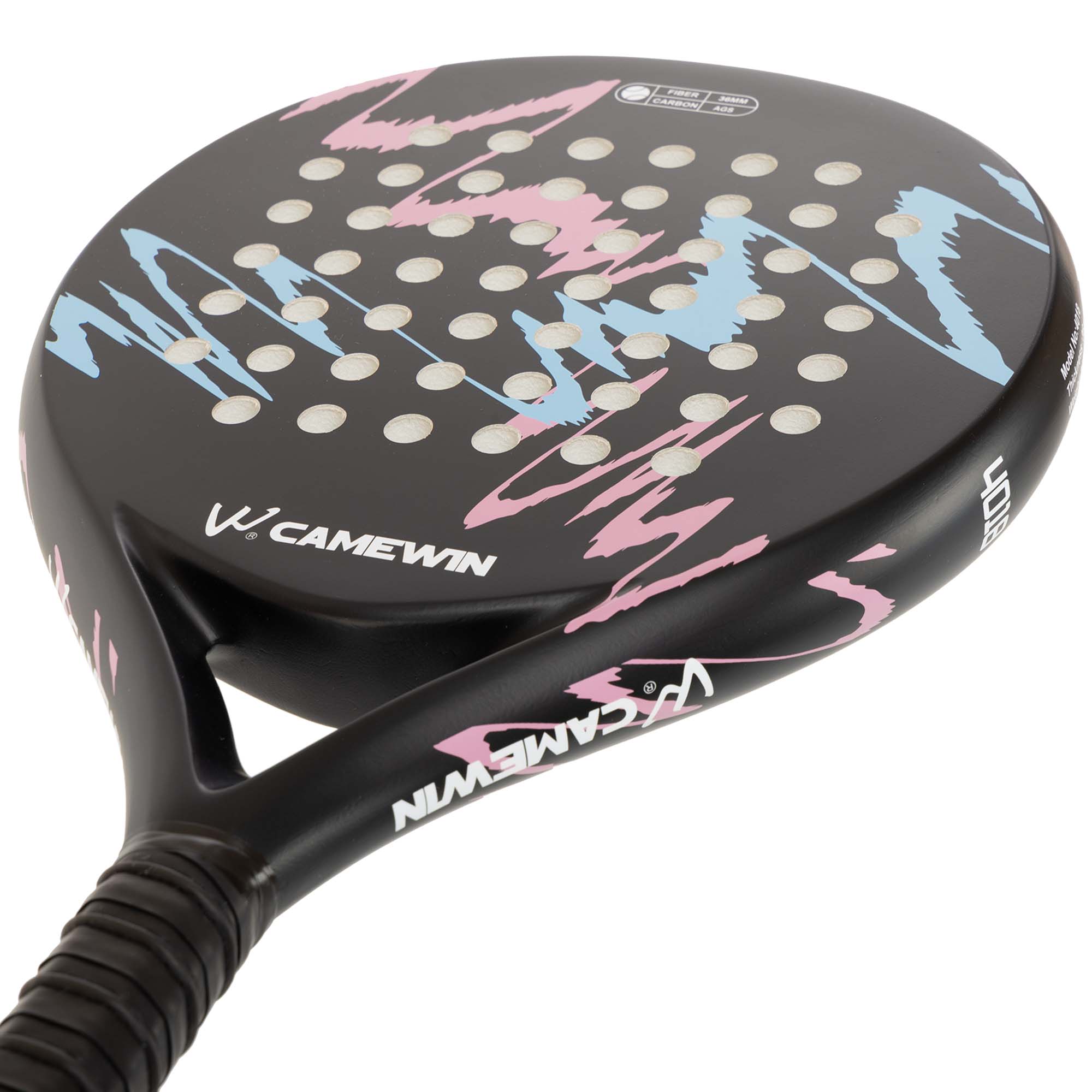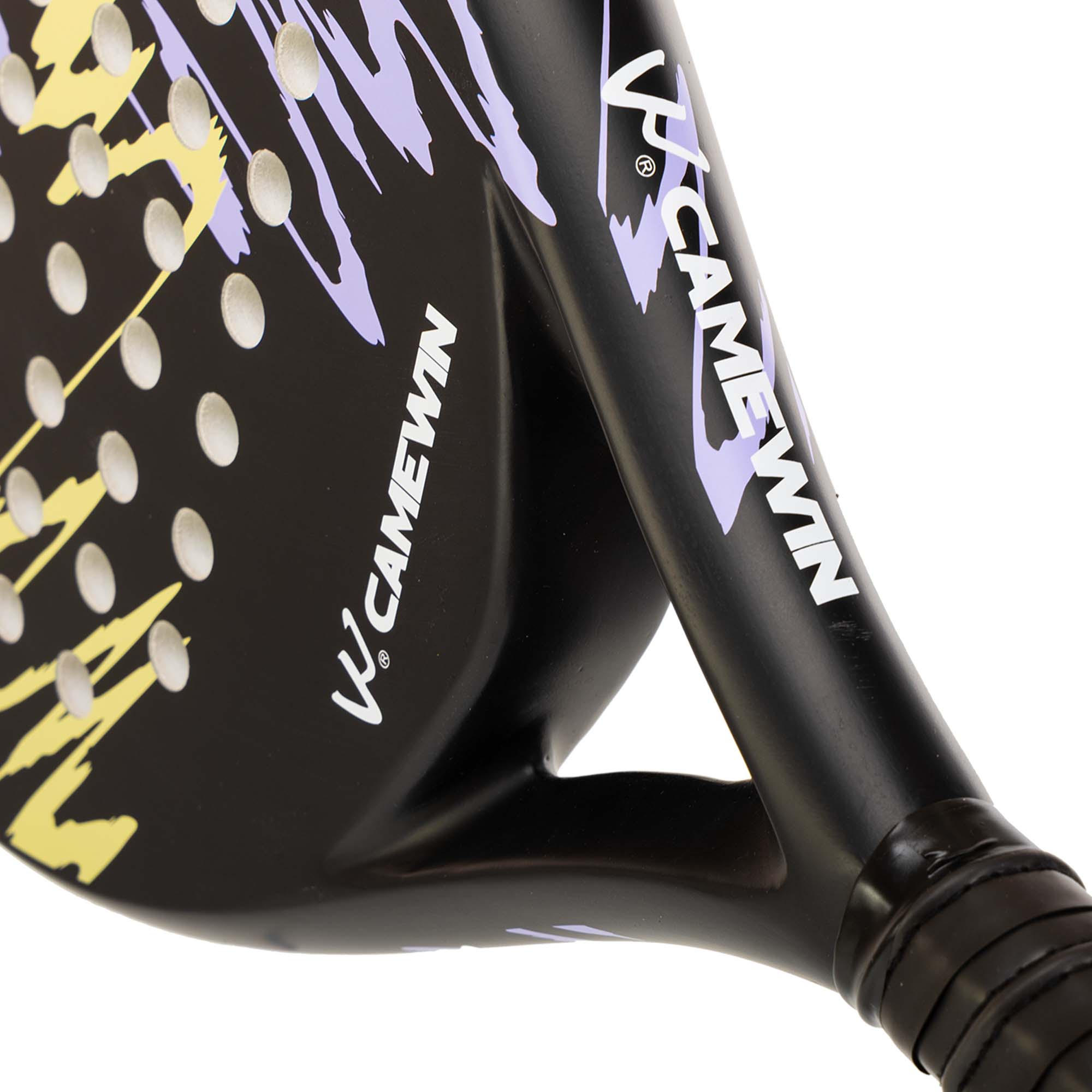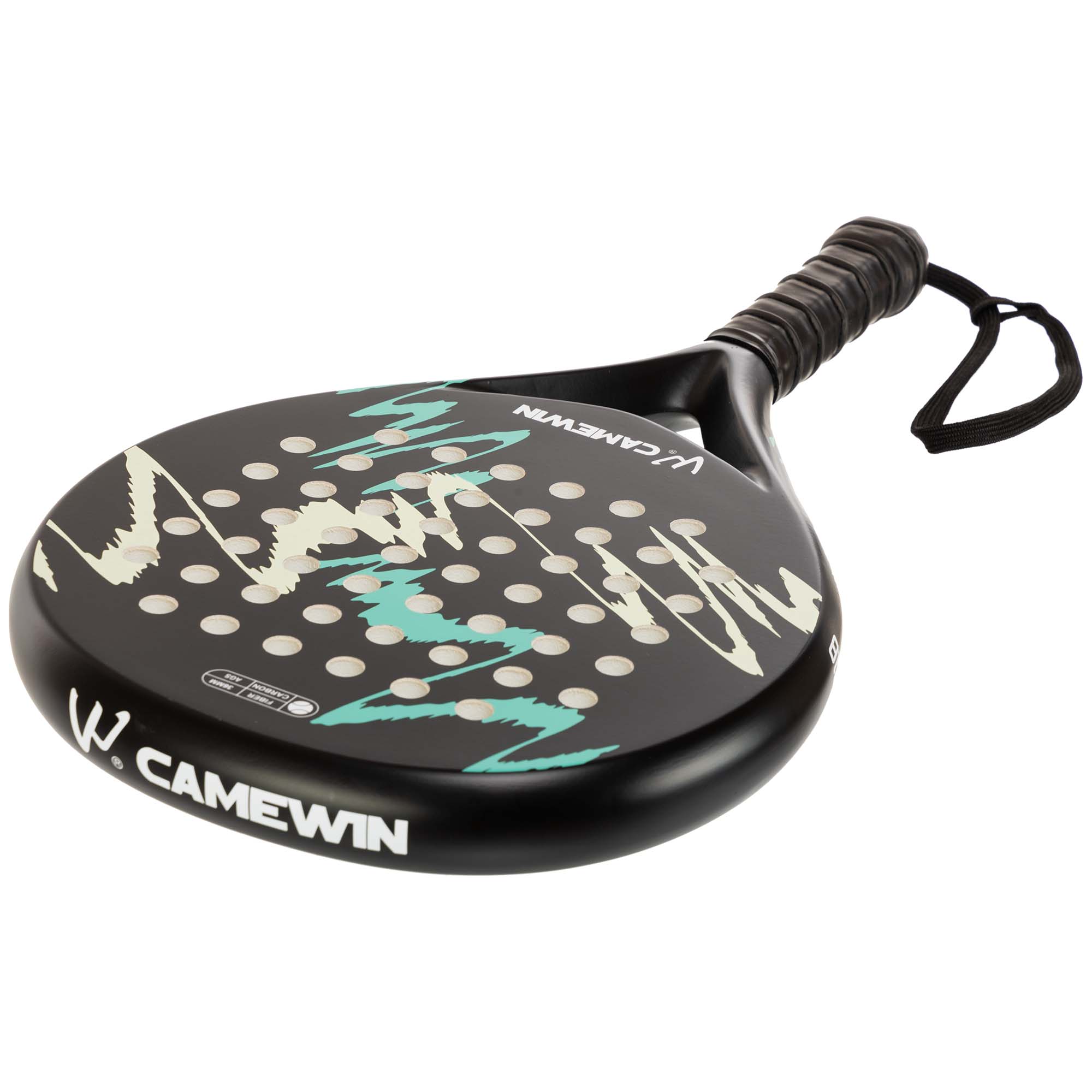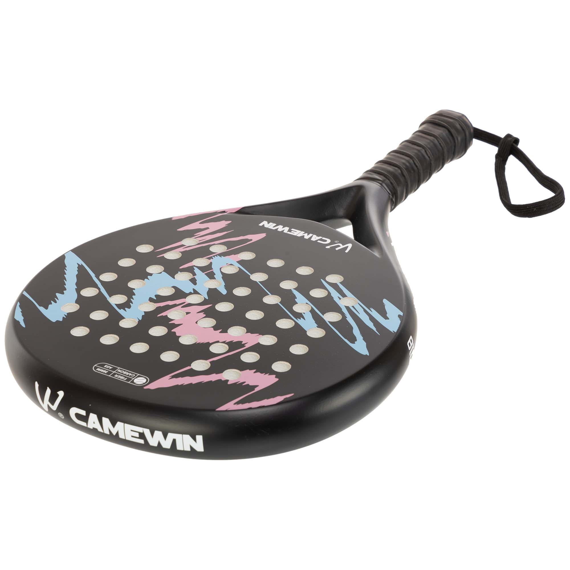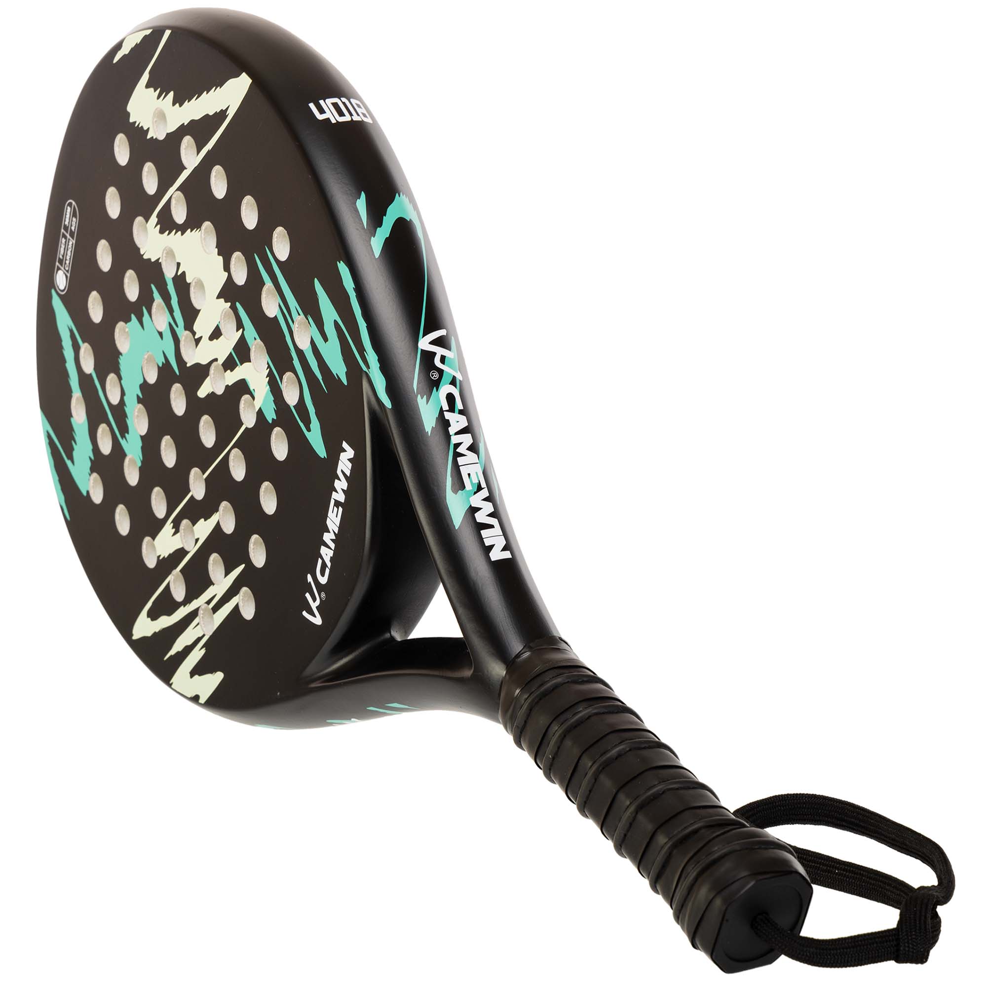 Padel CAMEWIN BT-6525 - це ракетка для падел-тенісу, яка укомплектована спеціальним чохлом для зберігання і транспортування. Рама ракетки виконана з карбону і скловолокна в рівних частках. Таке поєднання матеріалів гарантує оптимальну гнучкість і міцність спортивного снаряда. Ракетка має краплеподібну форму голови, що дозволяє використовувати її для різних стилів гри. В якості матеріалу виготовлення серцевини використовується EVA. Серцевина має середню жорсткість, амортизує удари і покращує контроль. Ракетка має невелику вагу, яка становить 360 г. Мінімальна вага ракетки, а також спеціальна технологія зниження вібрацій за рахунок якісного сердечника дозволяють істотно зменшити навантаження на руку спортсмена. Ручка має неслизьке покриття, яке дозволяє надійно і зручно утримувати ракетку.