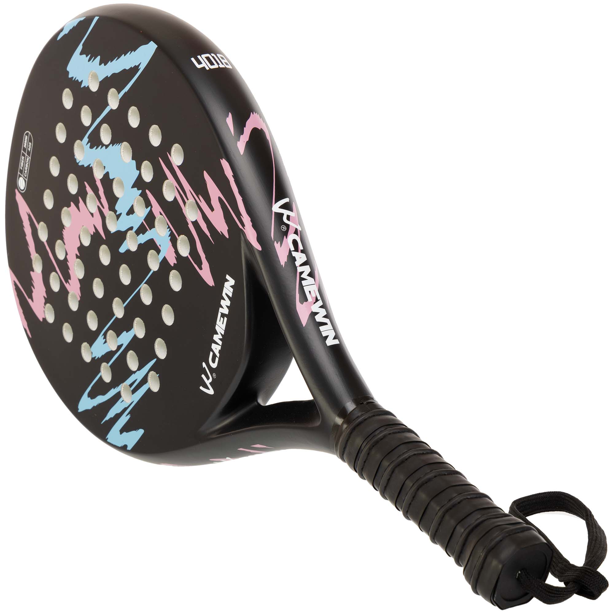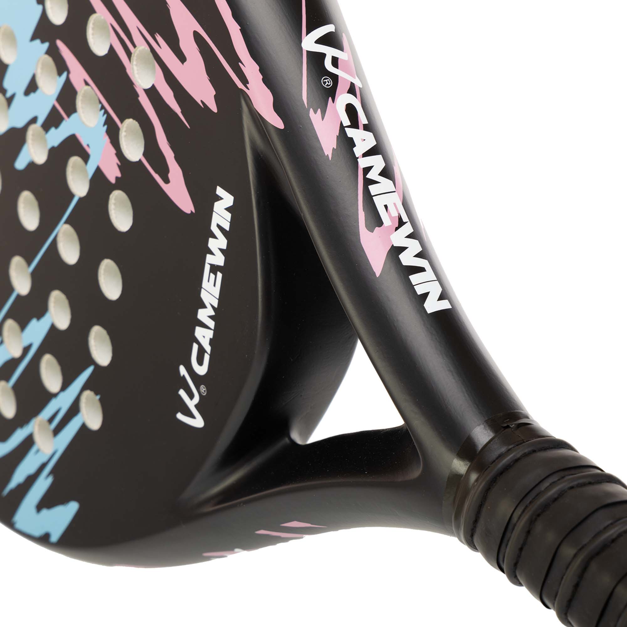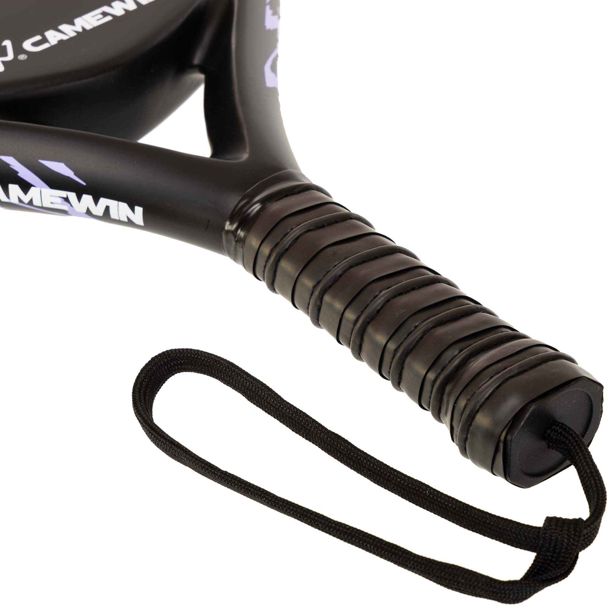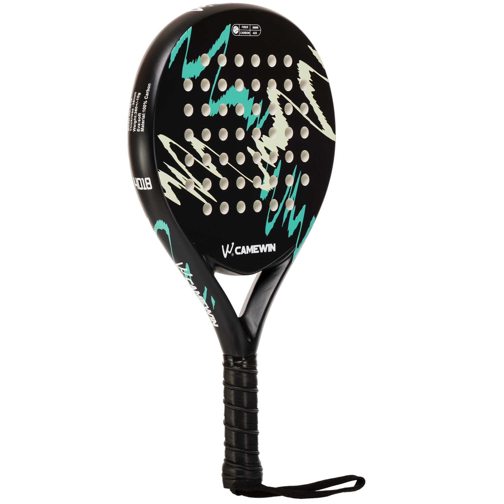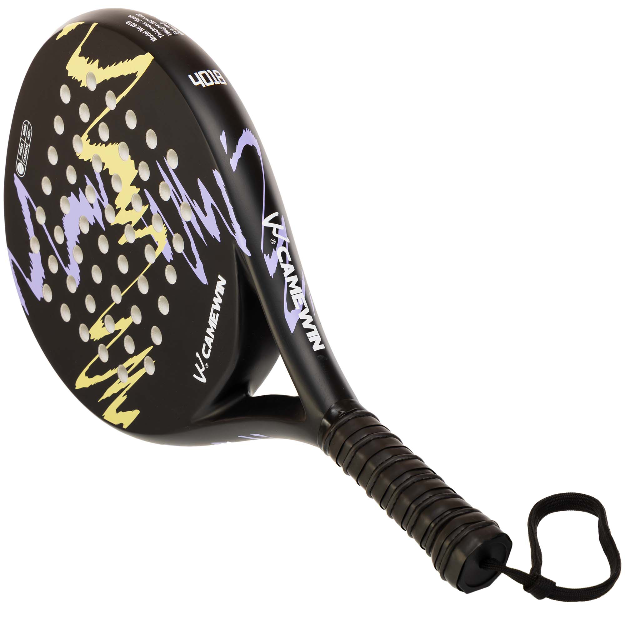 Padel CAMEWIN BT-6525 - це ракетка для падел-тенісу, яка укомплектована спеціальним чохлом для зберігання і транспортування. Рама ракетки виконана з карбону і скловолокна в рівних частках. Таке поєднання матеріалів гарантує оптимальну гнучкість і міцність спортивного снаряда. Ракетка має краплеподібну форму голови, що дозволяє використовувати її для різних стилів гри. В якості матеріалу виготовлення серцевини використовується EVA. Серцевина має середню жорсткість, амортизує удари і покращує контроль. Ракетка має невелику вагу, яка становить 360 г. Мінімальна вага ракетки, а також спеціальна технологія зниження вібрацій за рахунок якісного сердечника дозволяють істотно зменшити навантаження на руку спортсмена. Ручка має неслизьке покриття, яке дозволяє надійно і зручно утримувати ракетку.