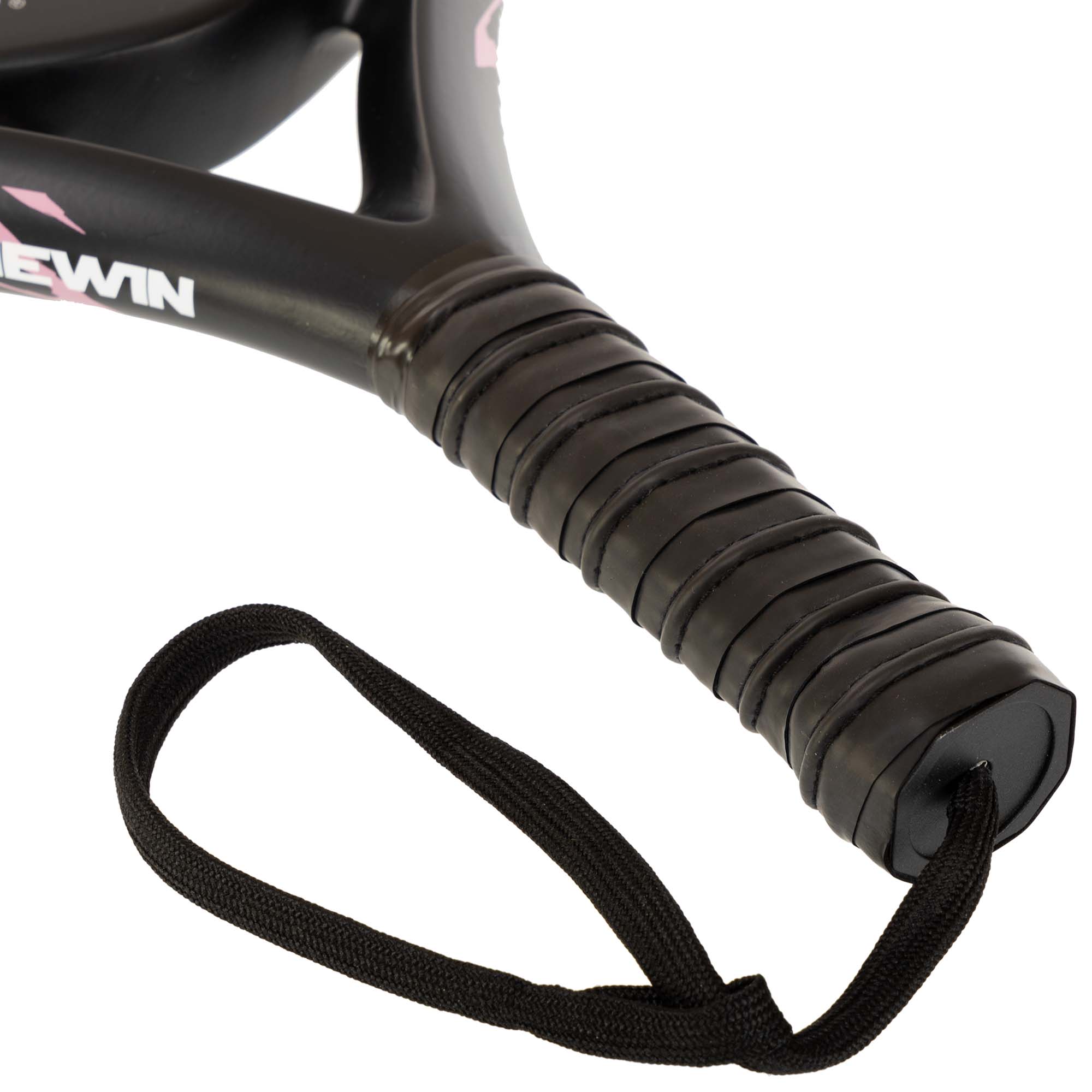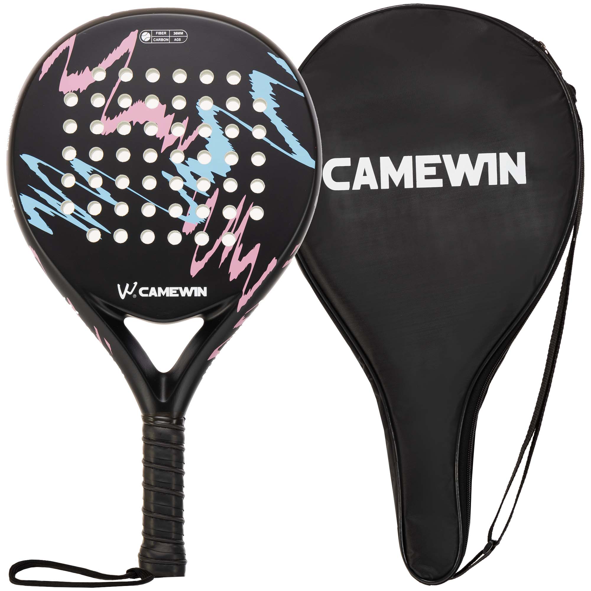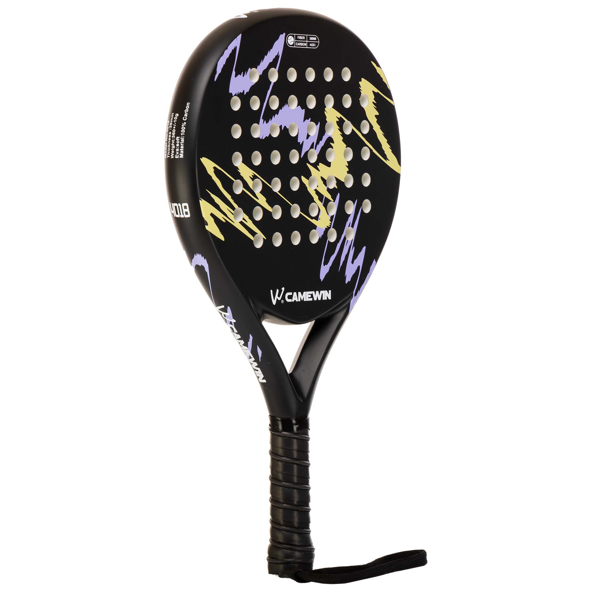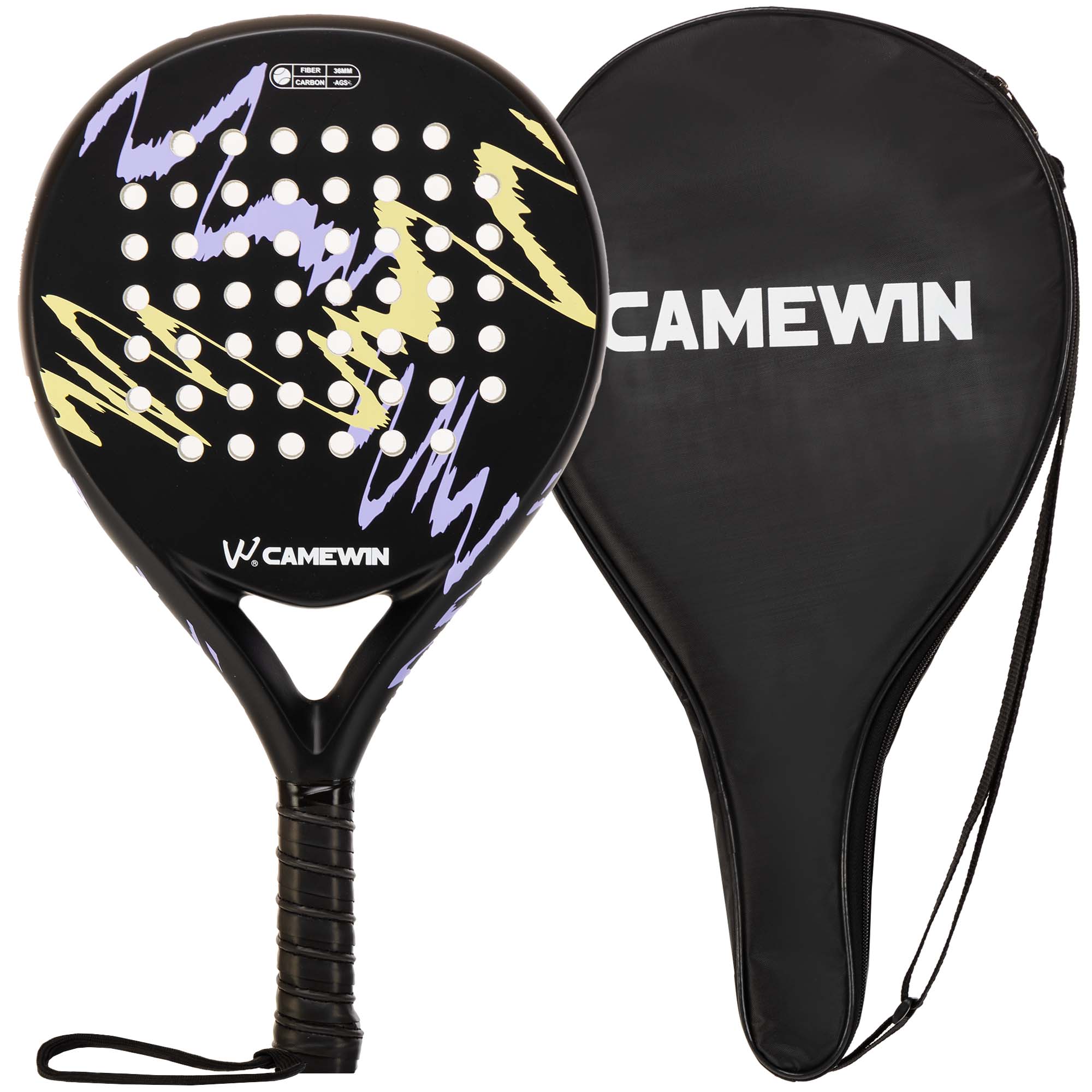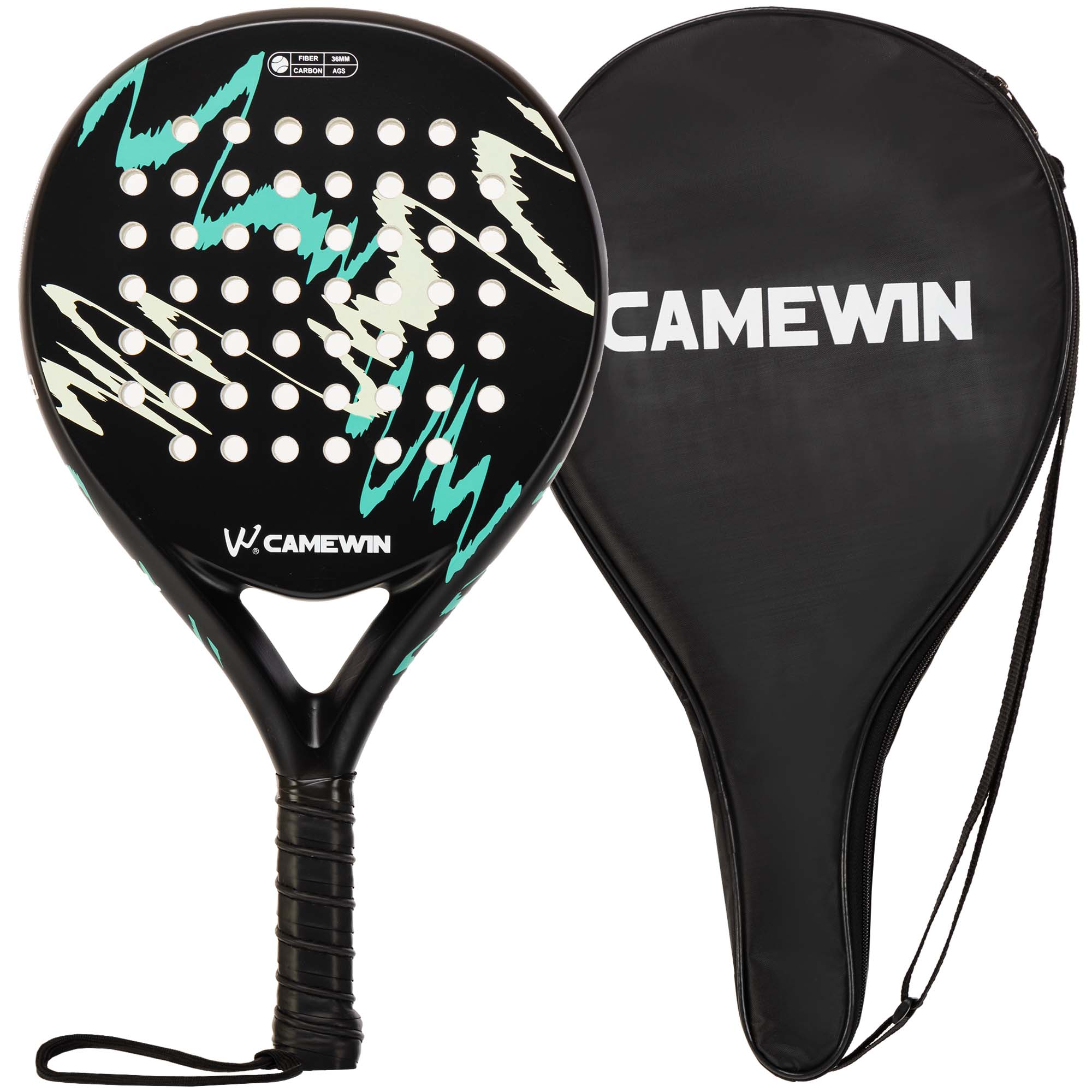 Padel CAMEWIN BT-6525 - це ракетка для падел-тенісу, яка укомплектована спеціальним чохлом для зберігання і транспортування. Рама ракетки виконана з карбону і скловолокна в рівних частках. Таке поєднання матеріалів гарантує оптимальну гнучкість і міцність спортивного снаряда. Ракетка має краплеподібну форму голови, що дозволяє використовувати її для різних стилів гри. В якості матеріалу виготовлення серцевини використовується EVA. Серцевина має середню жорсткість, амортизує удари і покращує контроль. Ракетка має невелику вагу, яка становить 360 г. Мінімальна вага ракетки, а також спеціальна технологія зниження вібрацій за рахунок якісного сердечника дозволяють істотно зменшити навантаження на руку спортсмена. Ручка має неслизьке покриття, яке дозволяє надійно і зручно утримувати ракетку.