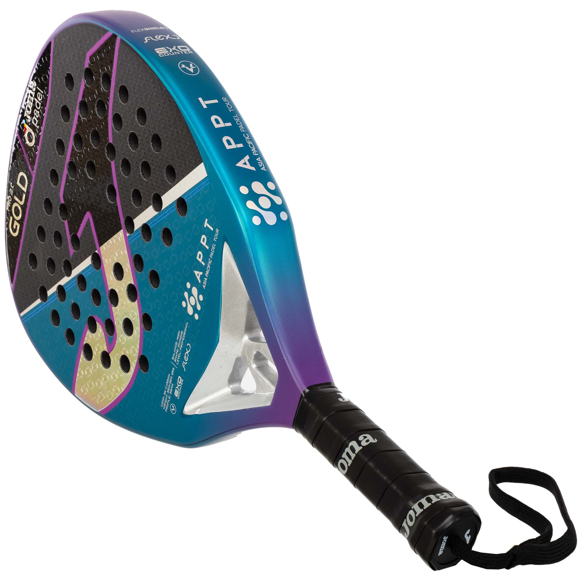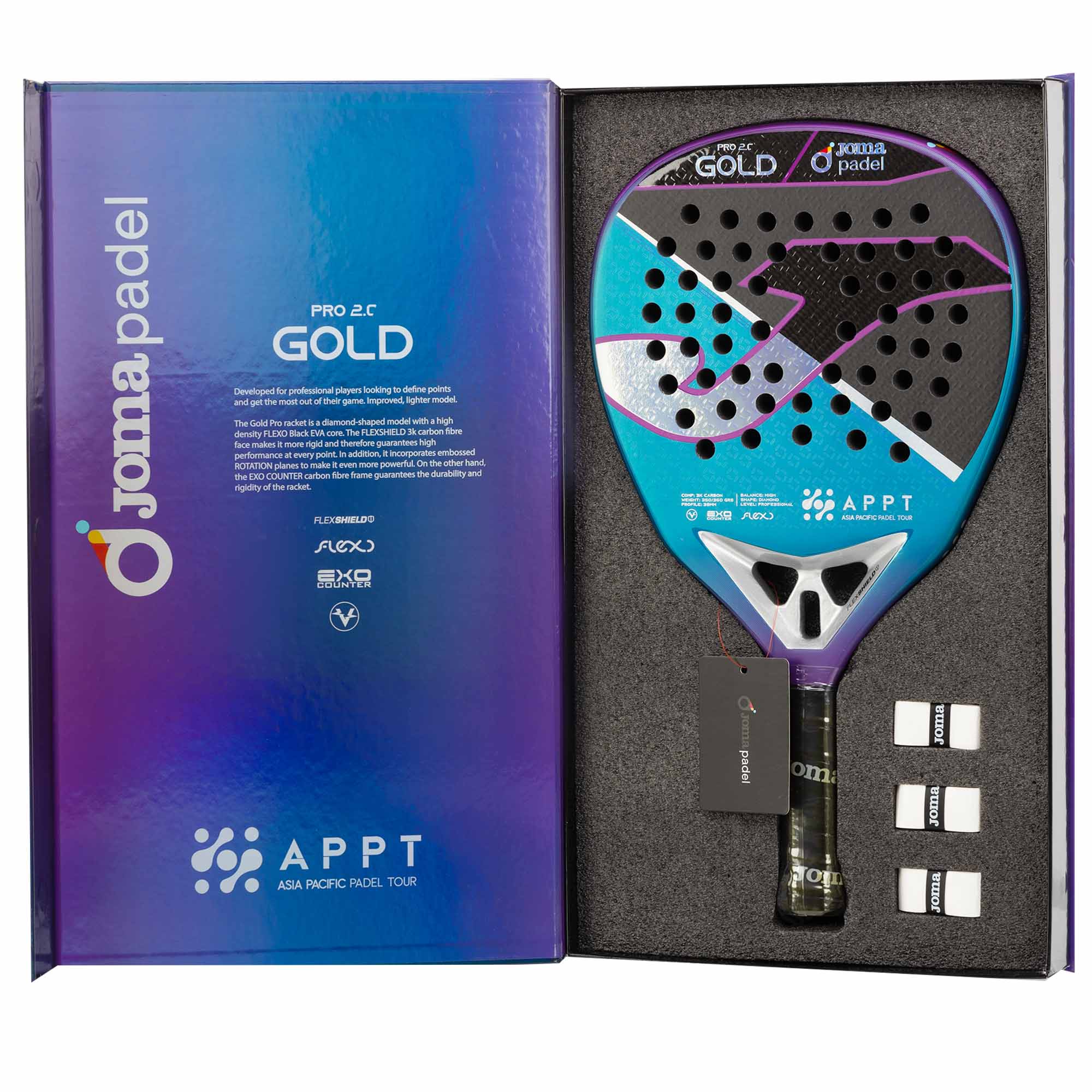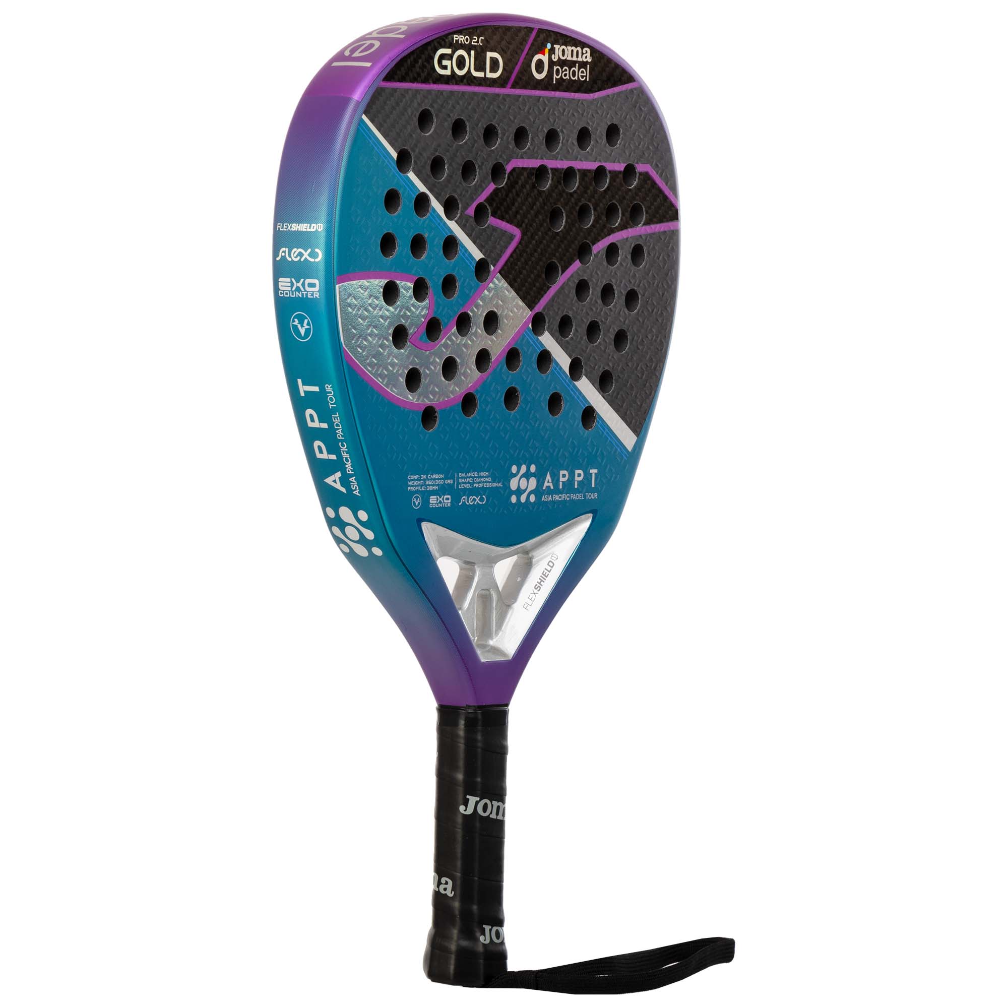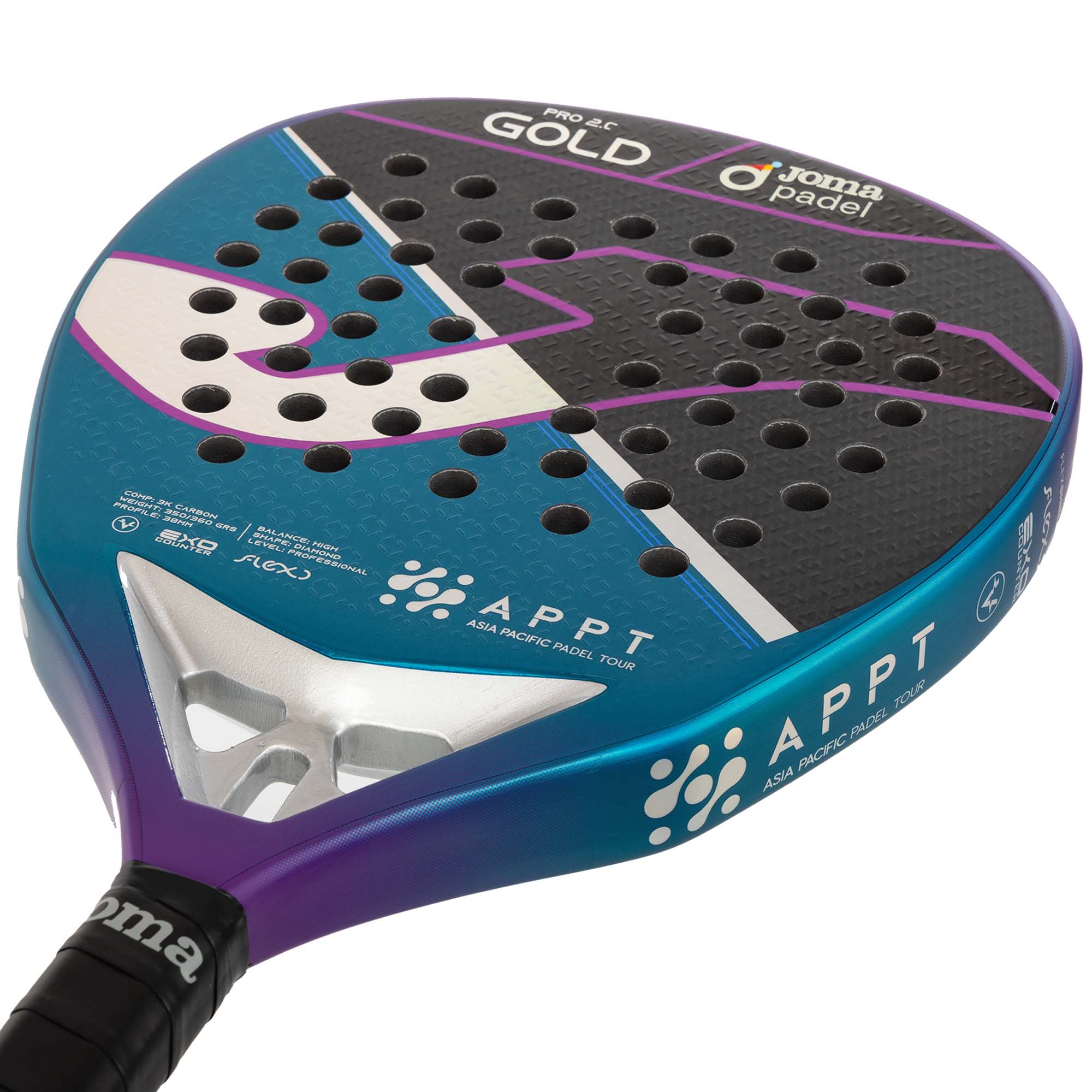 Оригінальна ракетка для падел-тенісу Joma APPT 401793-551 виготовлена з карбону і скловолокна, а також має унікальний сердечник Fexo BlackEVA. Матеріал сердечника має високу щільність. Ці властивості дозволяють йому амортизувати ударне навантаження і при цьому забезпечувати хороший відскок м'яча від ракетки. Ракетка має довжину 46 см і дозволяє діставати складні м'ячі. Вага ракетки становить 355-360 г. Попри невелику вагу, виробник зробив все можливе, щоб гравець міг завдавати потужних ударів. Ромбоподібна форма голови дозволяє генерувати максимальну силу удару і відмінно підходить для атакуючого стилю гри. Поверхня ракетки виготовлена зі скловолокна і 3K карбону. Вони забезпечують достатню міцність і жорсткість.