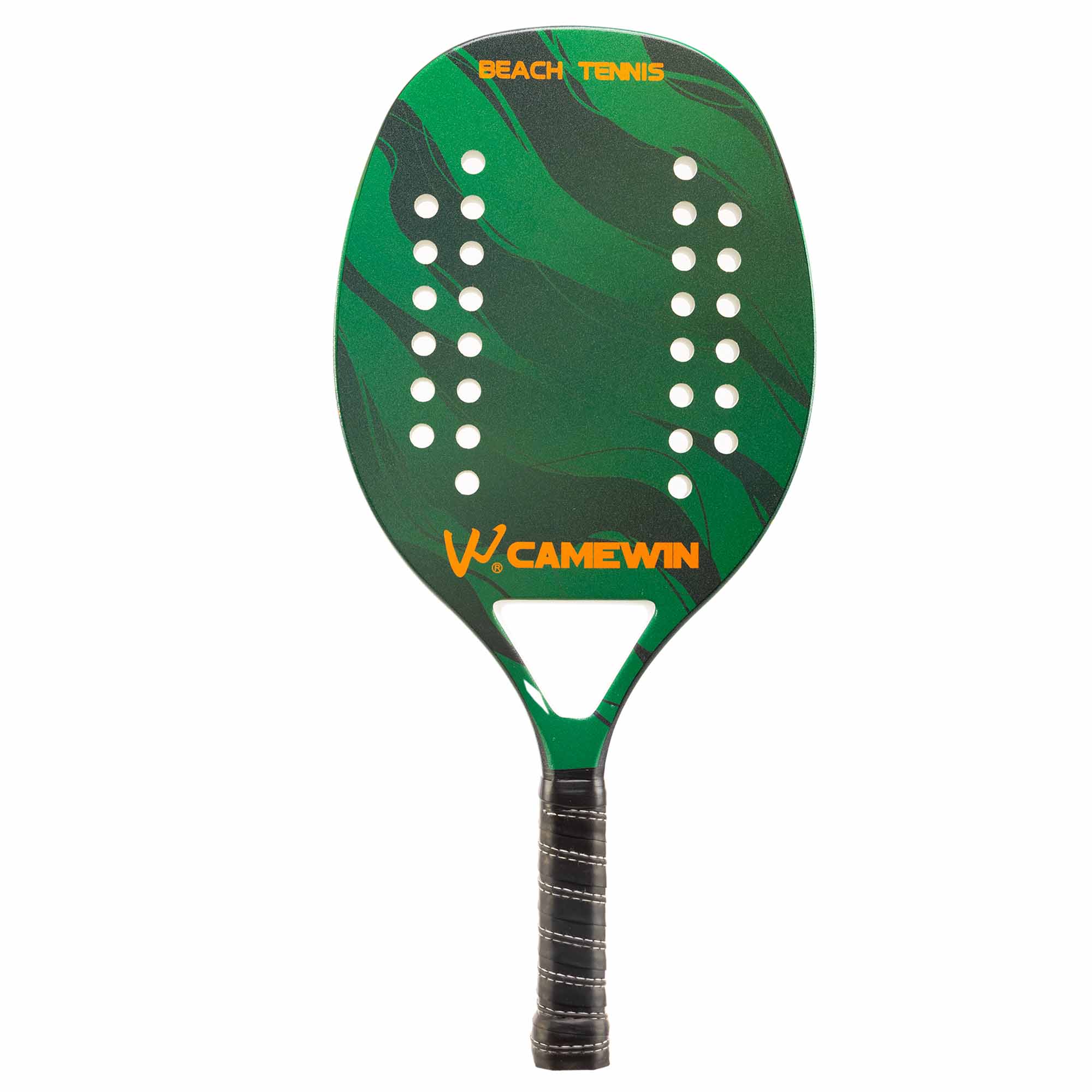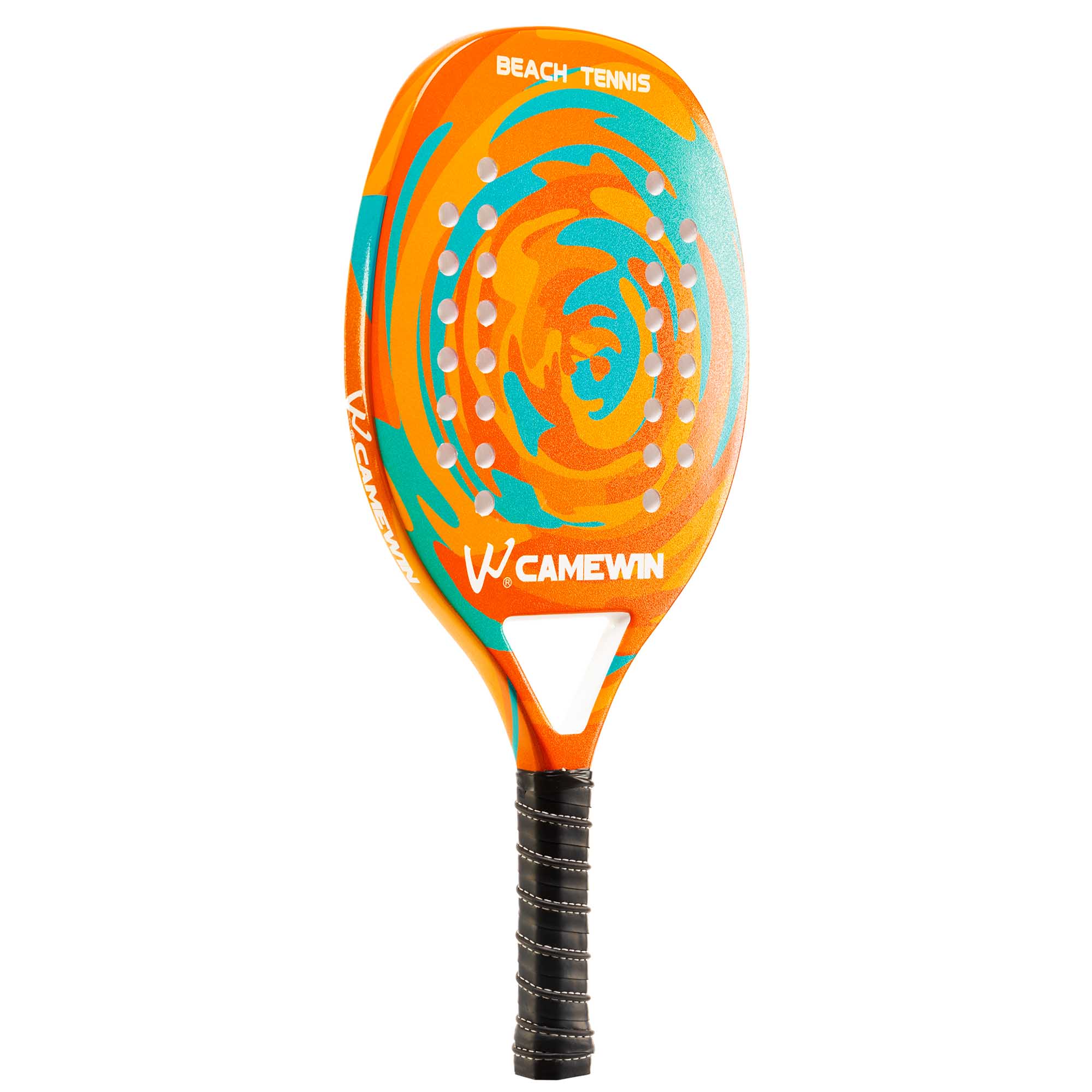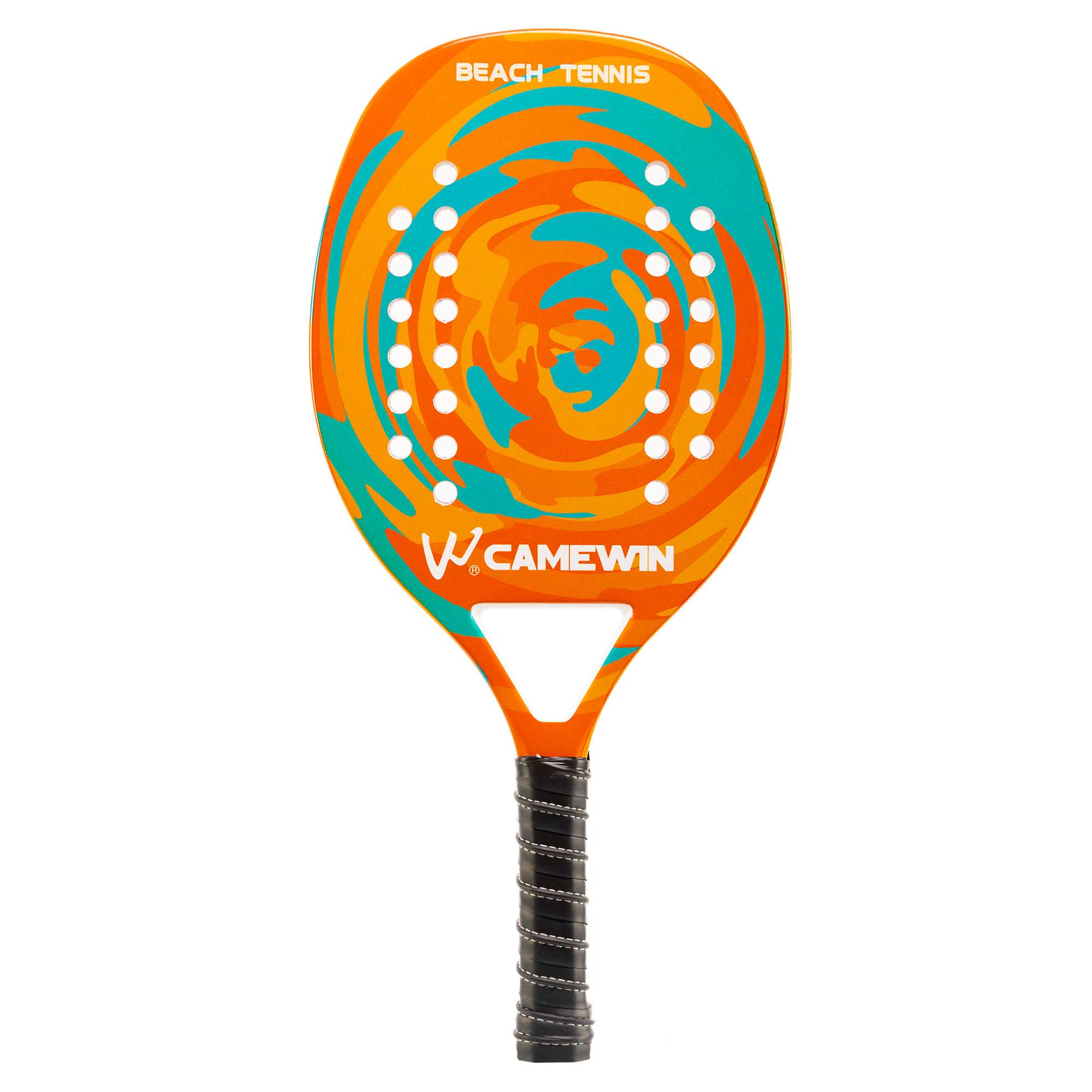 Професійна ракетка для пляжного тенісу CAMEWIN PT-6027 виготовлена з карбону і скловолокна і має м'який сердечник, який забезпечує амортизацію ударного навантаження при зіткненні ракетки з м'ячем. У даній моделі ракетки використовується система Hole Pattern System. Система гарантує поліпшення аеродинаміки за рахунок 28 отворів в ракетці. Щоб спортсмен краще контролював обертання м'яча, виробник зробив покриття ракетки злегка шорстким. Ракетка універсальна, підходить для тих, хто віддає перевагу атакуючій грі, і тих, хто грає від оборони. Навіть при мінімальному замаху відскок м'яча виходить потужним за рахунок використання карбону в конструкції ракетки. Намотка на ручці вбирає вологу і перешкоджає прослизанню руки.