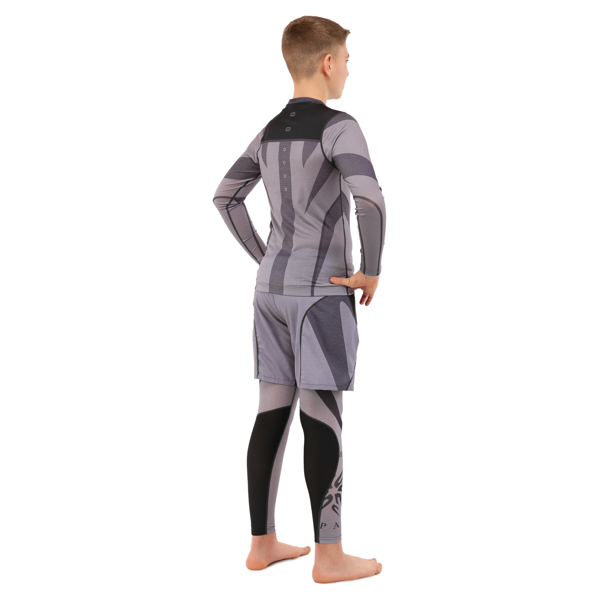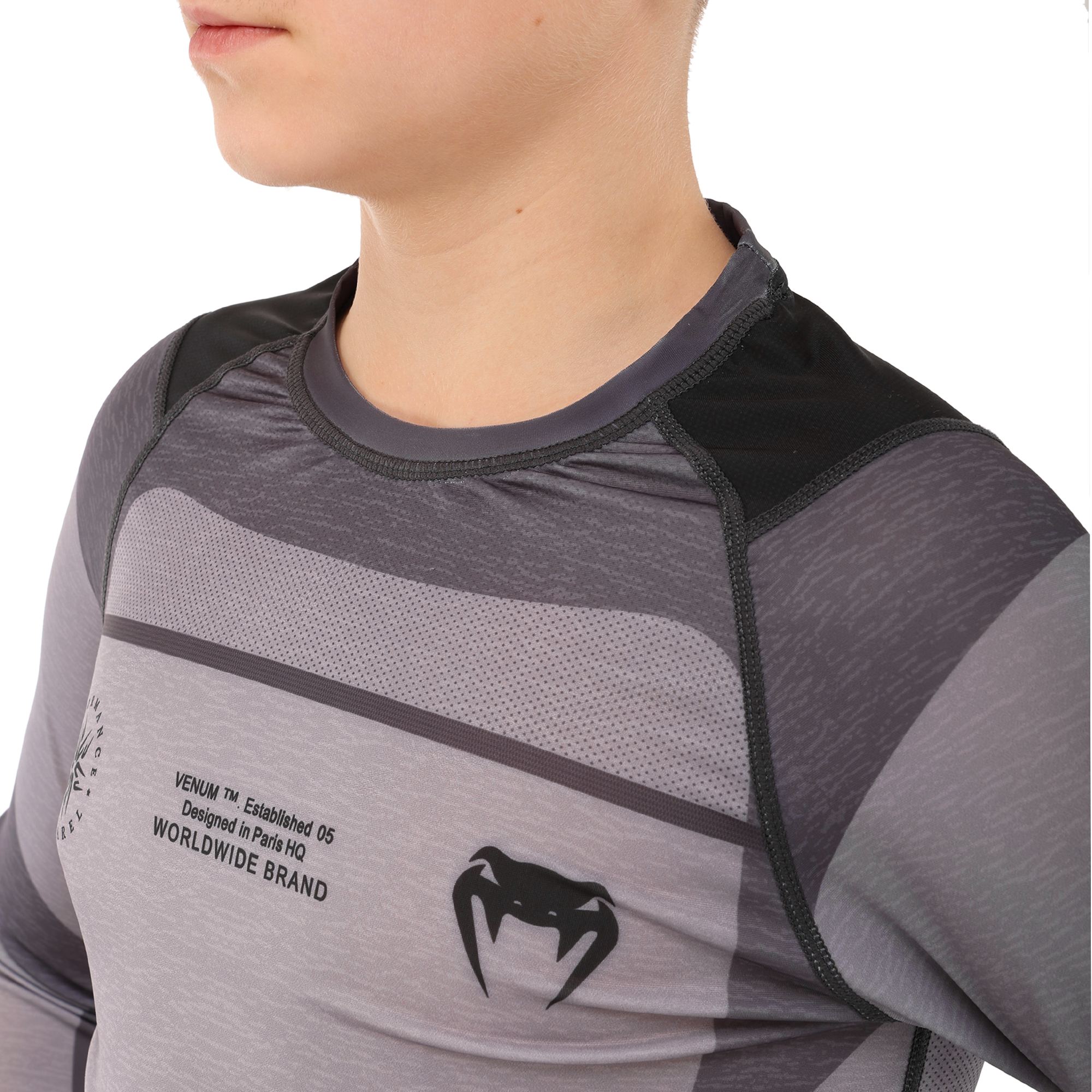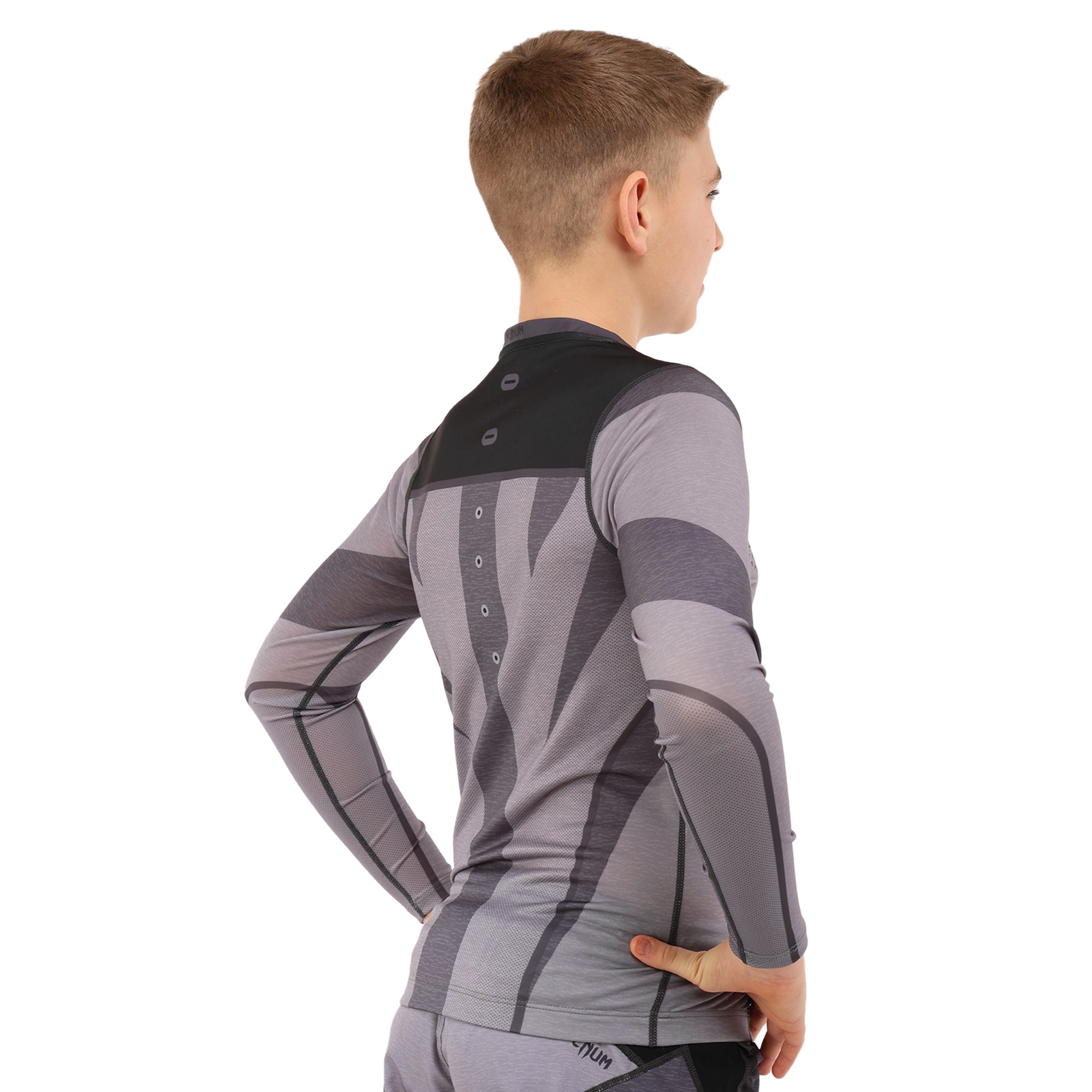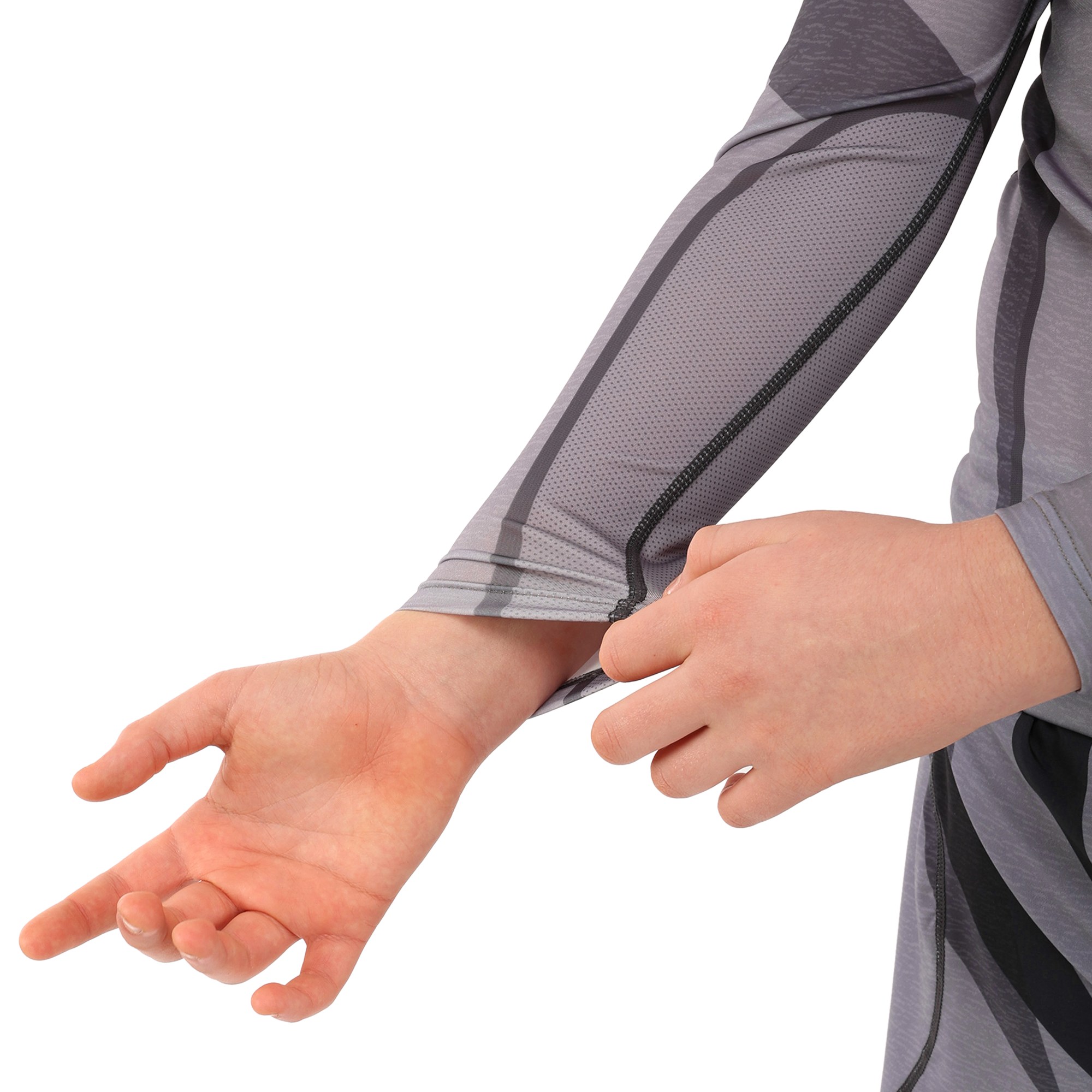 Рашгард з довгим рукавом призначений для хлопчиків. Тканина еластична і добре тягнеться, легко адаптується до обрисів тіла спортсмена. Використання лонгслів дозволяє підтримувати оптимальну температуру тіла протягом усього тренування. Під час занять єдиноборствами такий виріб захищає шкіру від контакту з татамі. Компресійний одяг надає м'язам підтримку, зменшує больові відчуття після тренування.