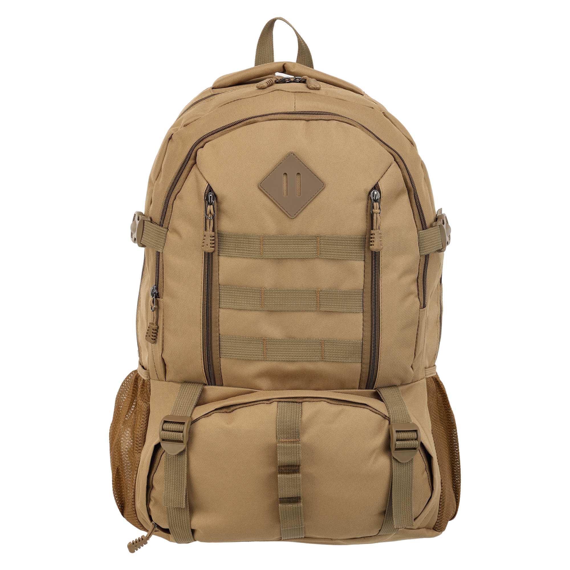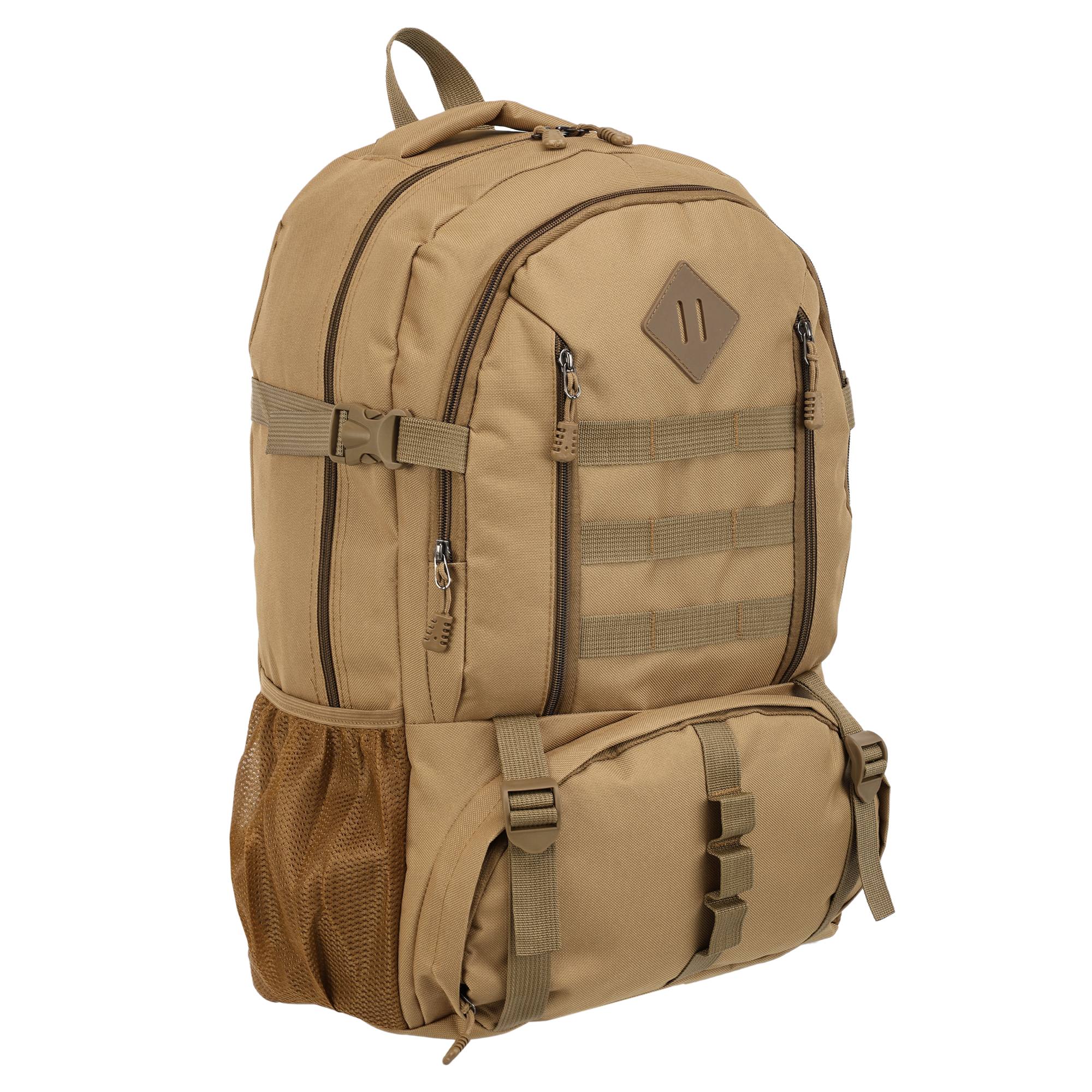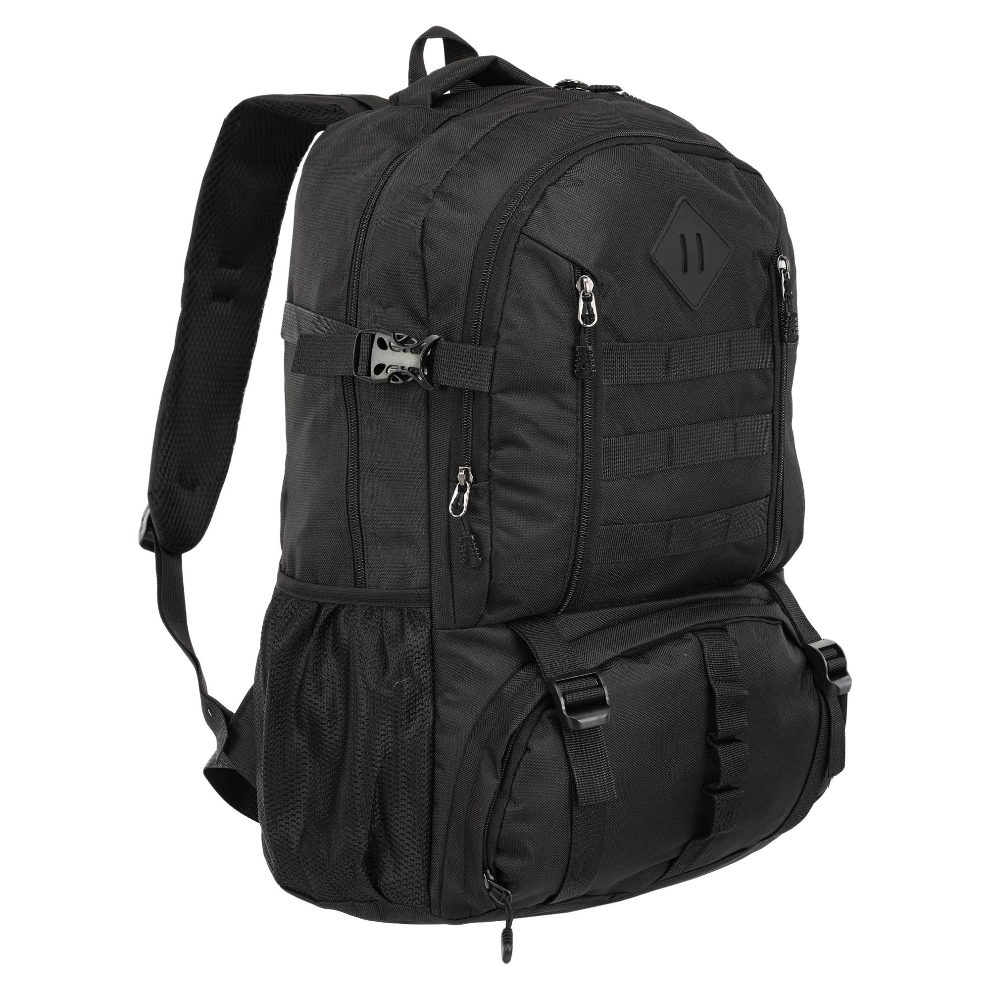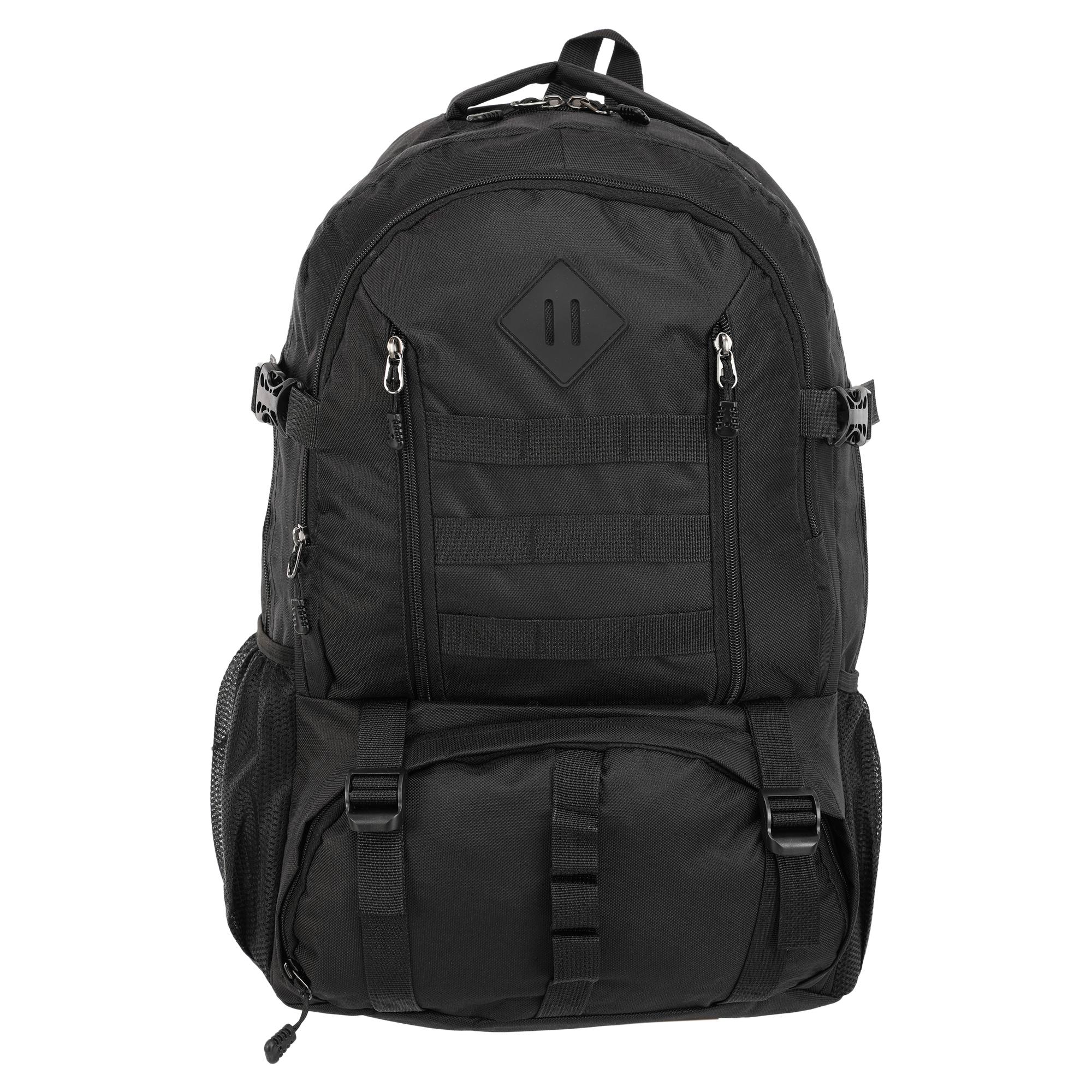 - два основні, місткі відсіки доповнюється практичними деталями у вигляді бічних сітчастих кишень та фронтальних кишень на блискавці