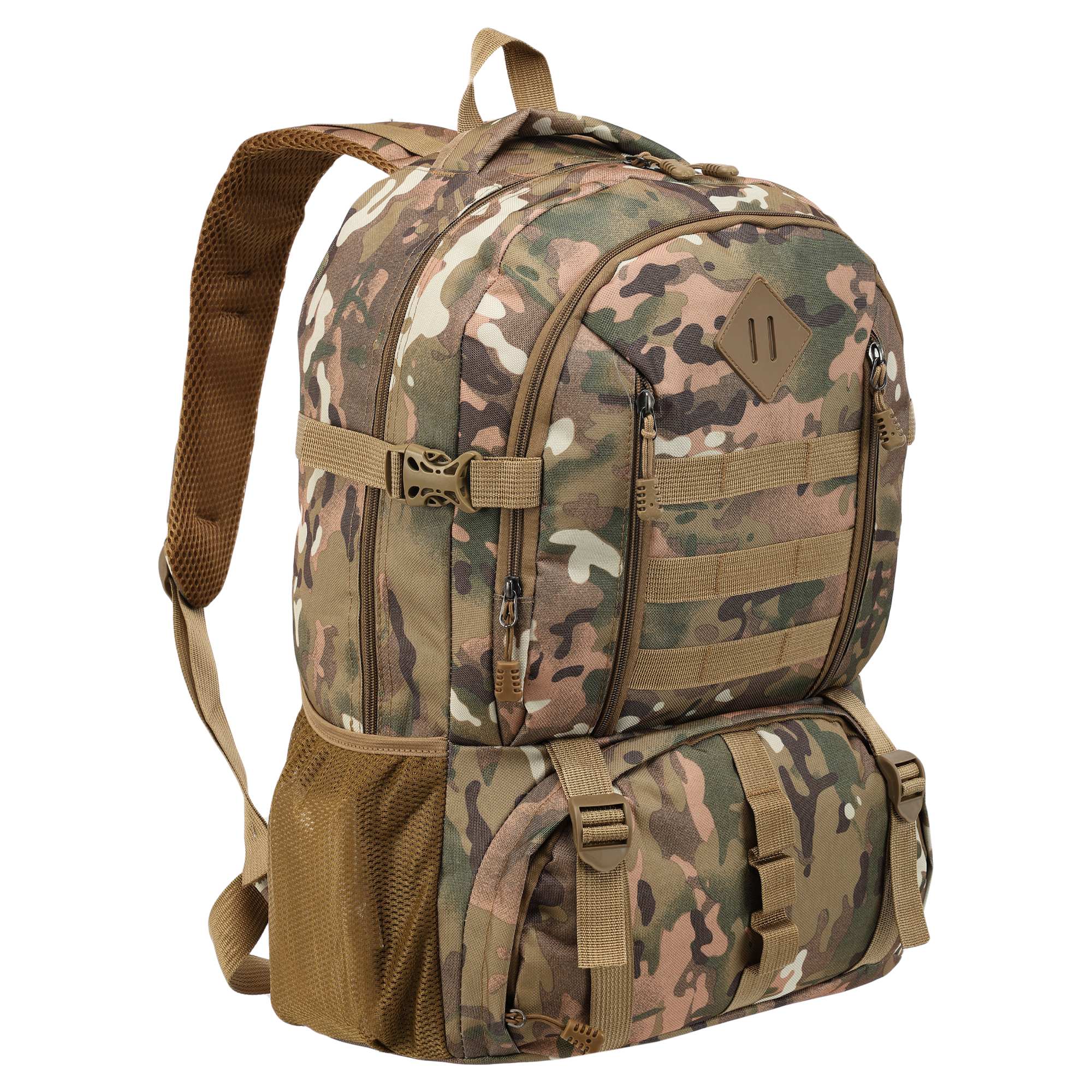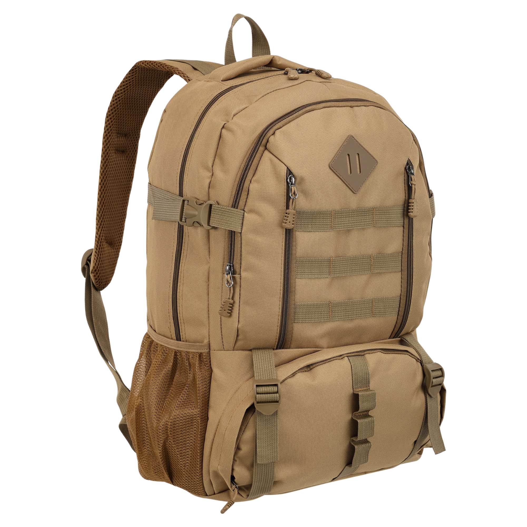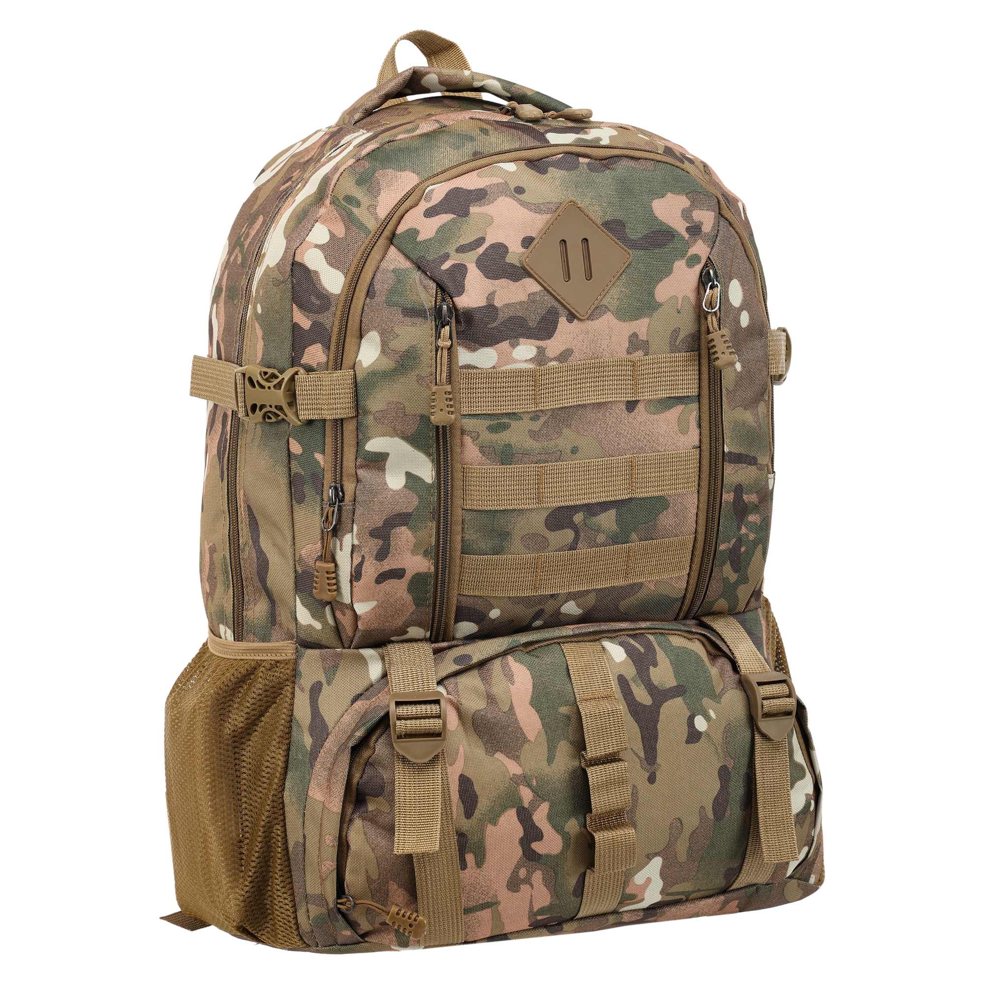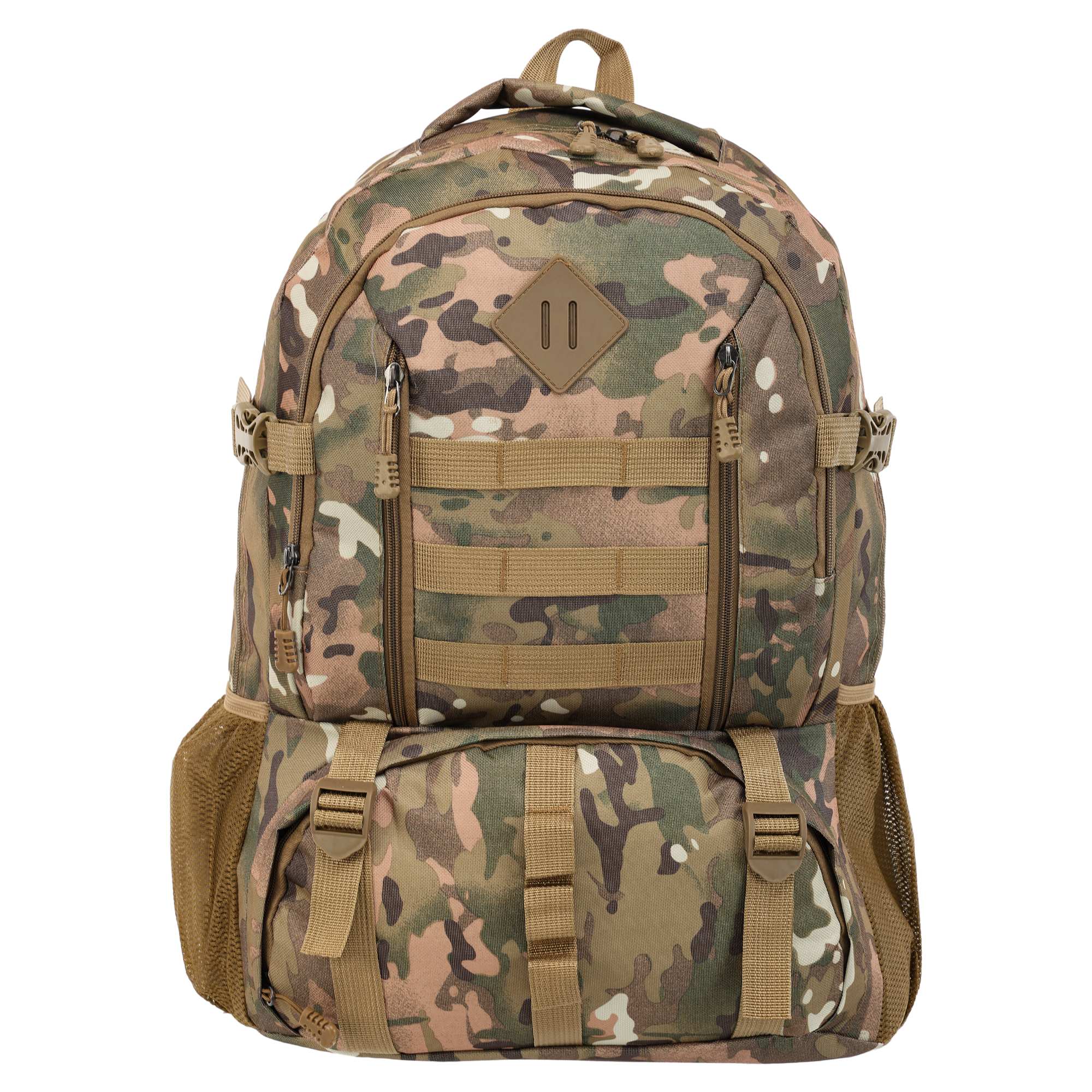 - два основні, місткі відсіки доповнюється практичними деталями у вигляді бічних сітчастих кишень та фронтальних кишень на блискавці