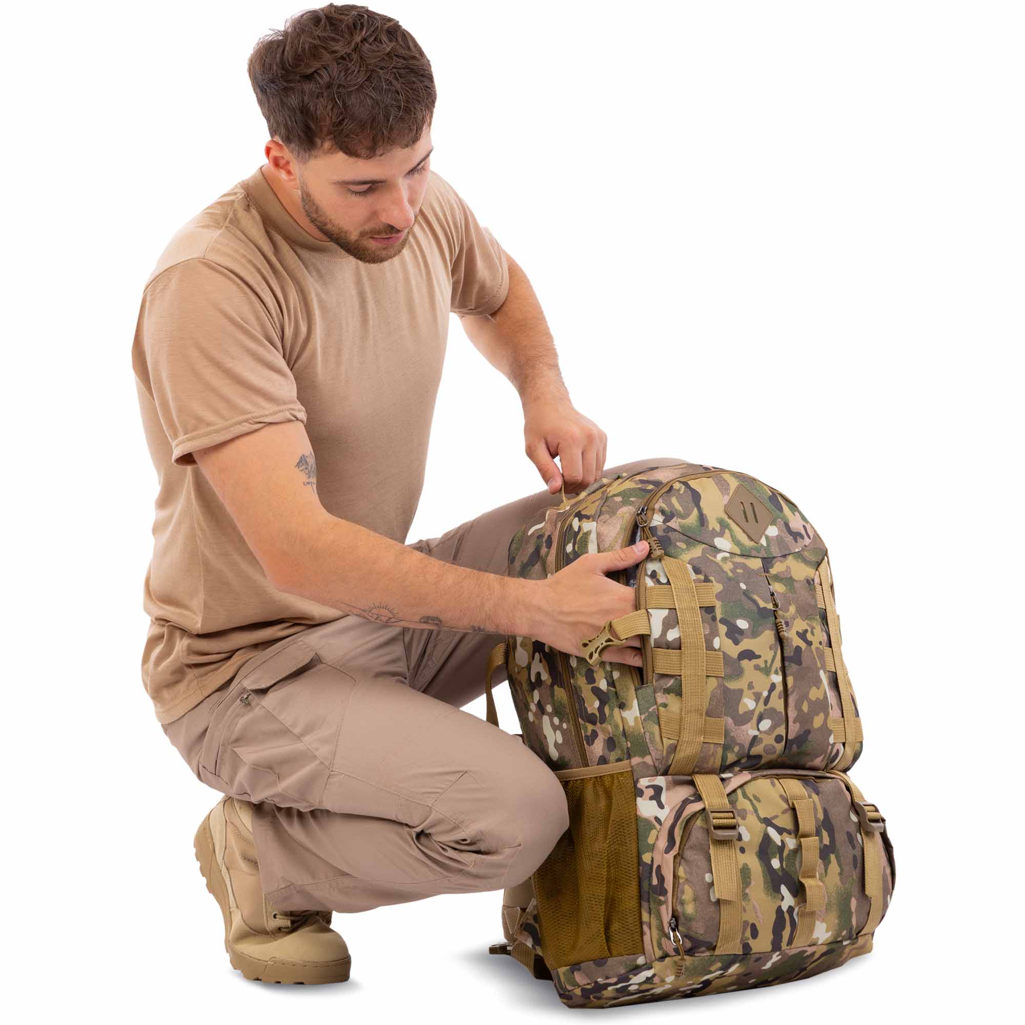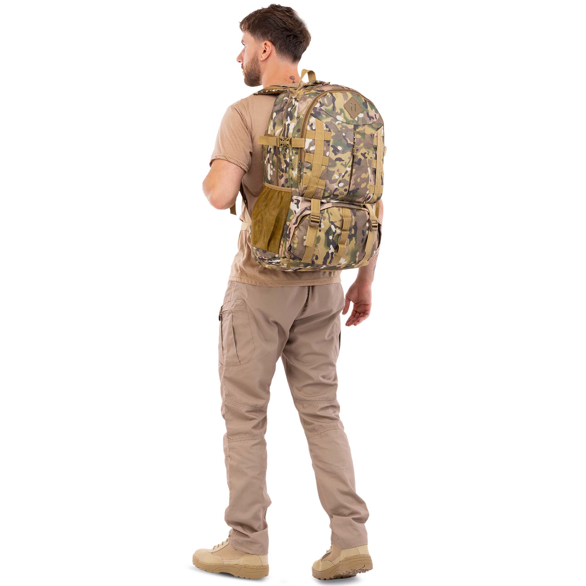 Поліестер і нейлон, з яких виготовлений рюкзак, мають всі необхідні властивості, необхідні в поході. Тканина не промокає навіть за сильного дощу, уберігаючи вміст від вологи та вогкості. Поліестер відрізняється міцністю та зносостійкістю. Щільність тканини дозволяє багато років регулярно користуватися виробом. Рюкзак витримує температурні перепади, не вигоряє на сонці та легко очищається від забруднень.