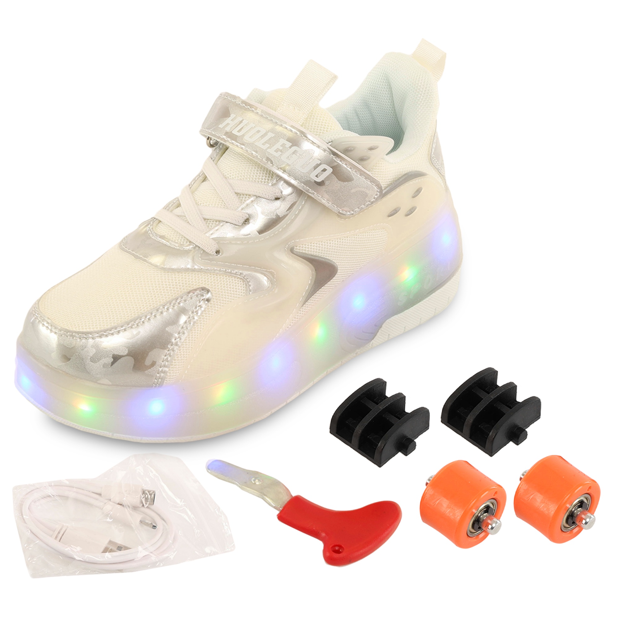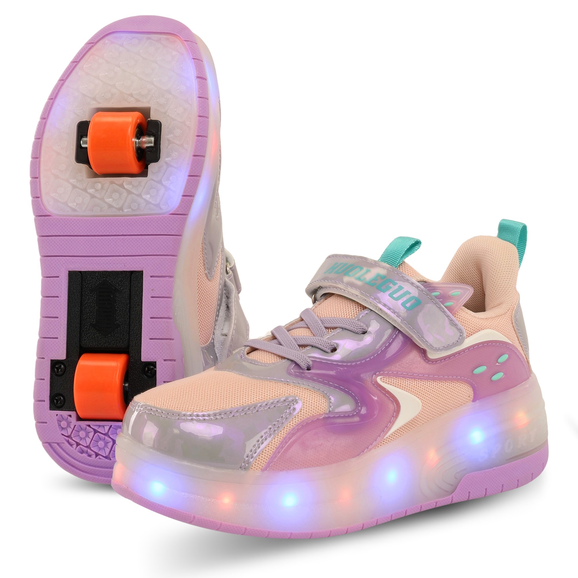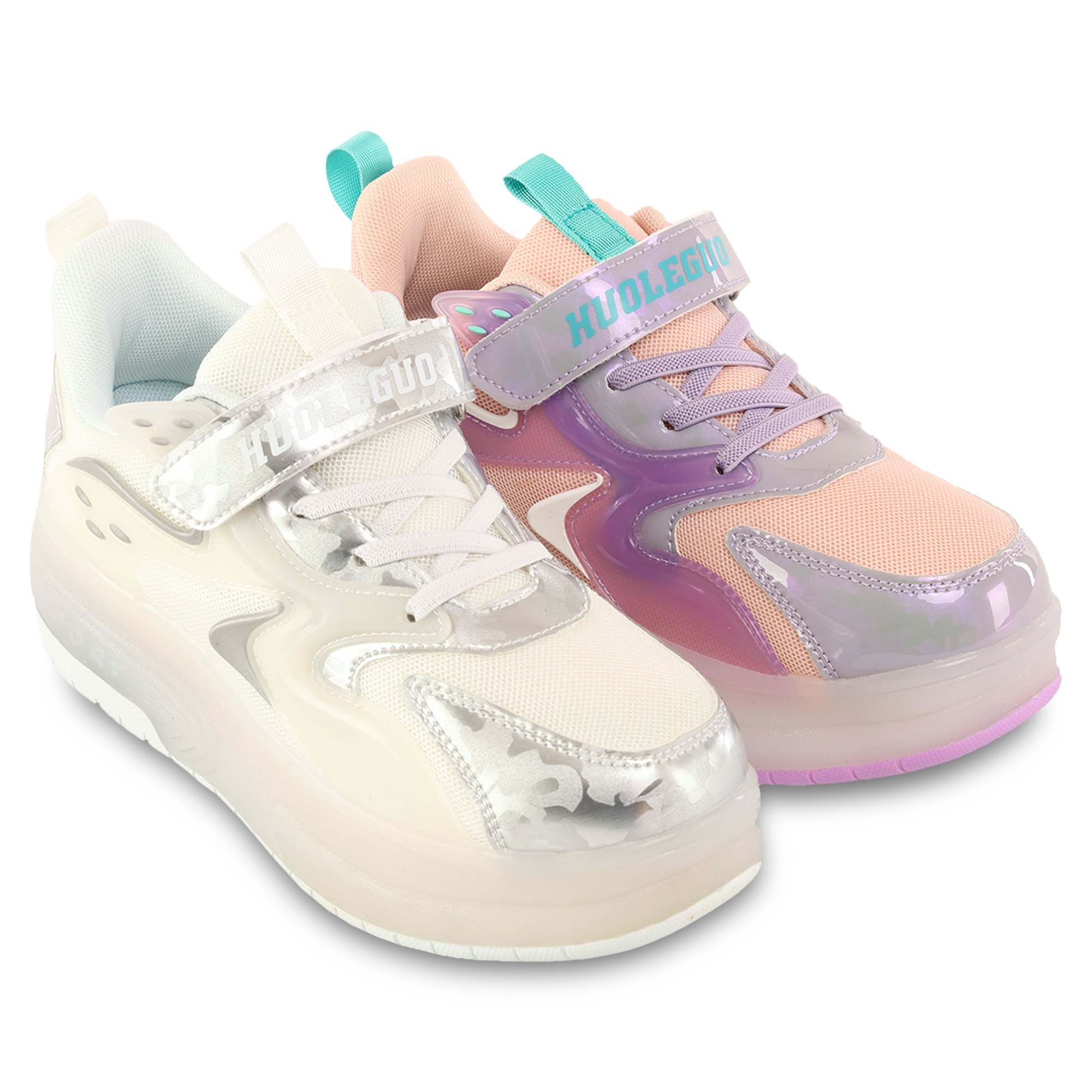 Стильні роликові кросівки Huoleguo OB-6445 стануть чудовим подарунком для будь-якої дитини. Кросівки мають універсальний дизайн, представлені в декількох варіантах кольору і підходять як для хлопчиків, так і для дівчаток. На перший погляд конструкція кросівок нічим не відрізняється від класичного спортивного взуття. Тут також присутні шнурівка і липучка для фіксації на ногах, і вставки з сітки, які сприяють циркуляції повітря і підтримці комфортної температури всередині взуття.