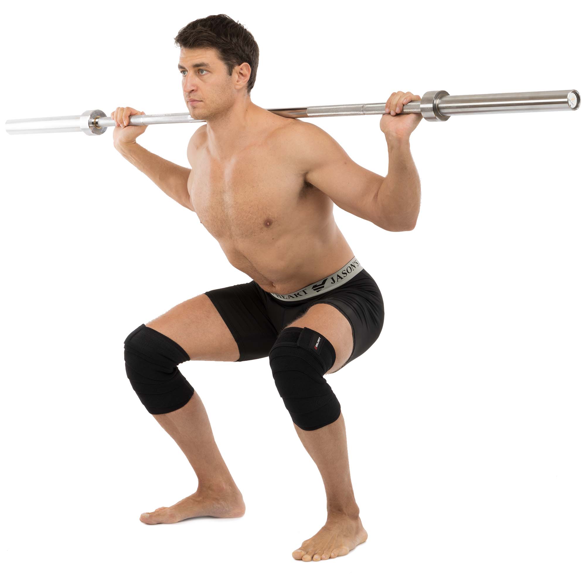 - Способствуют уменьшению риска получения травм и перенапряжений коленных суставов во время тренировок, особенно при выполнении упражнений с большой нагрузкой, таких как приседания.