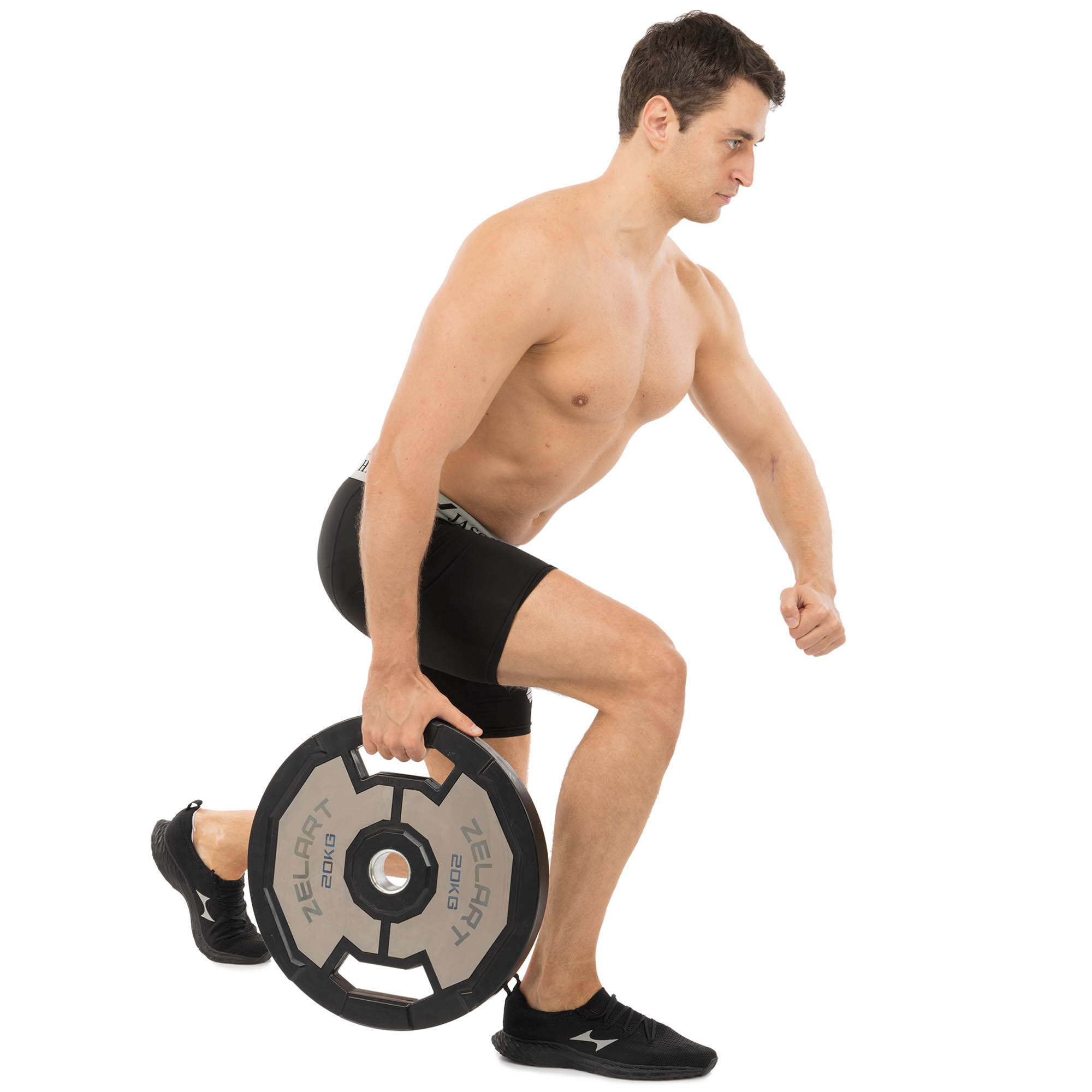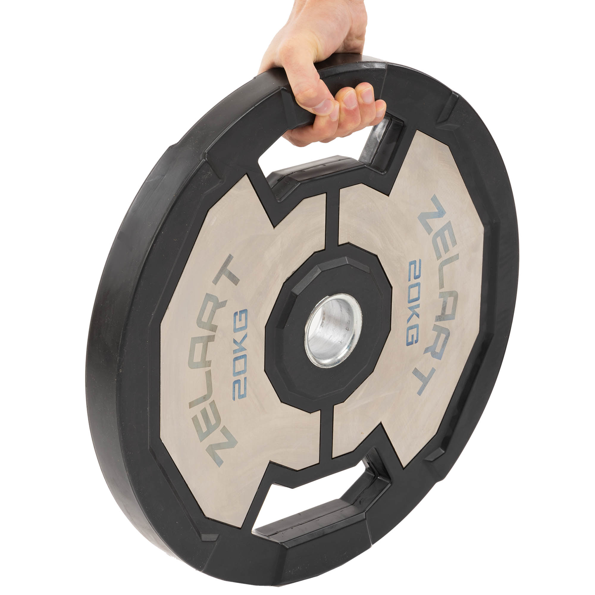 Бамперные диски Zelart имеют чугунную сердцевину и резиновое покрытие, которое обеспечивает защиту металла от коррозии и придаёт дискам презентабельный внешний вид. Инвентарь можно использовать в домашних и коммерческих тренажёрных залах. Пользователь без труда сможет идентифицировать диск по весу благодаря наличию соответствующей маркировки на нём. На каждом диске вес указывается в килограммах. В конструкции дисков предусмотрены ручки, за которые их можно удобно переносить по залу. Каждый диск имеет точный вес и внутренний диаметр 51 мм. Он совместим с олимпийским грифом.