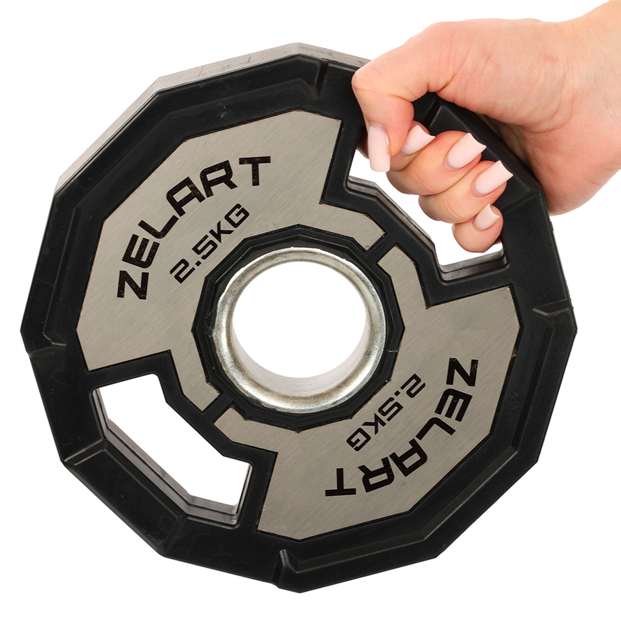 Чтобы отрегулировать вес на штанге и нагрузку на мышцы во время выполнения очередного упражнения, стоит использовать качественные диски. Диски от бренда Zelart имеют очень точный вес и удобную форму, которая позволяет легко переносить их по залу, устанавливать на штангу и снимать с неё. В дисках имеются прорези, которые формируют рукояти для удобного захвата инвентаря. Внутренний диаметр диска составляет 51 мм, что соответствует размерам олимпийского грифа. Изготовлены диски из чугуна и покрыты резиной для защиты от коррозии и повреждений. Обрезиненные диски не издают лишнего шума во время тренировки и не повреждают напольное покрытие в случае падения. На каждом диске имеется маркировка, которая указывает на его вес и позволяет быстро идентифицировать спортивный инвентарь среди других.