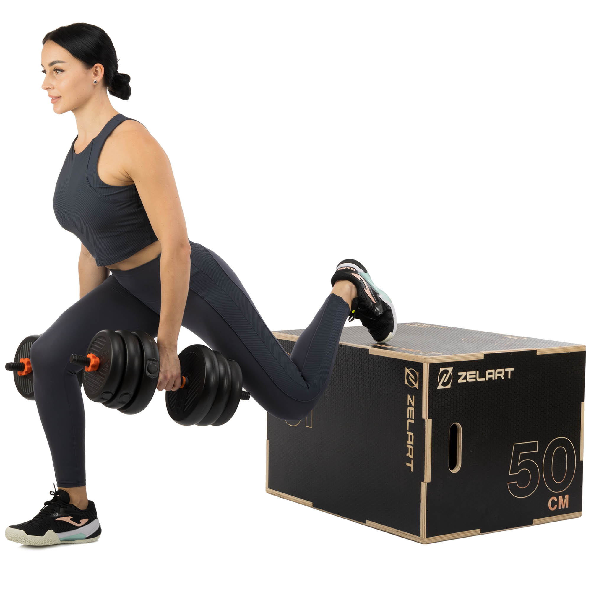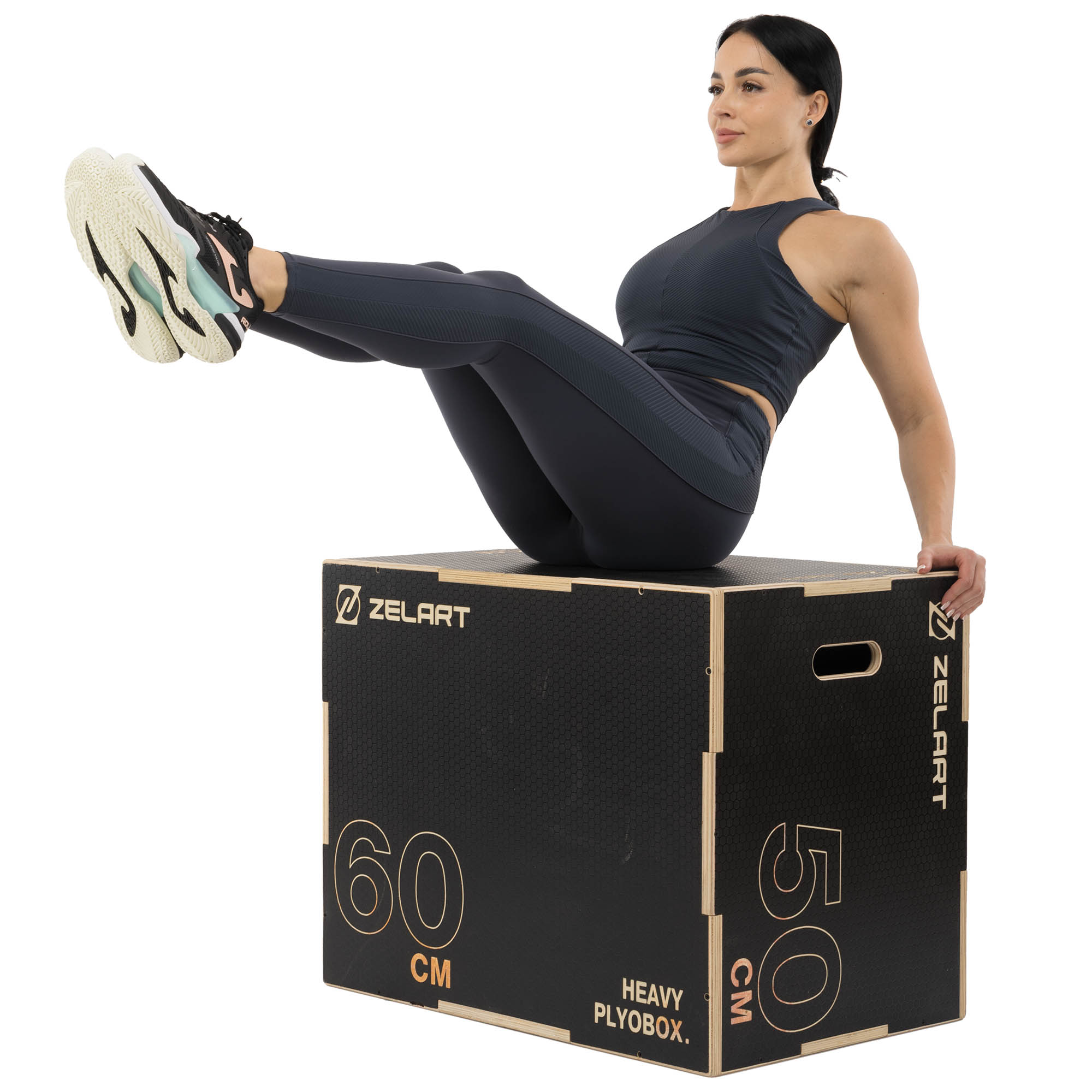Плиометрический бокс Wood Plyo Box Zelart - это деревянная конструкция, предназначенная для выполнения взрывных прыжковых упражнений. Визуально инвентарь напоминает деревянный ящик, который имеет 3 варианта высоты. Ящик можно устанавливать различными способами, тем самым меняя высоту платформы для выполнения прыжков. В конструкции имеются прорези-рукоятки, которые позволяют удобно переносить её. Для изготовления плиометрического бокса используются сосна и тополь. Конструкция получается прочной и может выдерживать большие нагрузки. Бокс покрыт краской чёрного цвета.