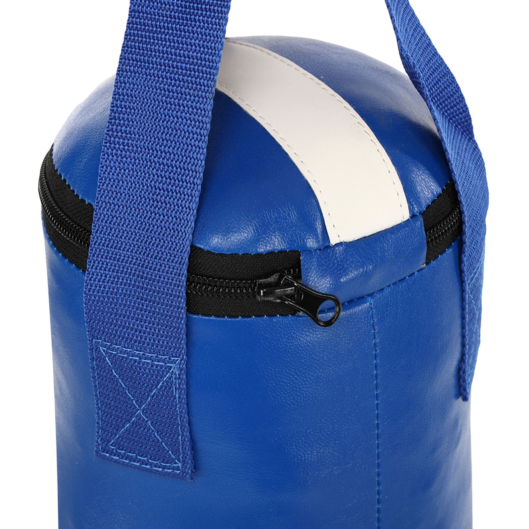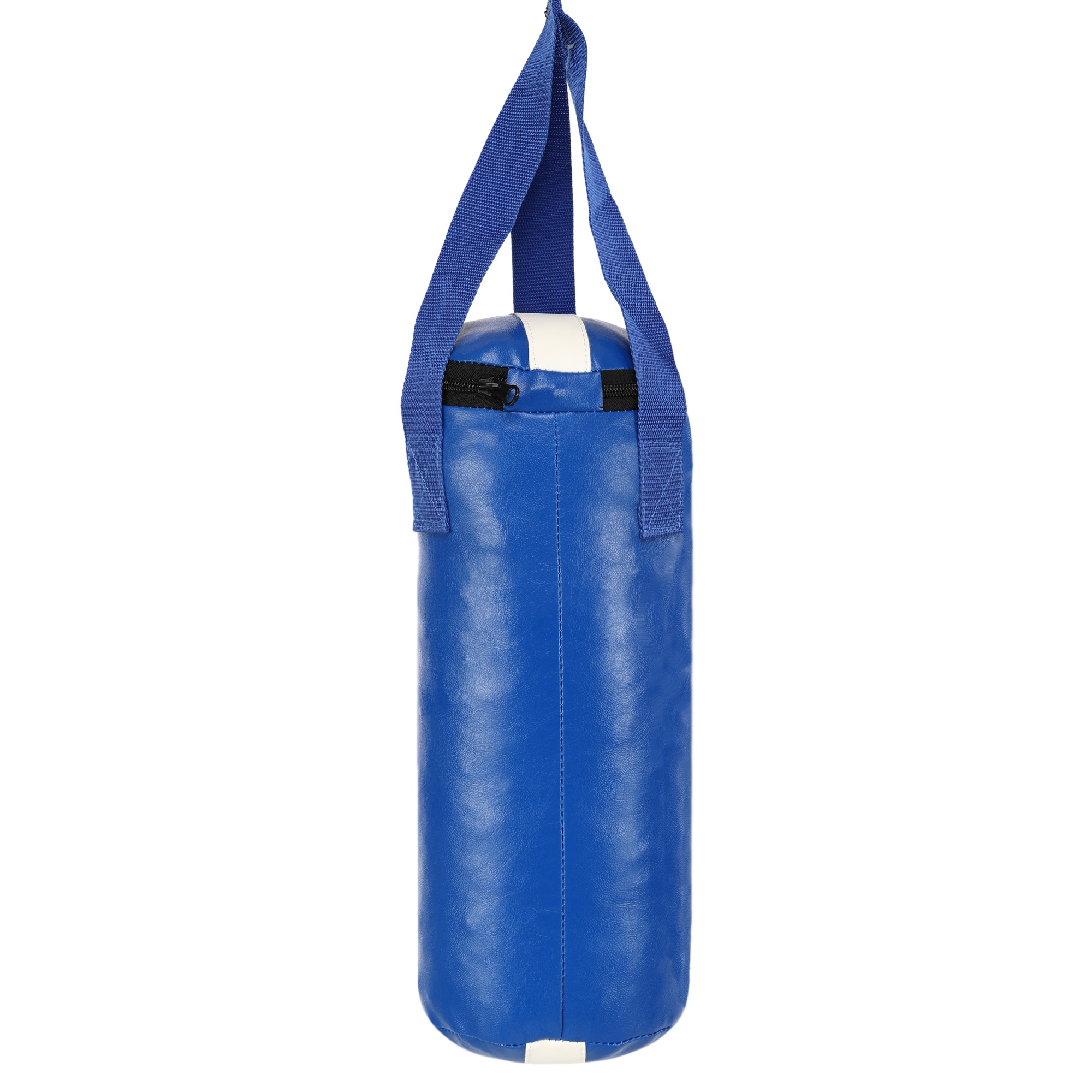Верх мешка и перчаток сделан из прочного поливинилхлорида. Он выдерживает большие ударные нагрузки – вам не придется покупать новое изделие, пока ребенок не повзрослеет. Чтобы не травмировать нежную кожу и костяшки рук малыша, в перчатки набит мягкий наполнитель, на это же работает и наполнитель в груше. Он пружинит под ударами, но быстро принимает исходную форму. Для того чтобы перчатки не слетали, на манжетах есть широкие липучки. Застегивайте их так, чтобы они не пережимали кровоток на кисти. Размер груши будет идеален для ребенка от 4 лет.