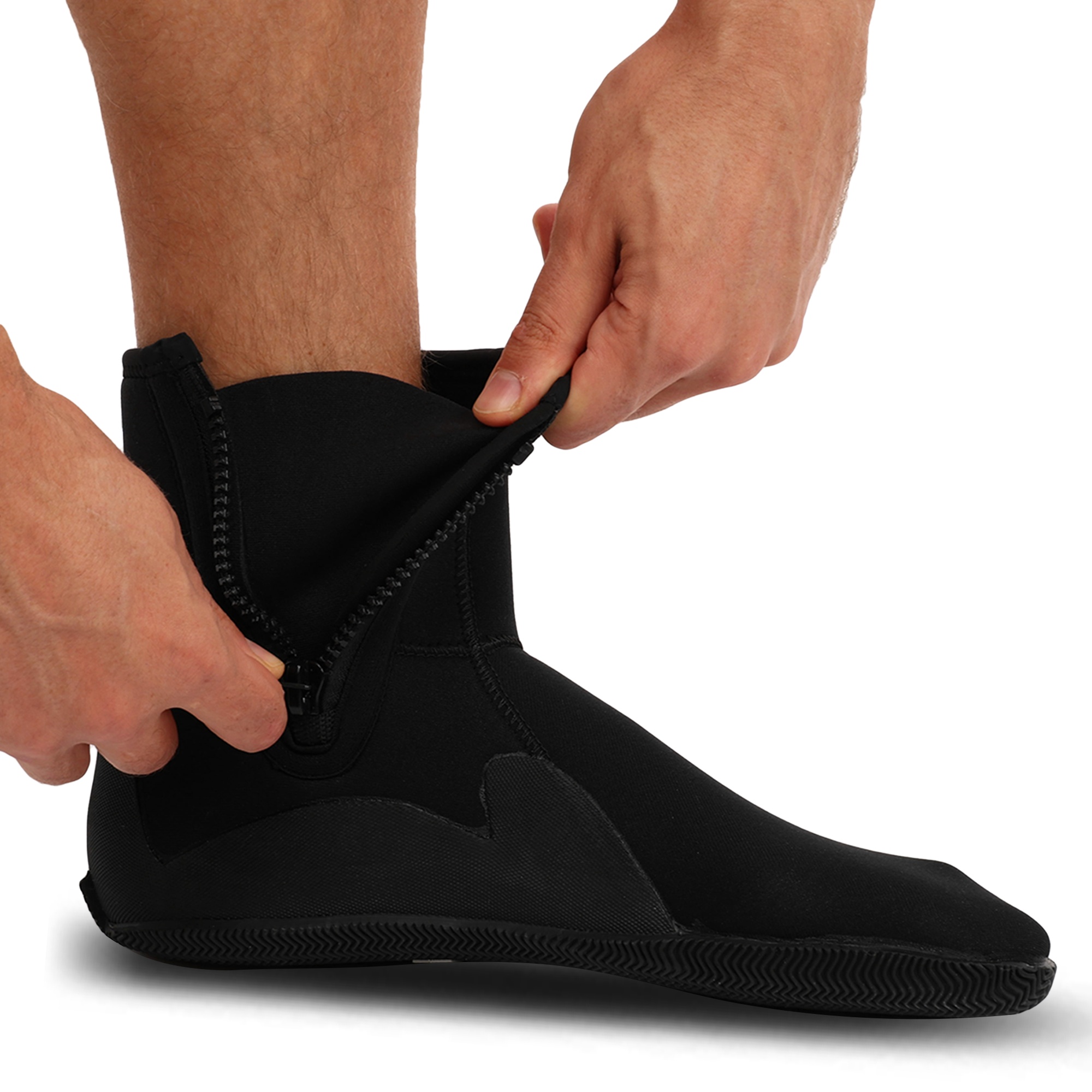 - Эластичная структура неопрена обеспечивает отличную посадку по ноге и свободу движений, не создавая дискомфорта.