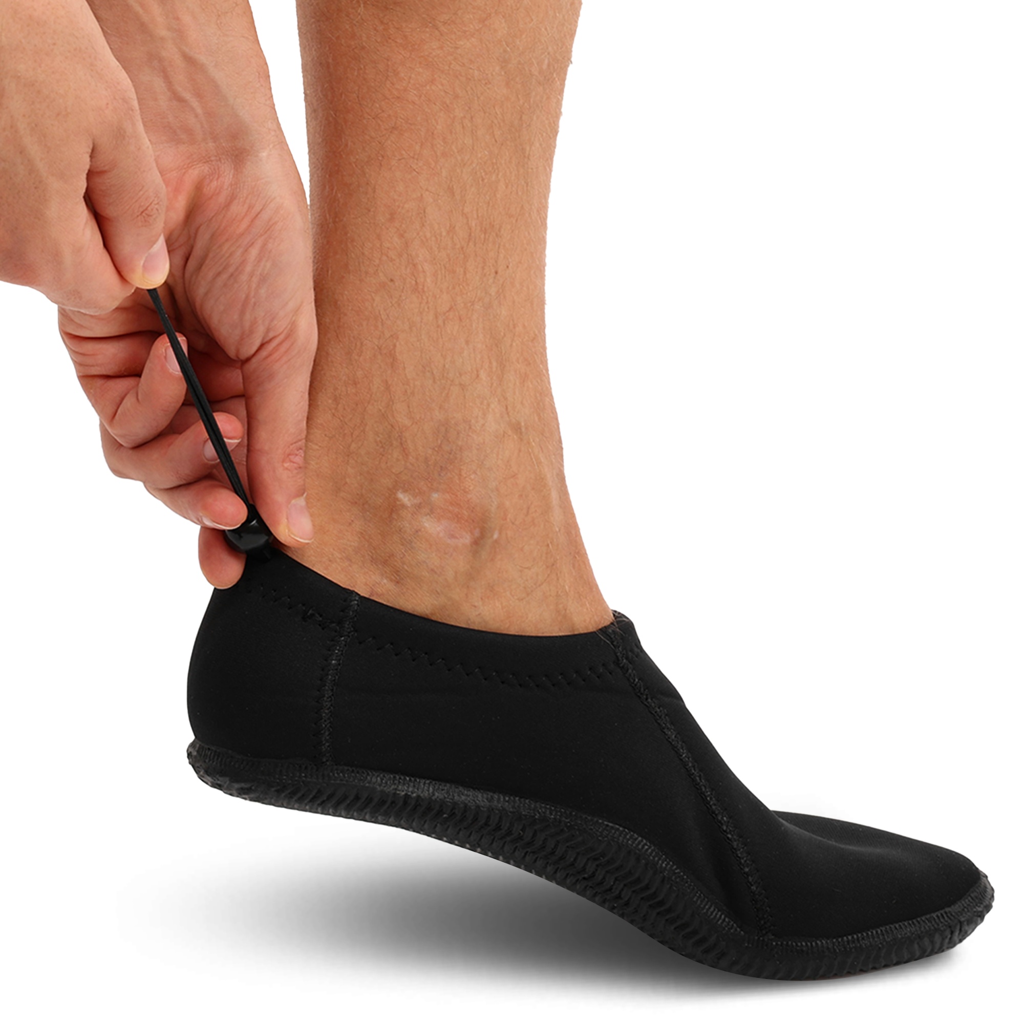 Боты созданы для того, чтобы ваши водные путешествия были максимально комфортными и безопасными. Благодаря толщине неопрена в 5 мм, боты надежно защищают от переохлаждения в воде с температурой от +8 до +23°C, а также препятствуют контакту кожи с медузами, кораллами или другими морскими организмами.Эластичные и прочные, они отлично облегают стопу, не сковывая движений, и легко надеваются даже на влажную ногу. Специальная затяжка на щиколотке позволяет надежно зафиксировать обувь, исключая её сползание при плавании или ходьбе. Продуманный выступ на пятке помогает удобнее и крепче зафиксировать пяточный ремень ласт, что особенно важно при использовании модели с открытой пяткой.