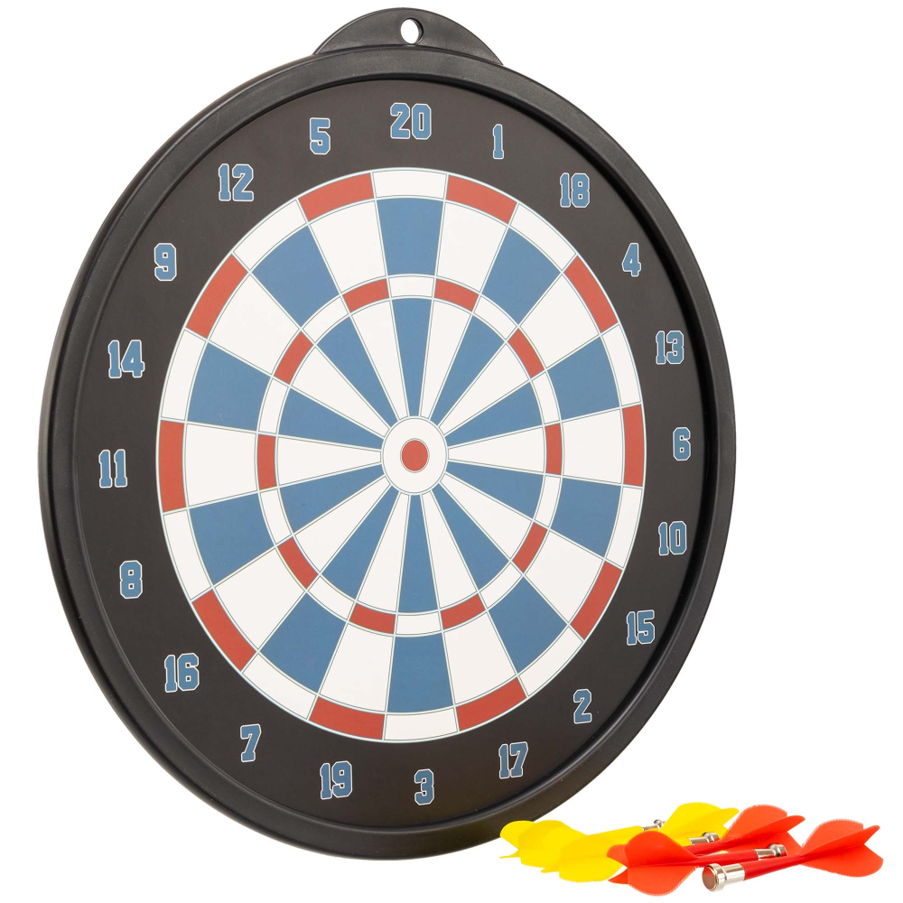 Игра в дартс стимулирует развитие точности и координации движений, позволяет весело провести время как в одиночку, так и в компании друзей. Baili BL-27115 - это безопасный дартс, который могут использовать даже дети. Особенностью данного набора является то, что на поверхности пластиковой доски размещается специальная магнитная накладка, а на дротиках вместо острых наконечников располагаются магниты. Дротики фиксируют попадание в определенный сектор мишени исключительно за счет силы действия магнита. Использовать такой дартс можно в любой комнате: он не только безопасен для детей, он безопасен также для мебели и ремонта, ведь дротик не повреждает стены в случае неудачного броска. Комплект поставки, помимо самой мишени, включает 6 дротиков. Набор упакован в цветную картонную коробку.