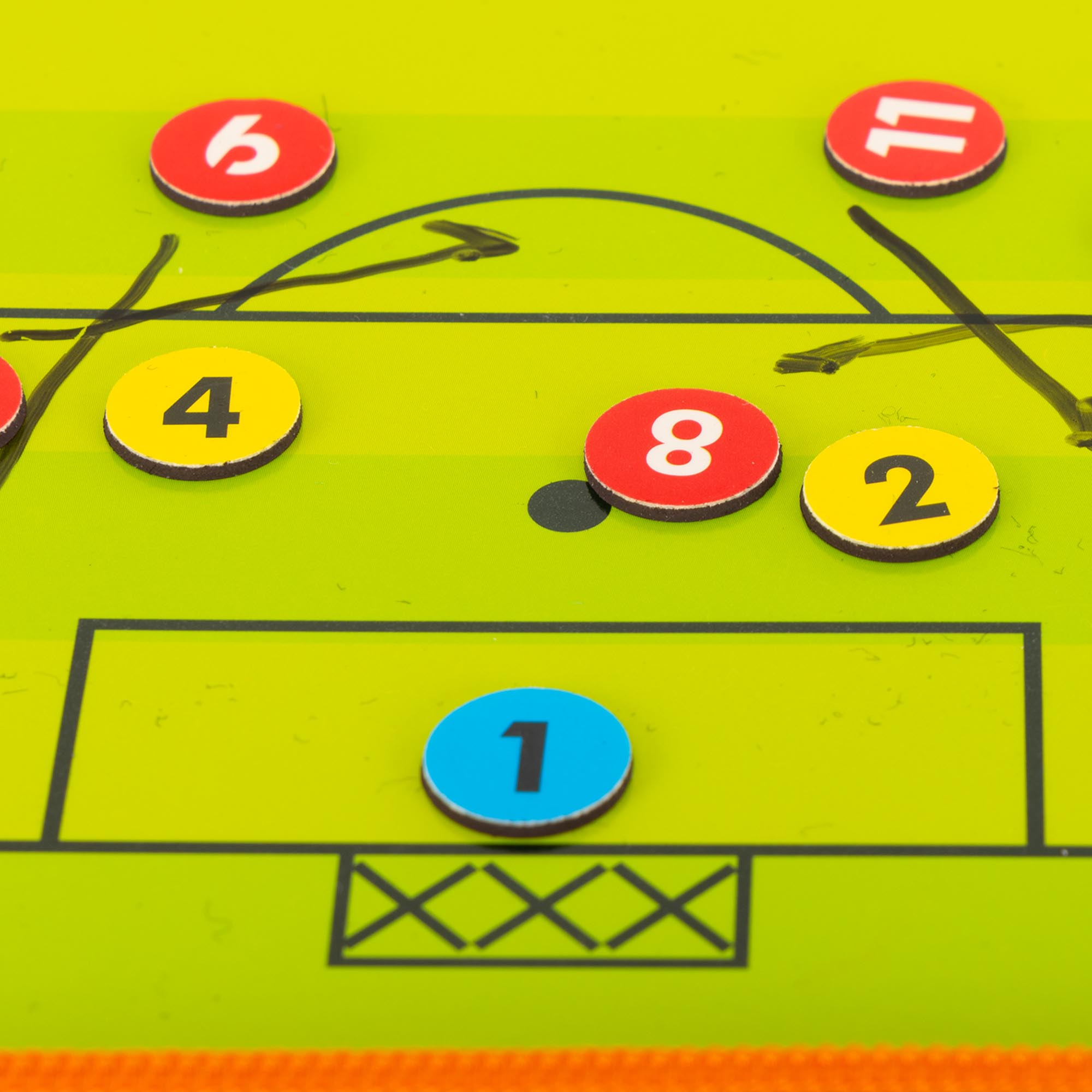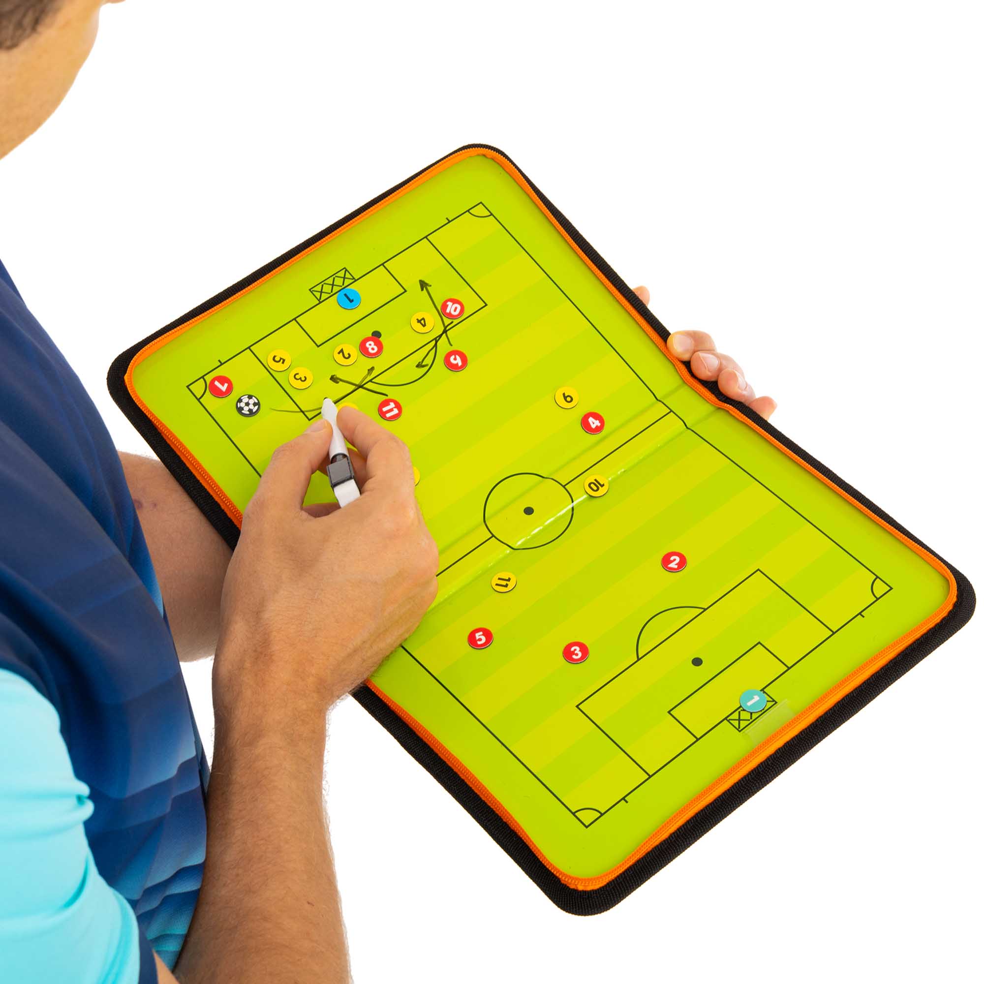 Тактическая доска необходима для планирования игровой стратегии и постановки тактических задач. Изделие предназначено для тренеров, работающих с футбольными командами любого уровня. Наглядные объяснения позволяют быстрее донести информацию до игроков и сократить время на разъяснения. Аксессуар особенно эффективен во время матчей, когда тренеру необходимо оперативно изменять планы и расстановку на поле.